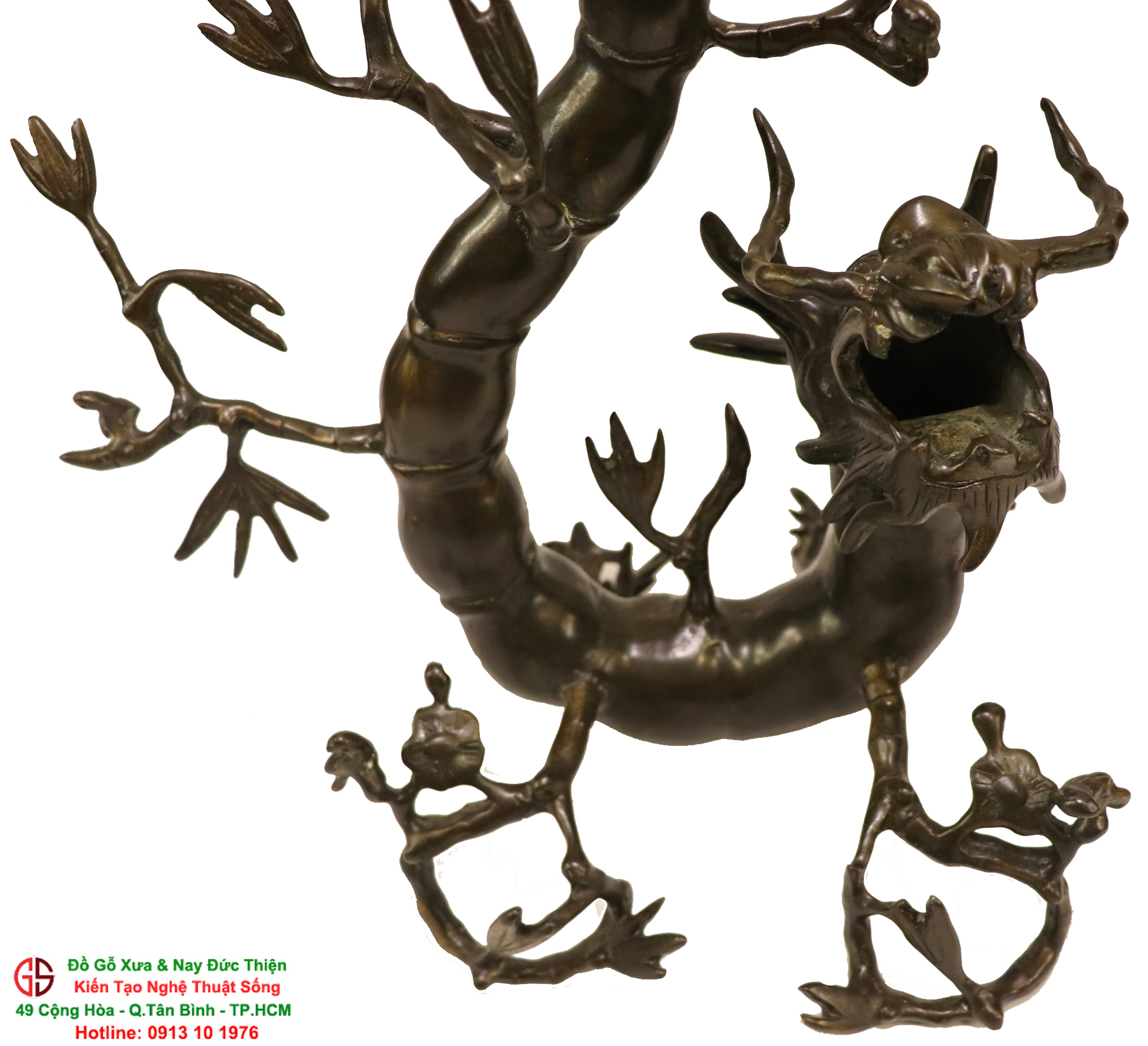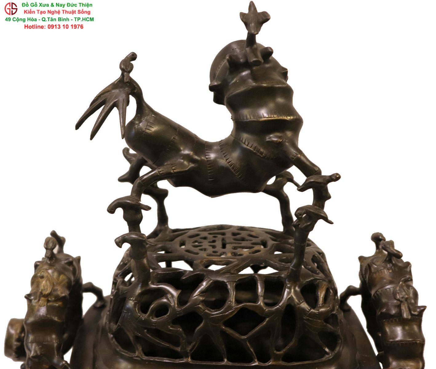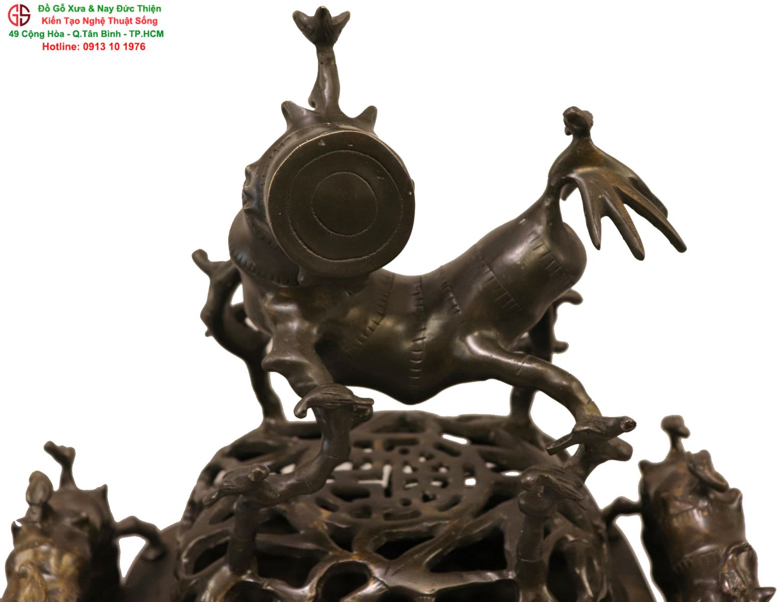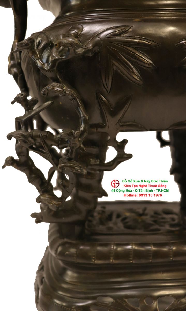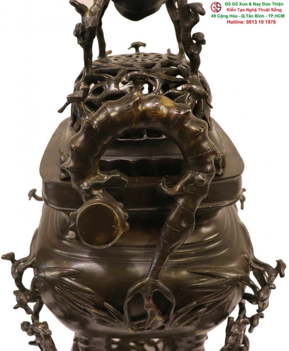 Bộ lư đồng đẹp xếp vào loại xưa nay hiếm, bộ lư đồng trúc hóa rồng ( lư trúc hóa long ) được đúc thủ công tay bởi nghệ nhân Huế theo kiểu xưa