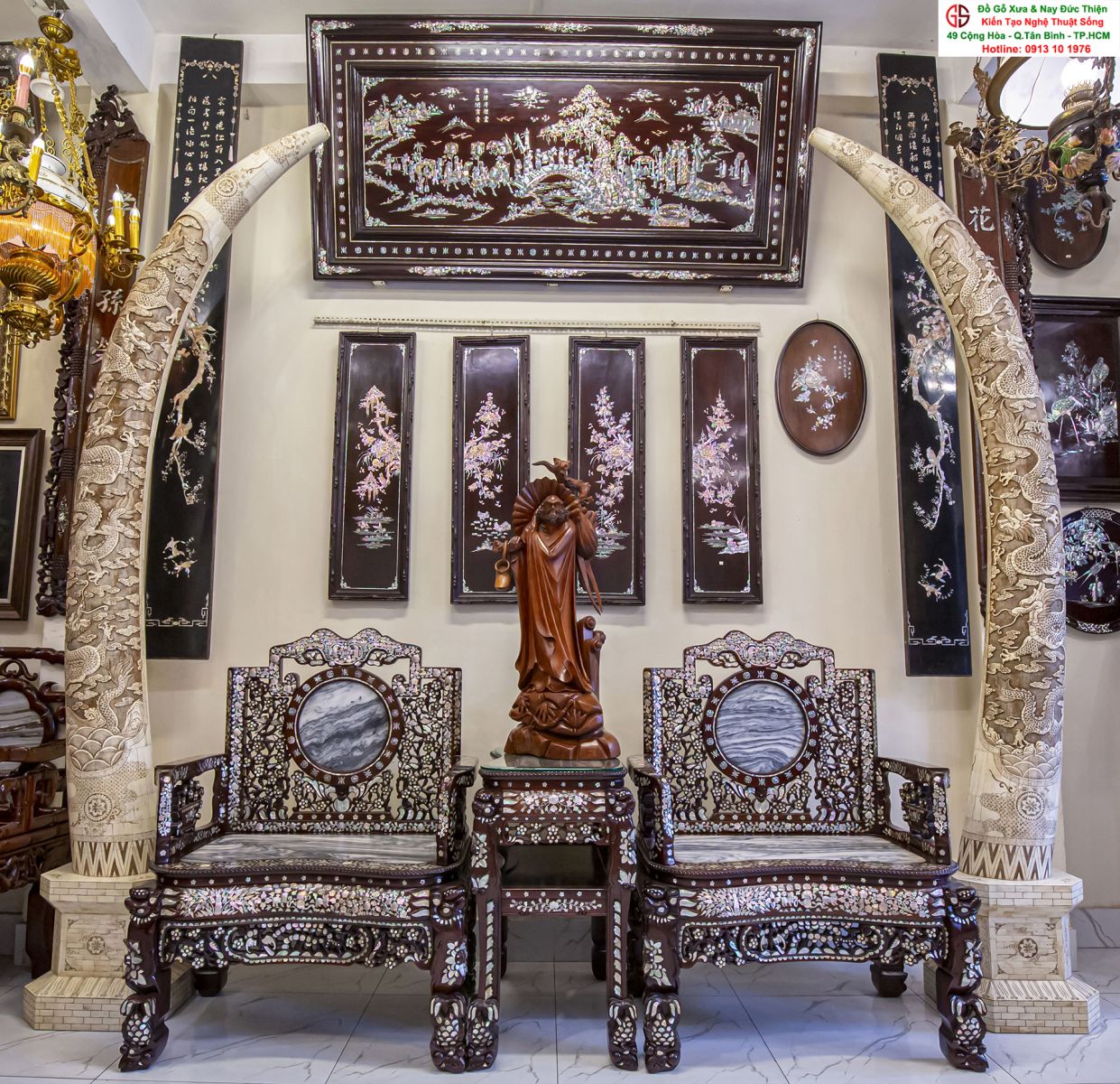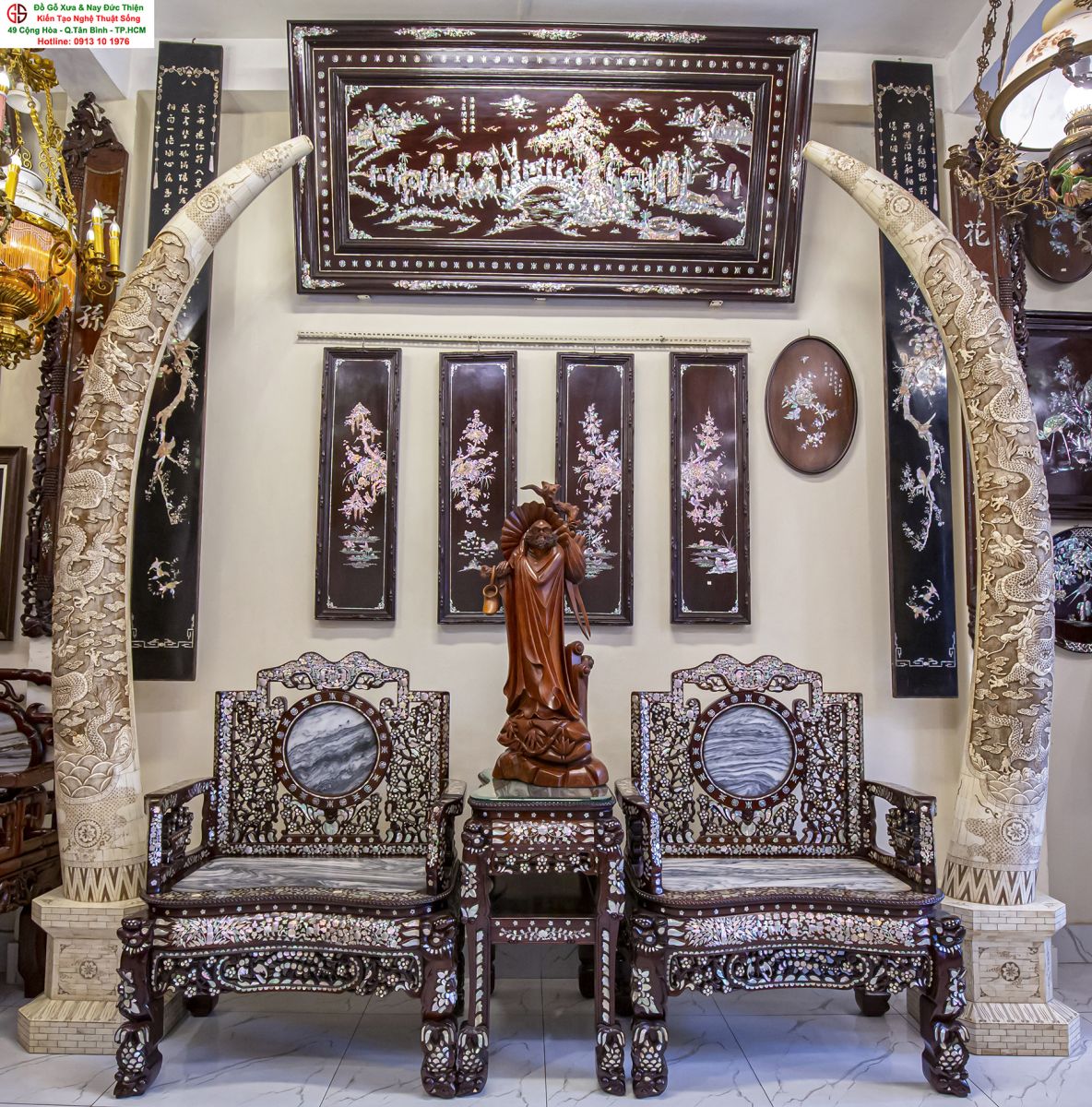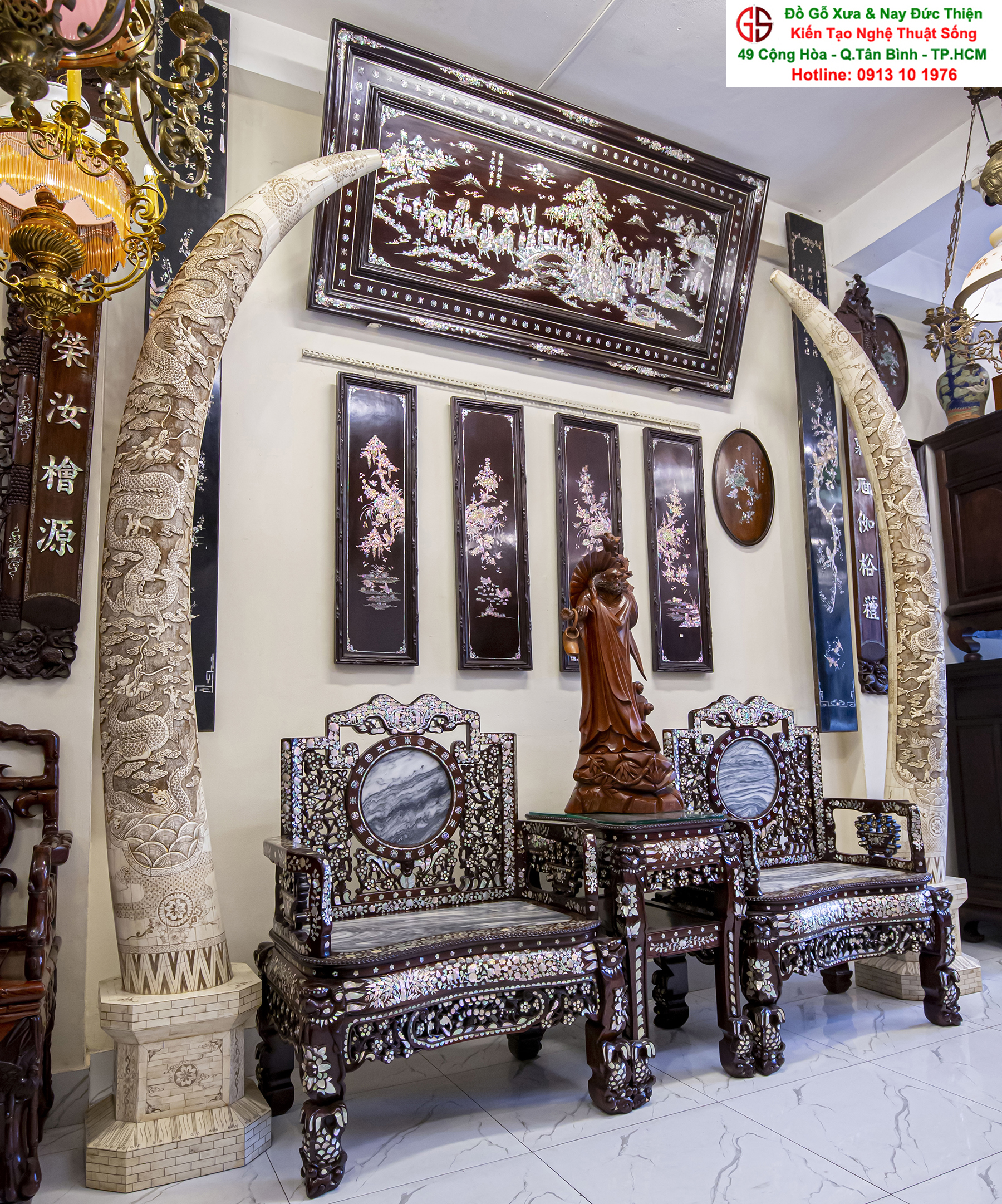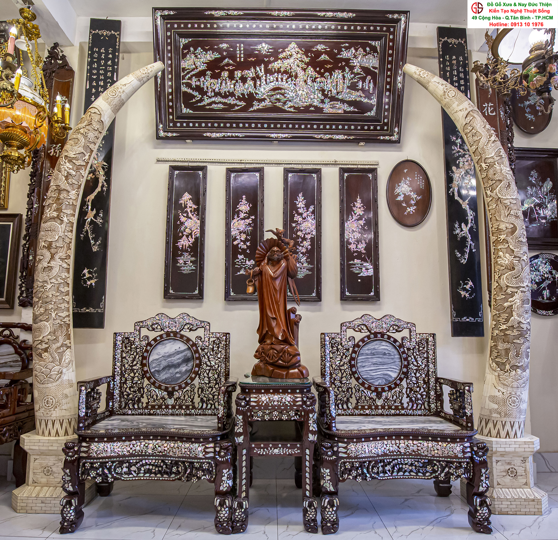 - Bàn ghế Louis, đôn trống gỗ trắc, bộ bàn ăn cẩn ốc, bàn ghế phương kỷ, bàn trung đường cẩn ốc xà cừ