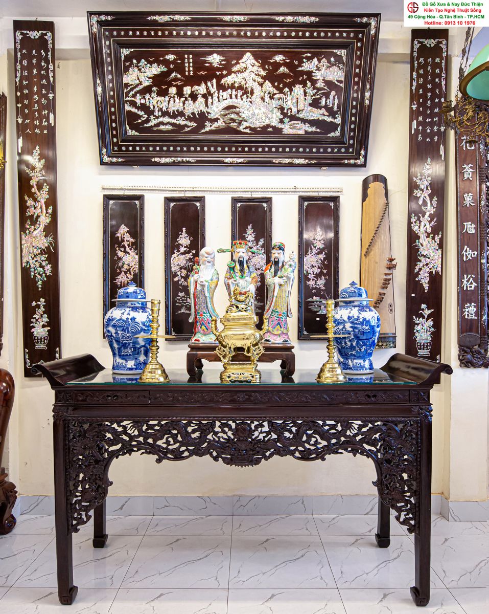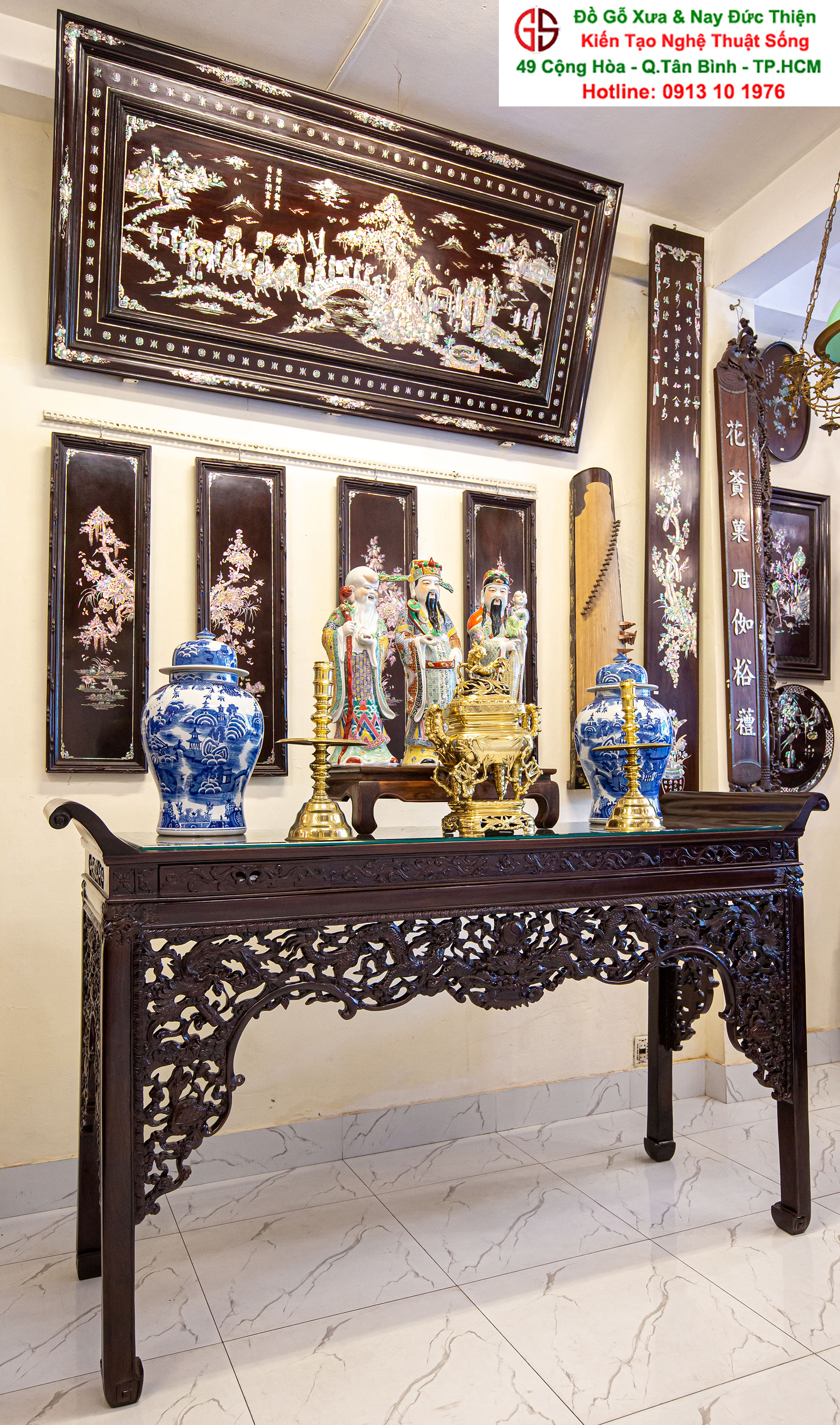 - Đồ Thờ: Bàn thờ, bàn tứ linh, nghi thờ, đại tự thờ, tủ thờ đẹp, tủ thờ cẩn xà cừ, tủ thờ cẩm lai, tủ thờ gò công, tủ thờ 13 chám, tủ thờ nhị thập tứ hiếu.