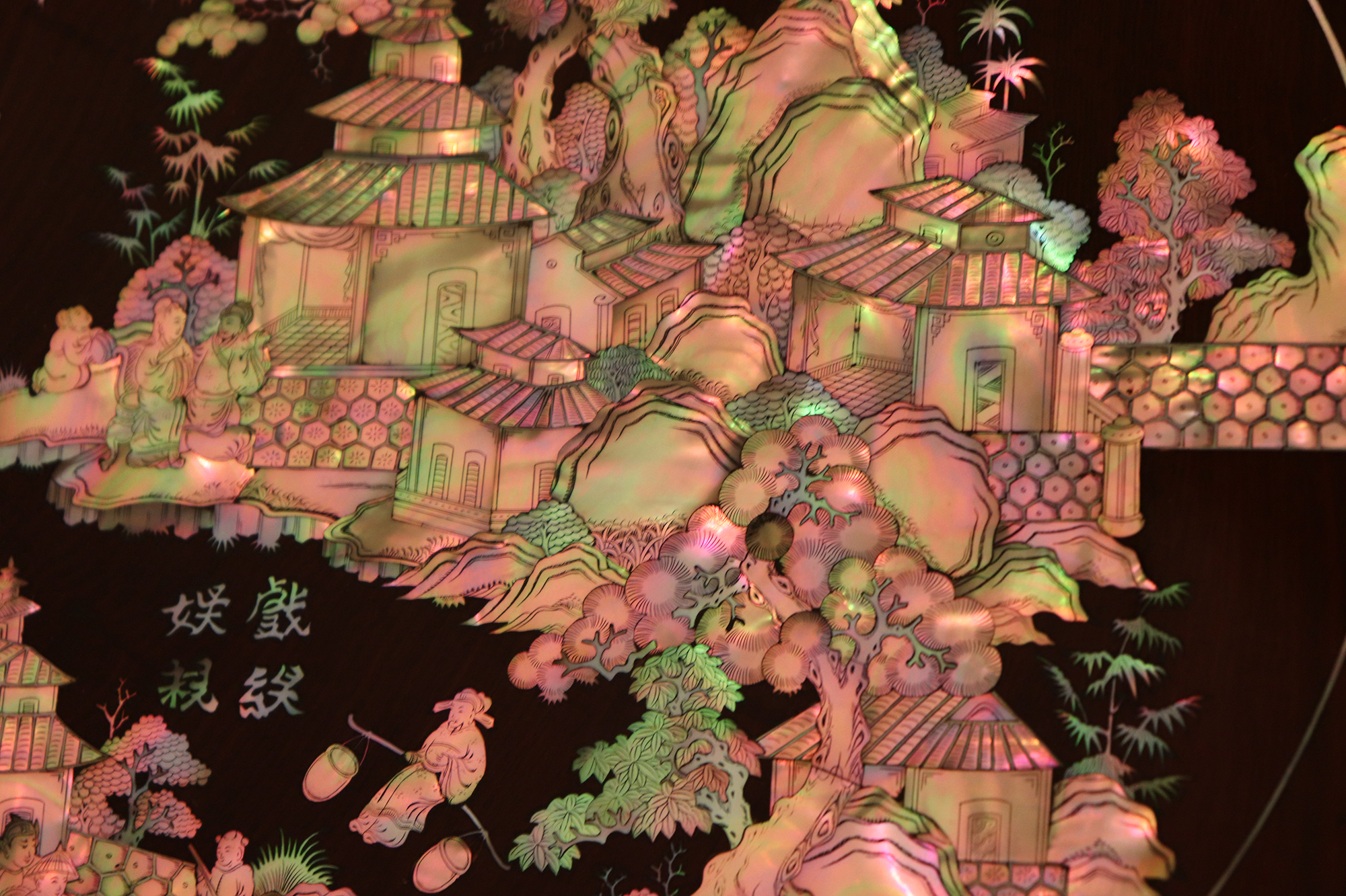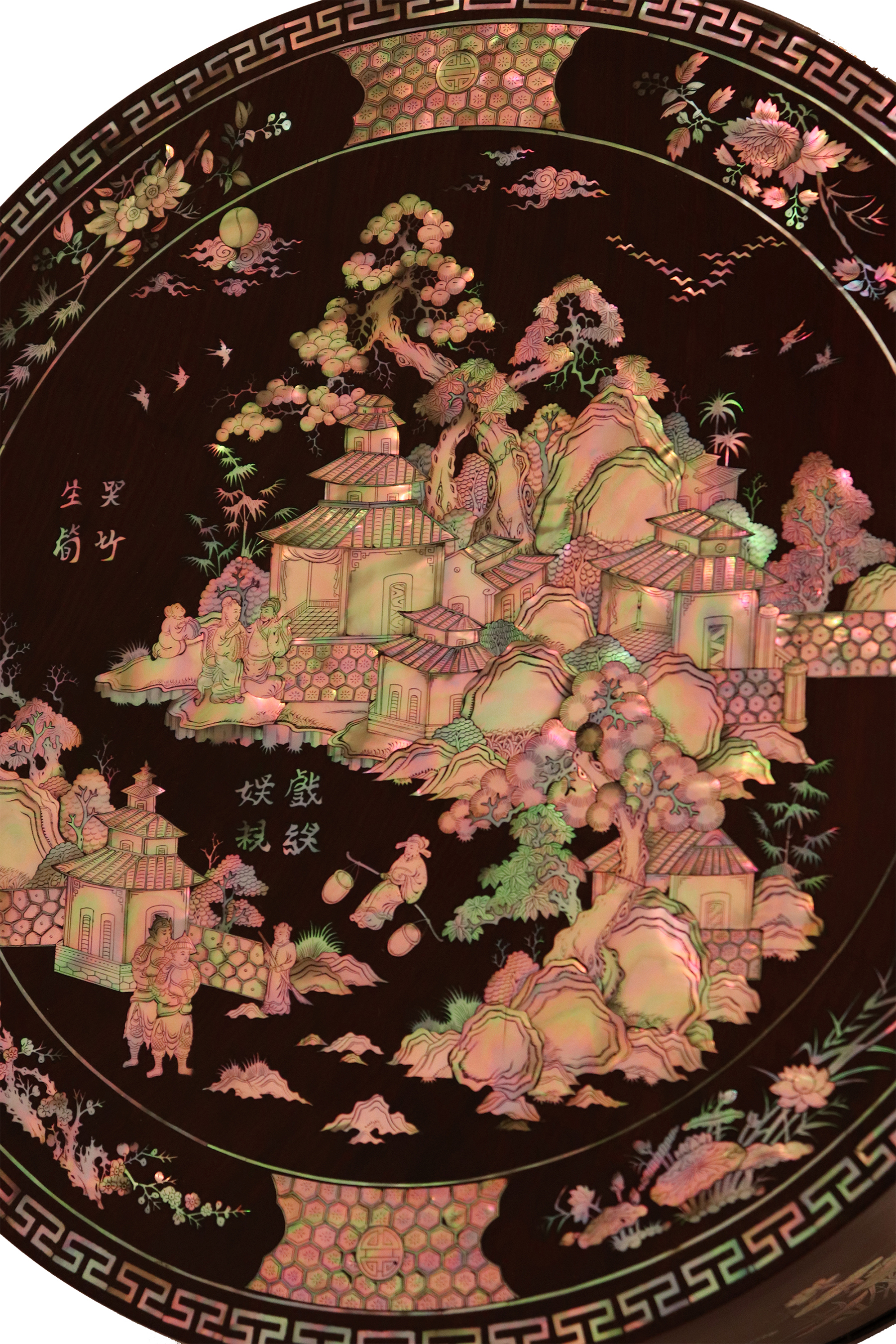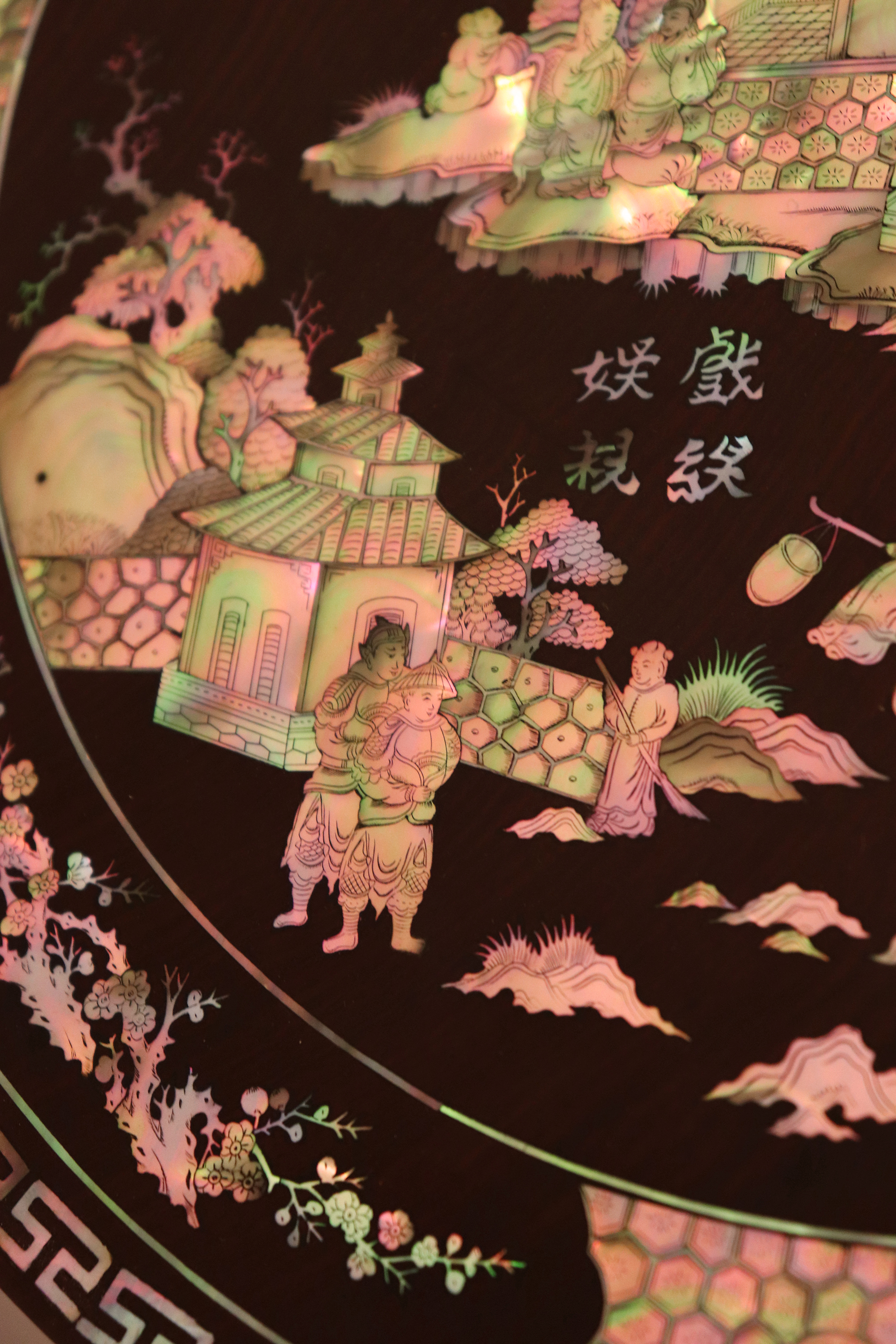 Quả trầu khảm ốc trên chất liệu gỗ trắc quý hiếm đường kính khủng ( 34 cm ) với những đường nét mang tầm nghệ nhân xứng đáng là một trân phẩm để đời.