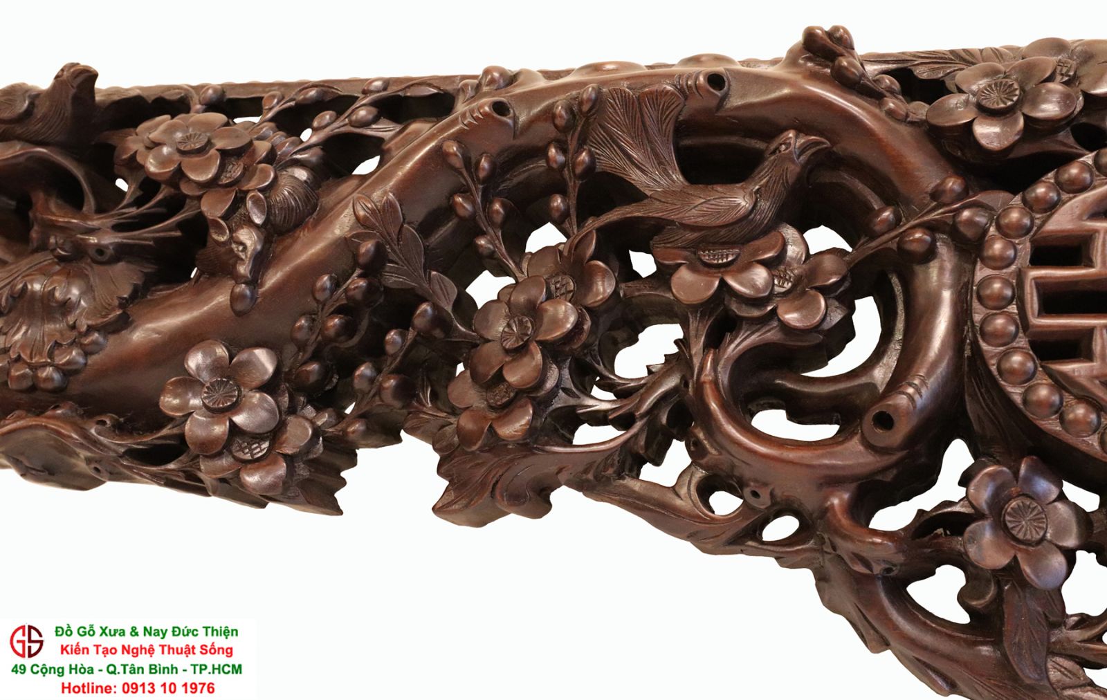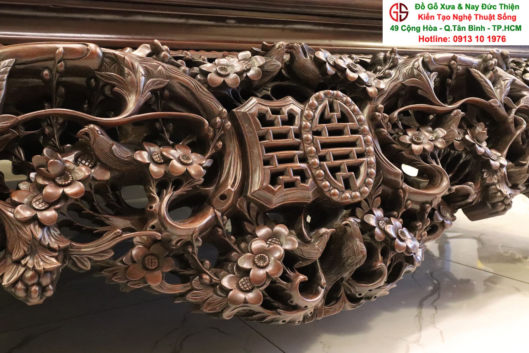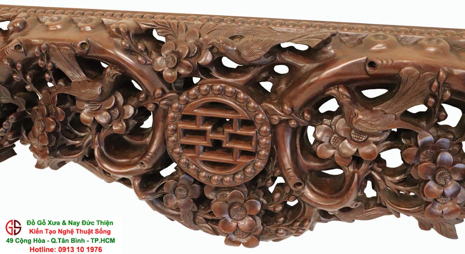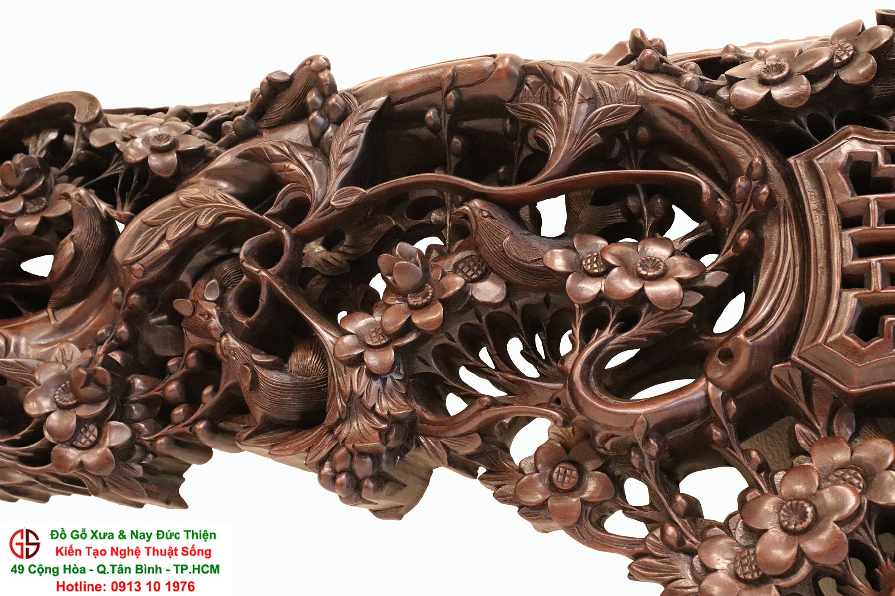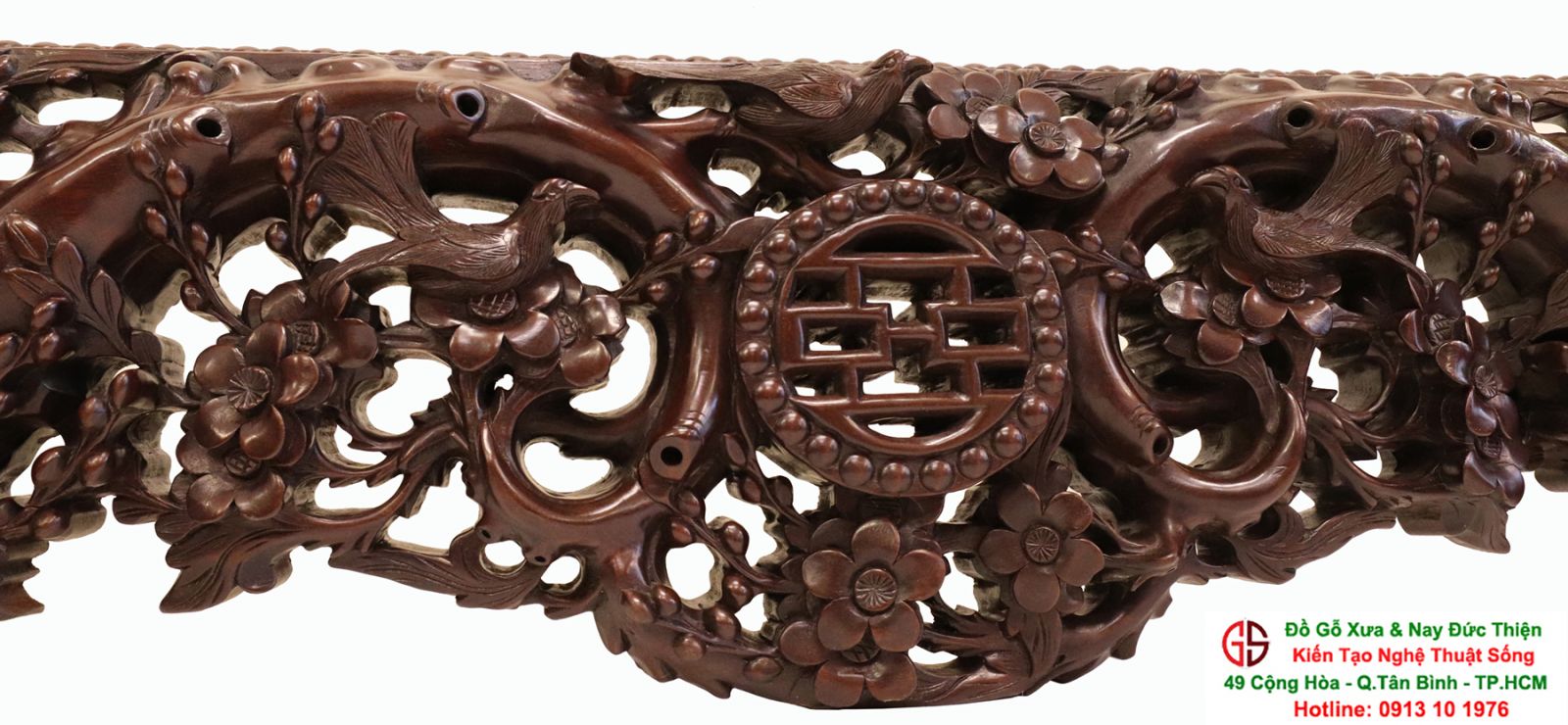 Hình ảnh chi tiết mẫu sập Mai Điểu với những hình chạm khắc tinh tế đầy tinh xảo: