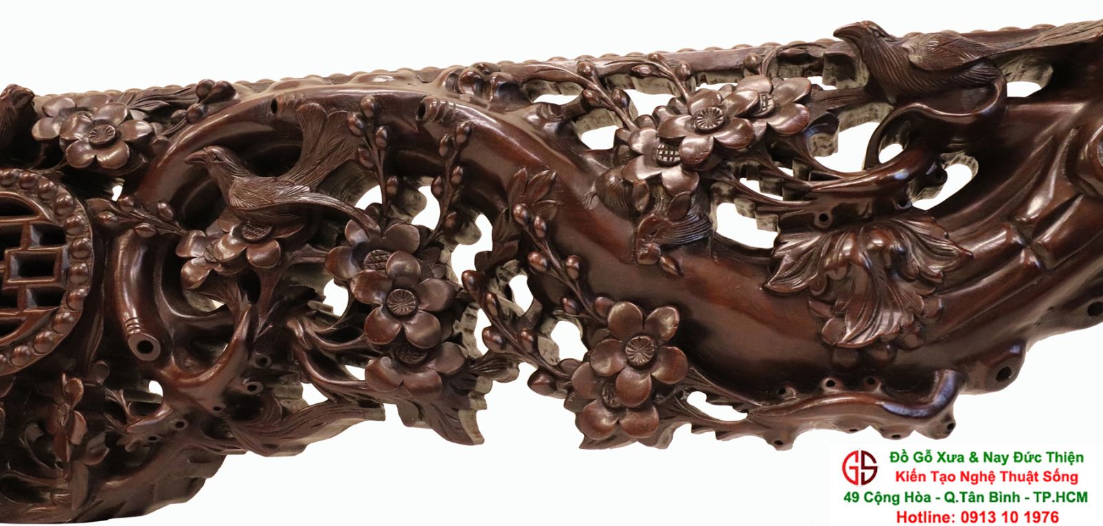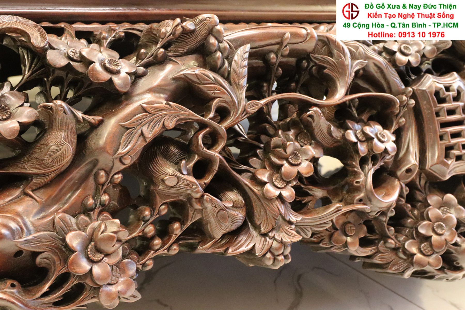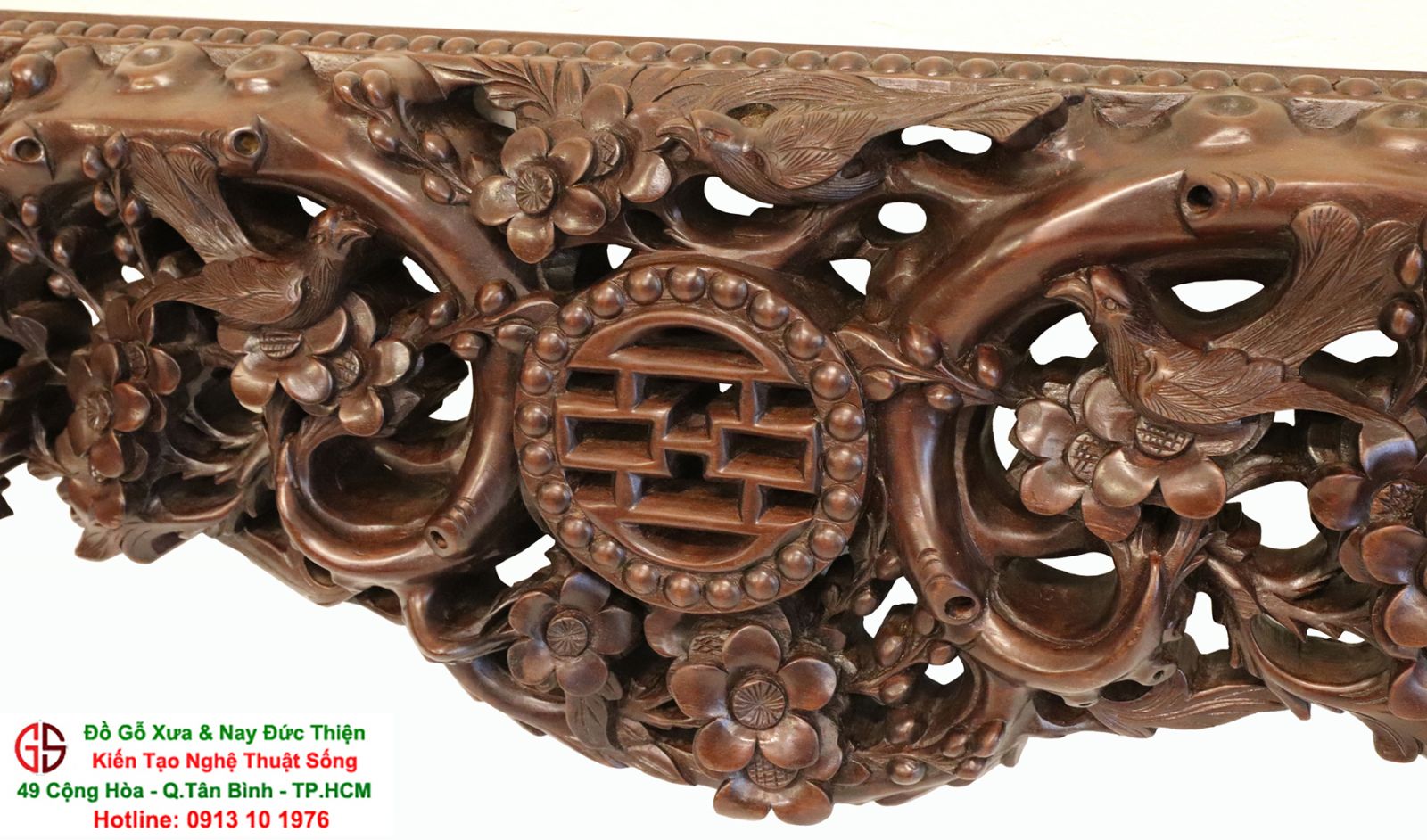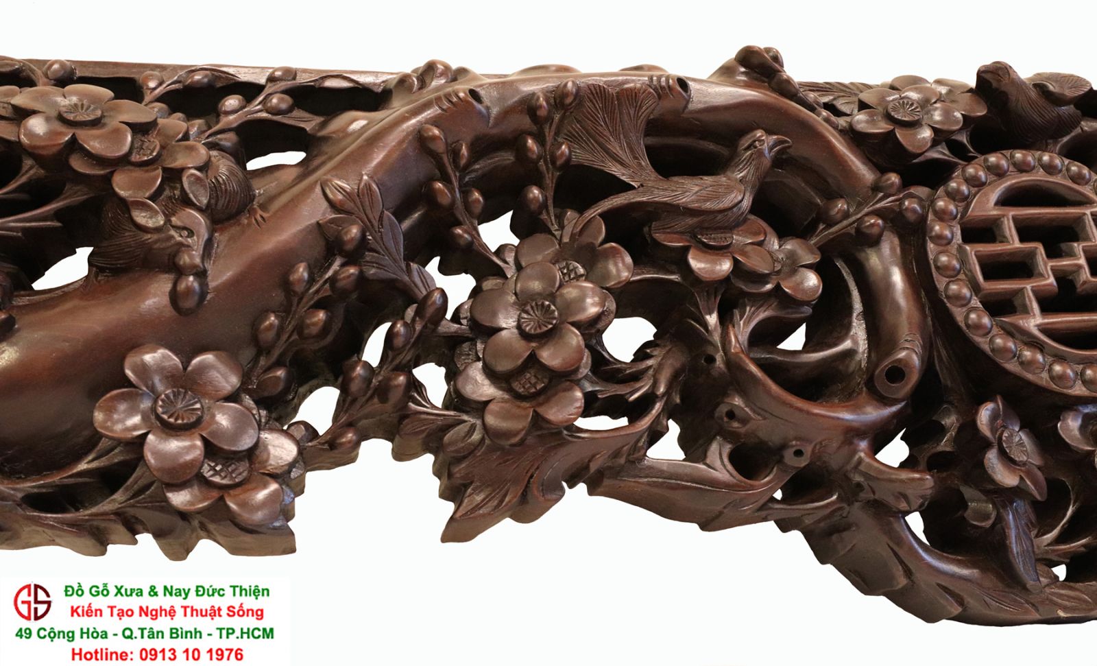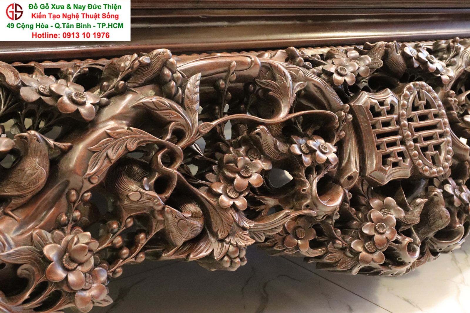 Hình ảnh chi tiết mẫu sập Mai Điểu với những hình chạm khắc tinh tế đầy tinh xảo: