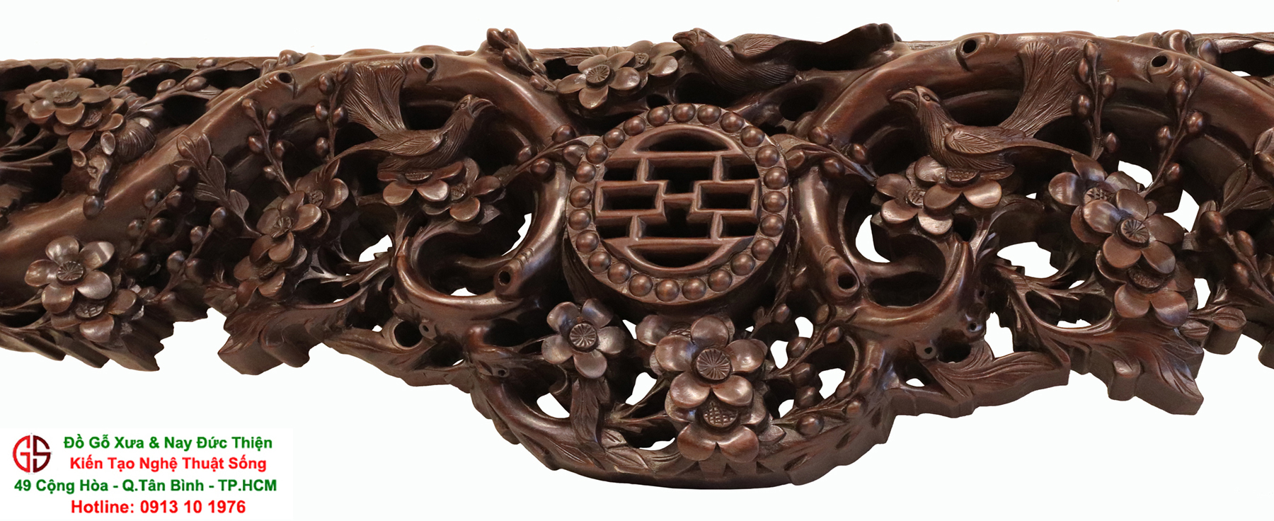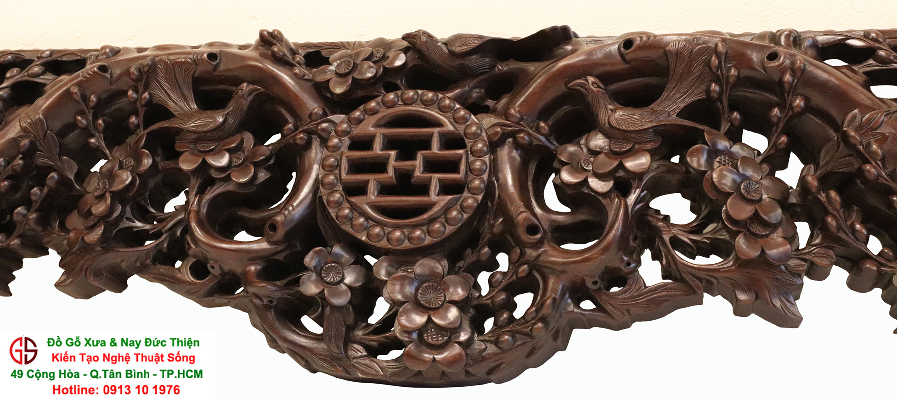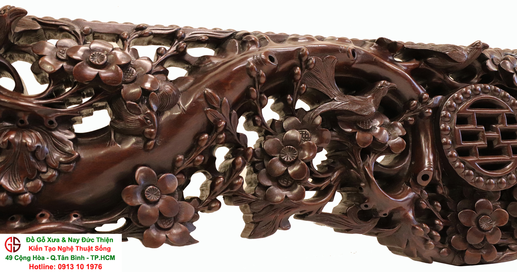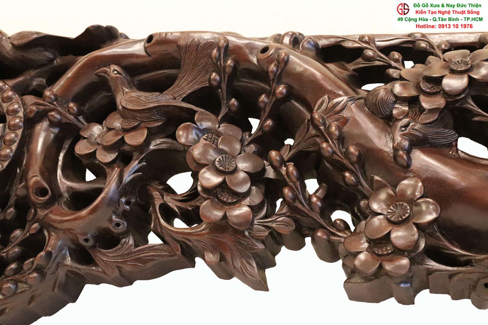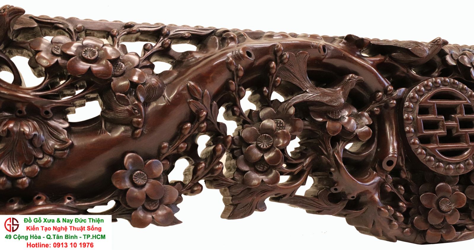 Hình ảnh chi tiết mẫu sập Mai Điểu với những hình chạm khắc tinh tế đầy tinh xảo:
