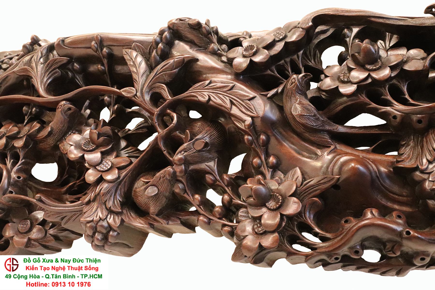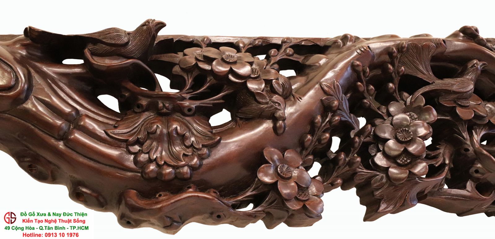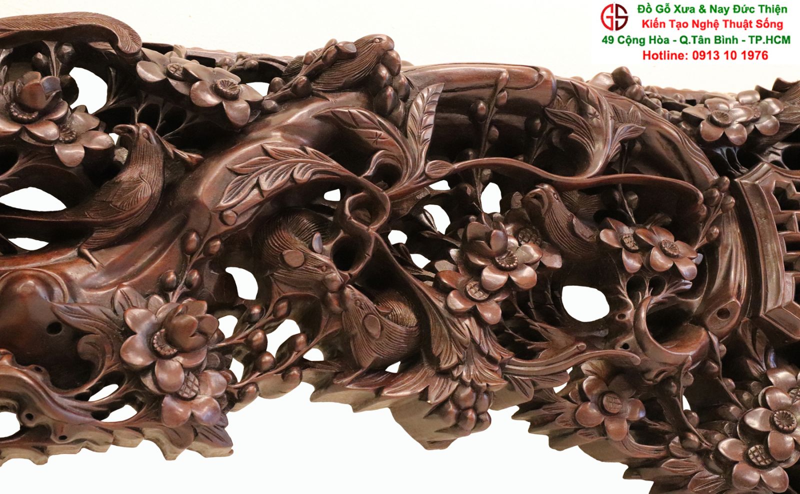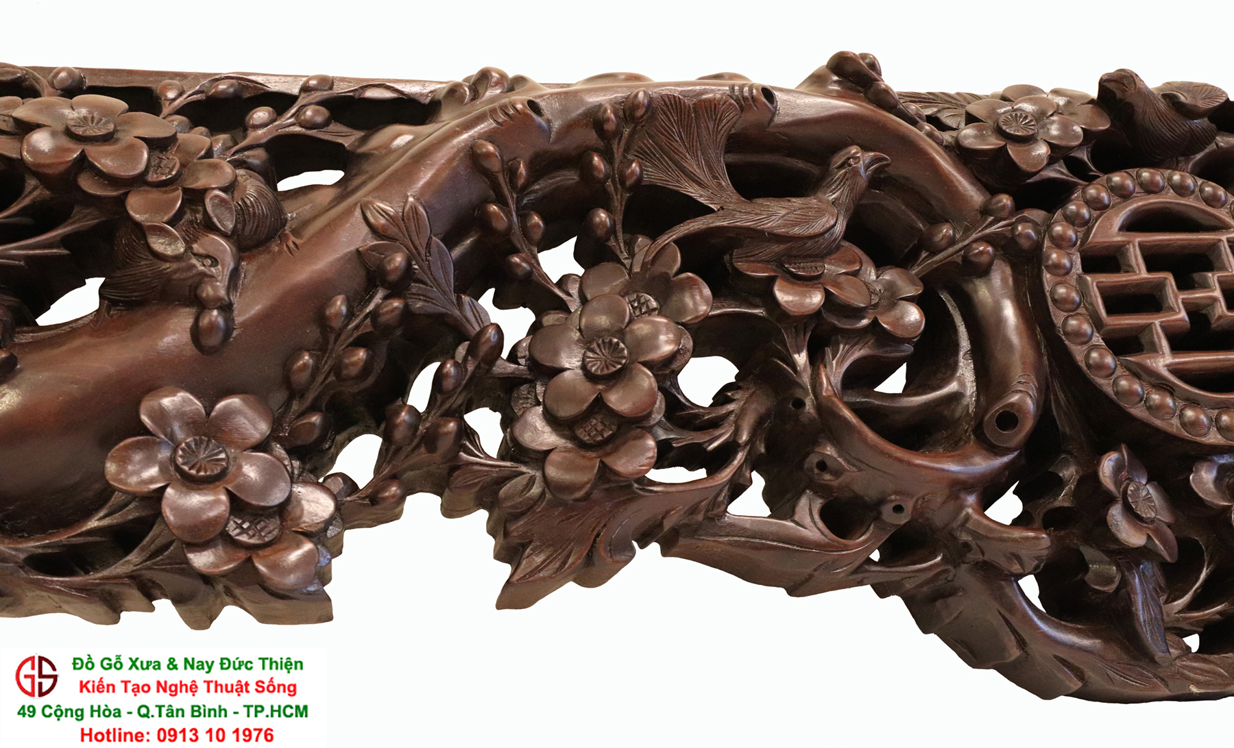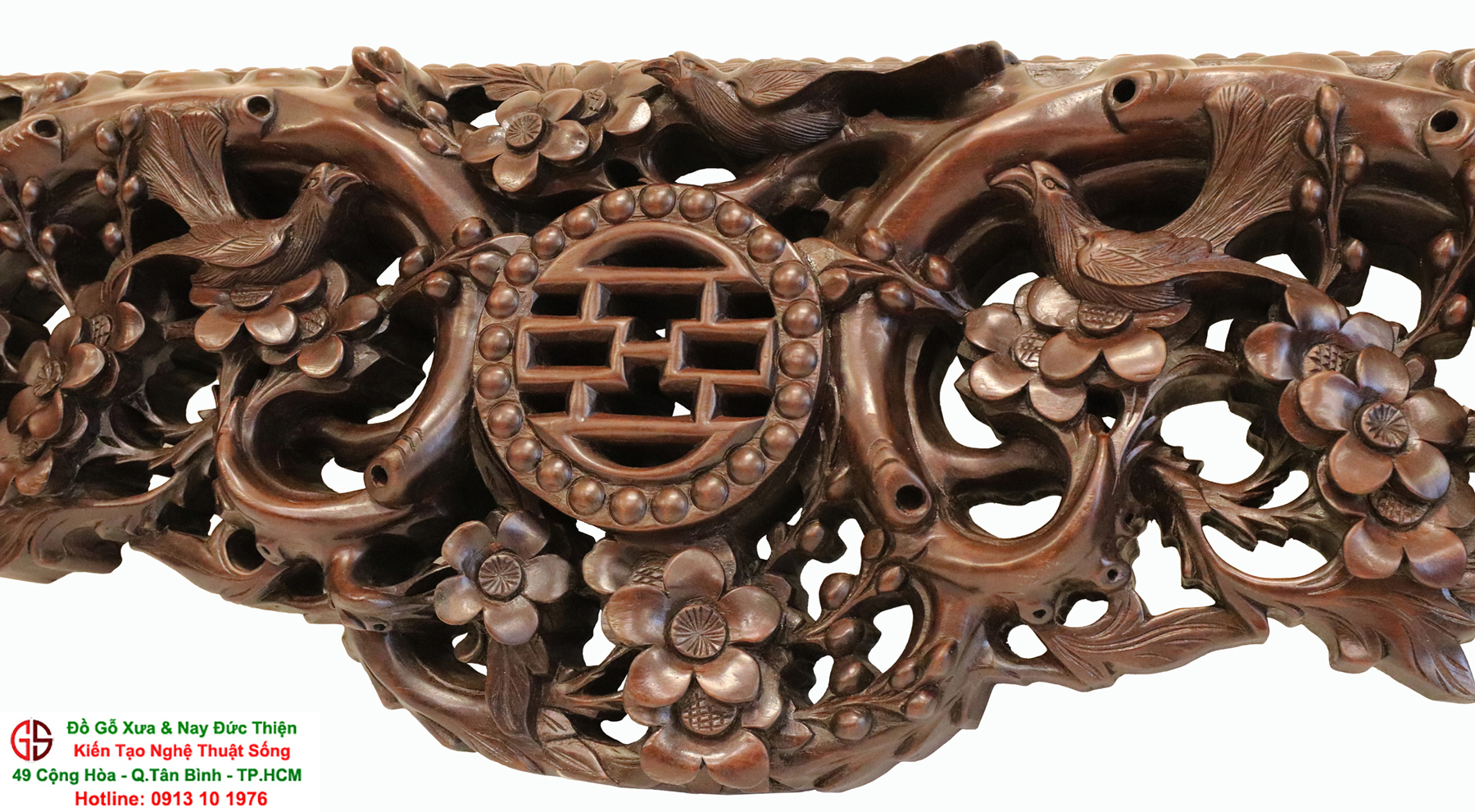 Hình ảnh chi tiết mẫu sập Mai Điểu với những hình chạm khắc tinh tế đầy tinh xảo:
