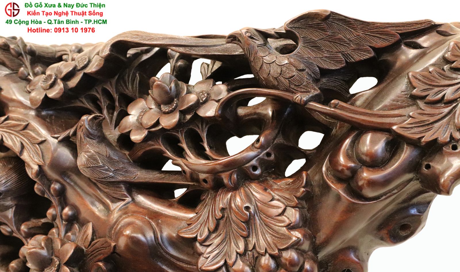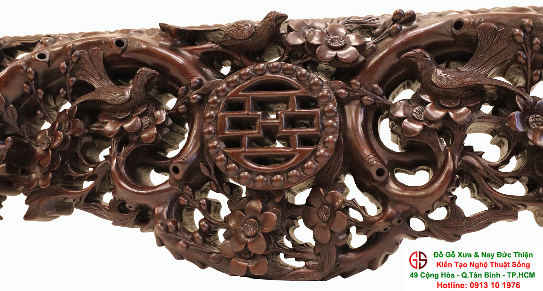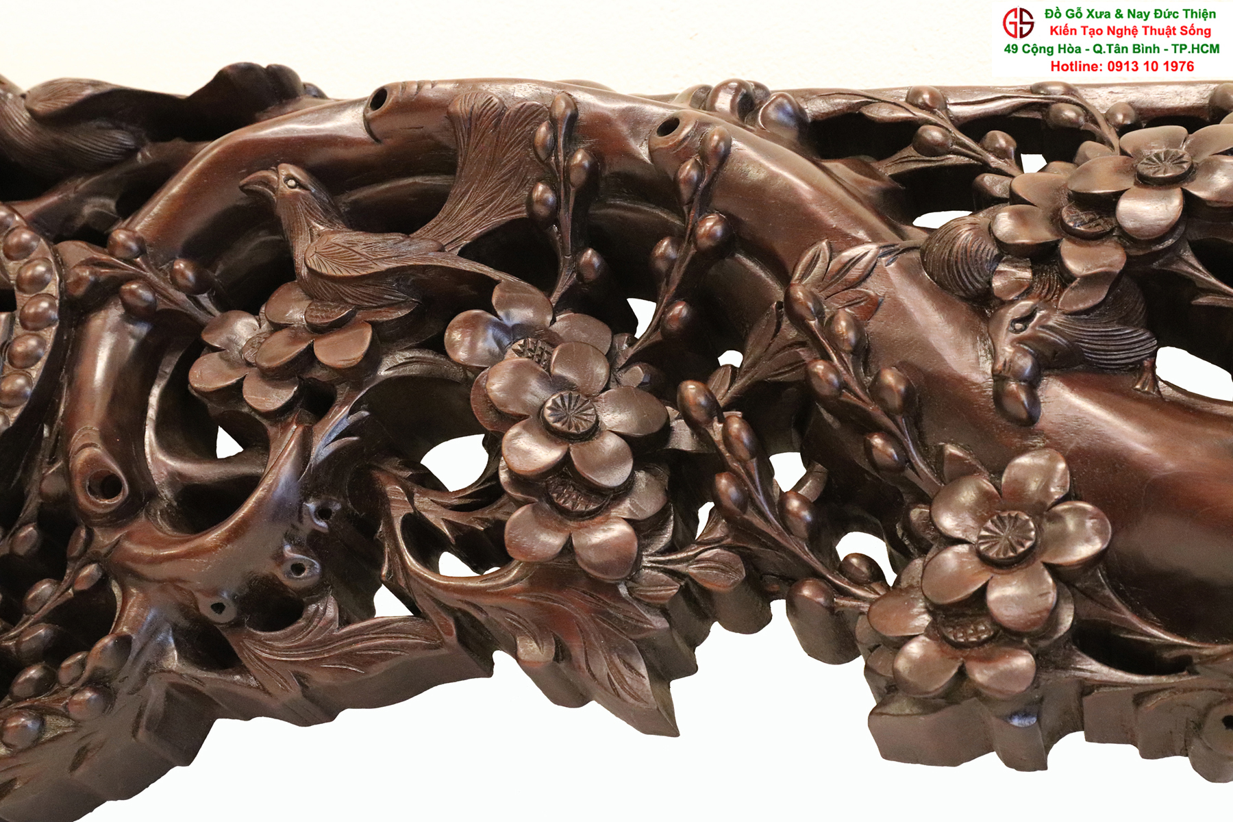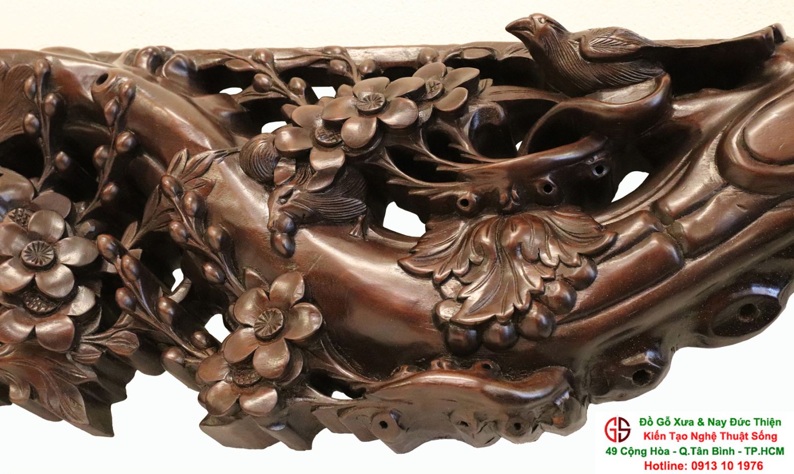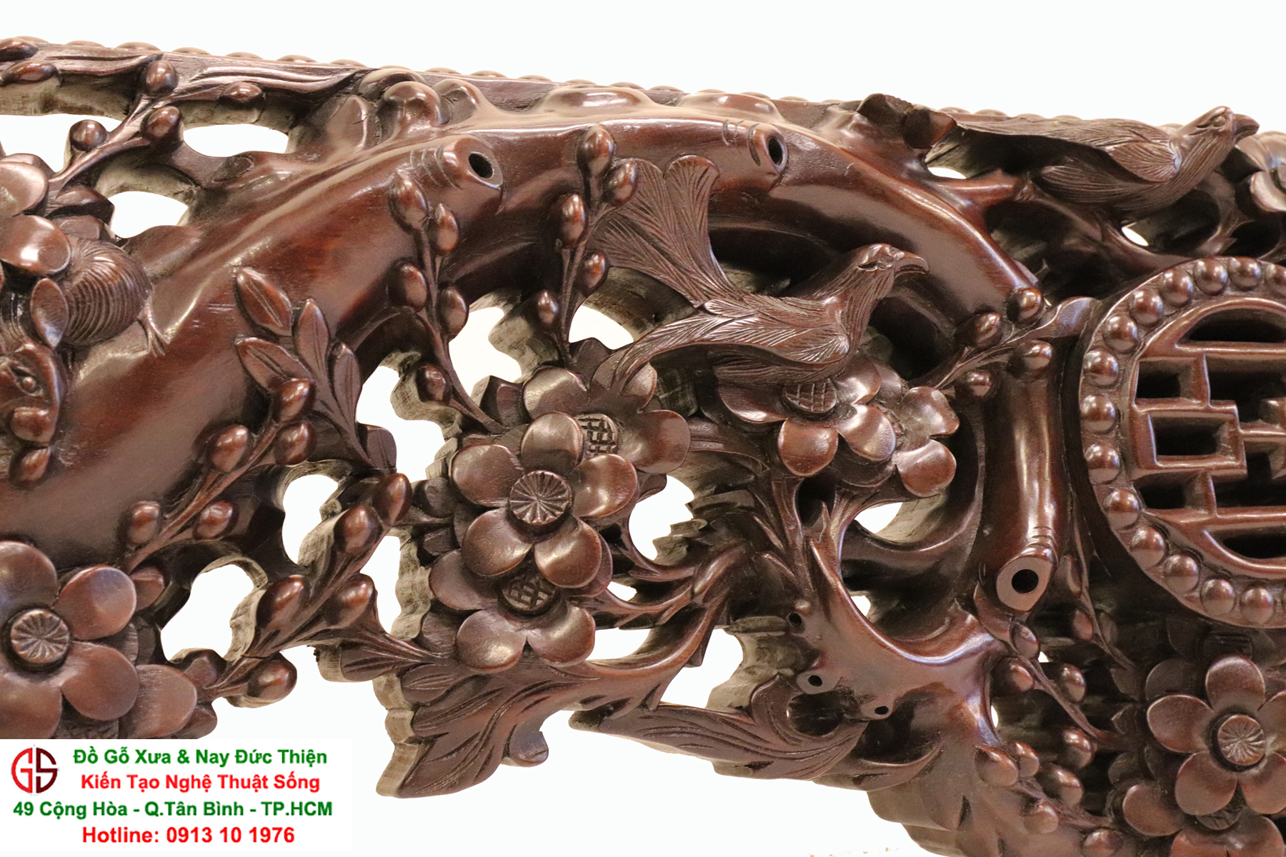 Hình ảnh chi tiết mẫu sập Mai Điểu với những hình chạm khắc tinh tế đầy tinh xảo: