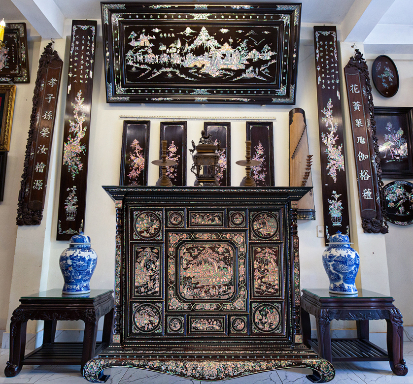 - Tranh cẩn ốc xà cừ: tranh tứ quý cẩn ốc, tranh vinh quy bái tổ, tranh phượng hồng, tranh tứ bình cẩn ốc, tranh tùng cúc trúc mai, tranh cổ đồ.