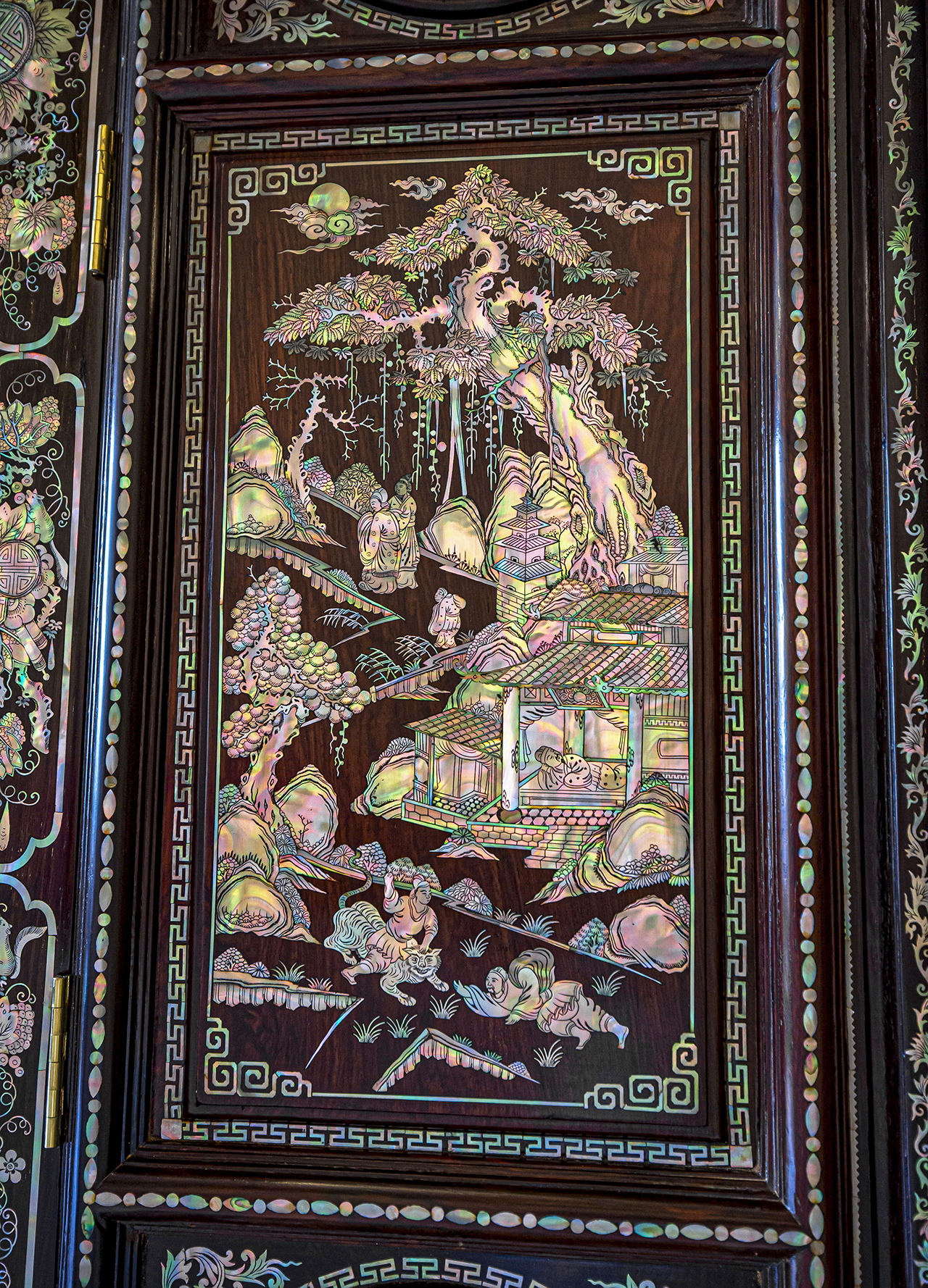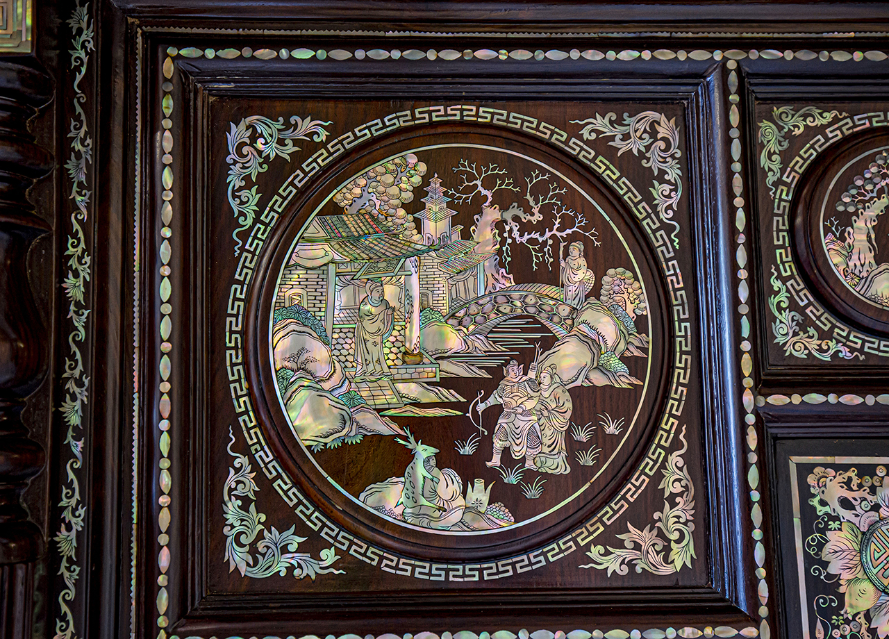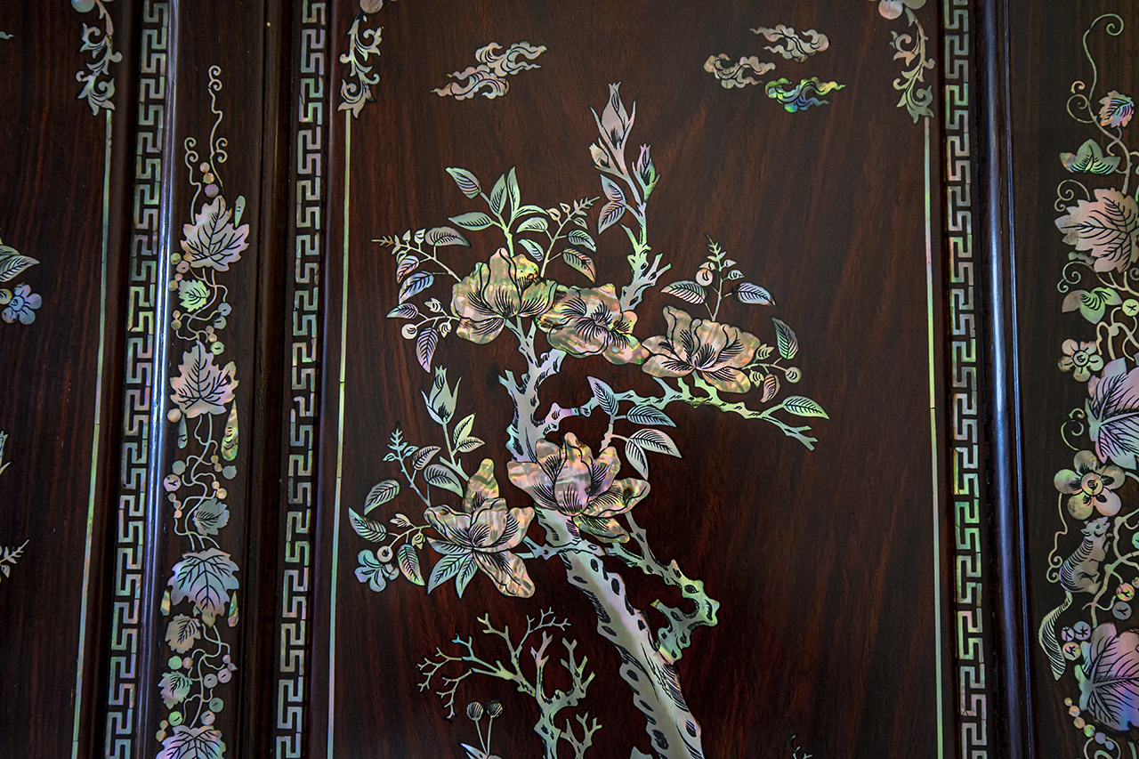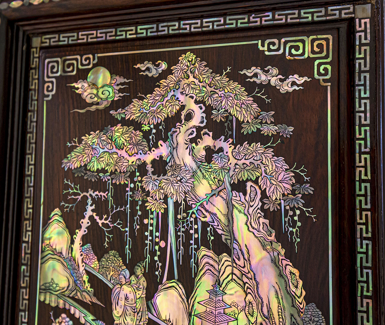 + Chất liệu: Gỗ Trắc khảm ốc xịn