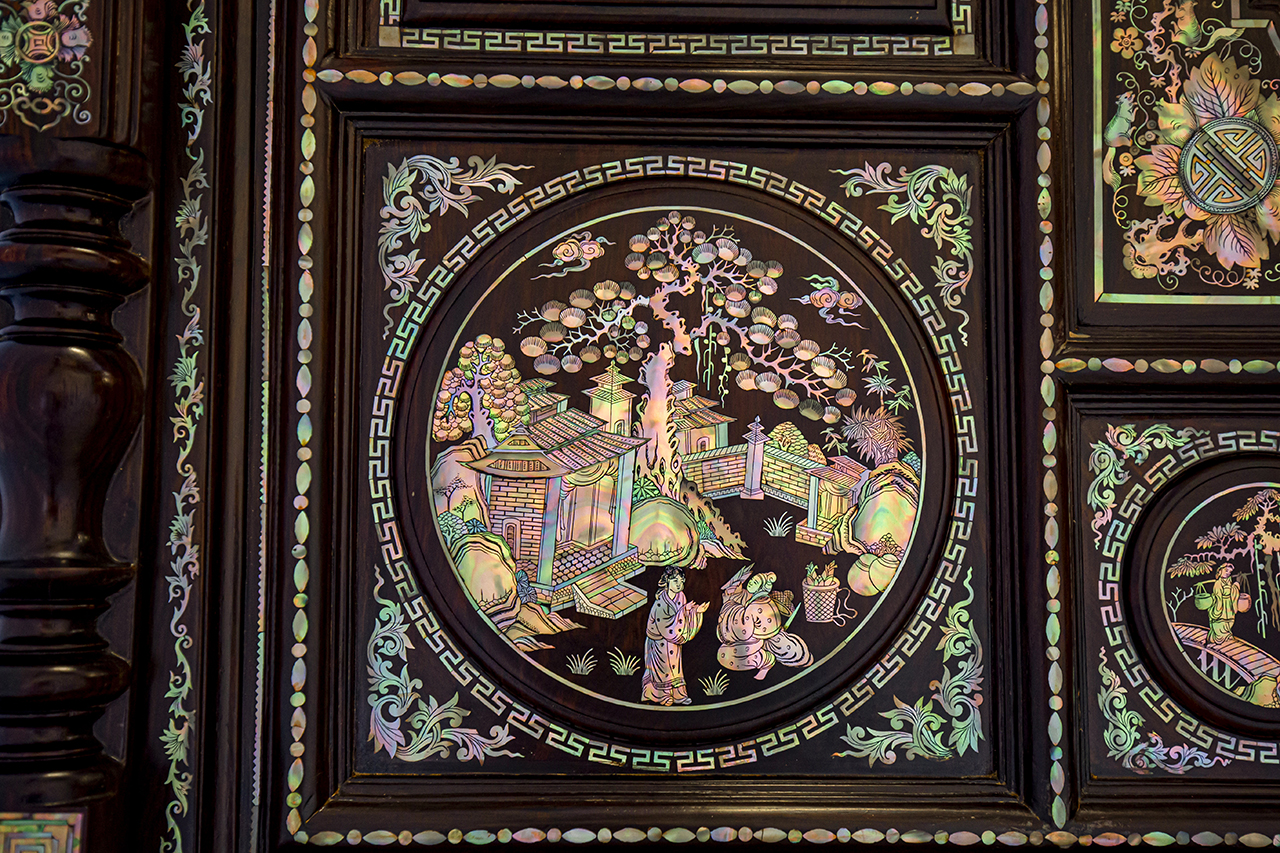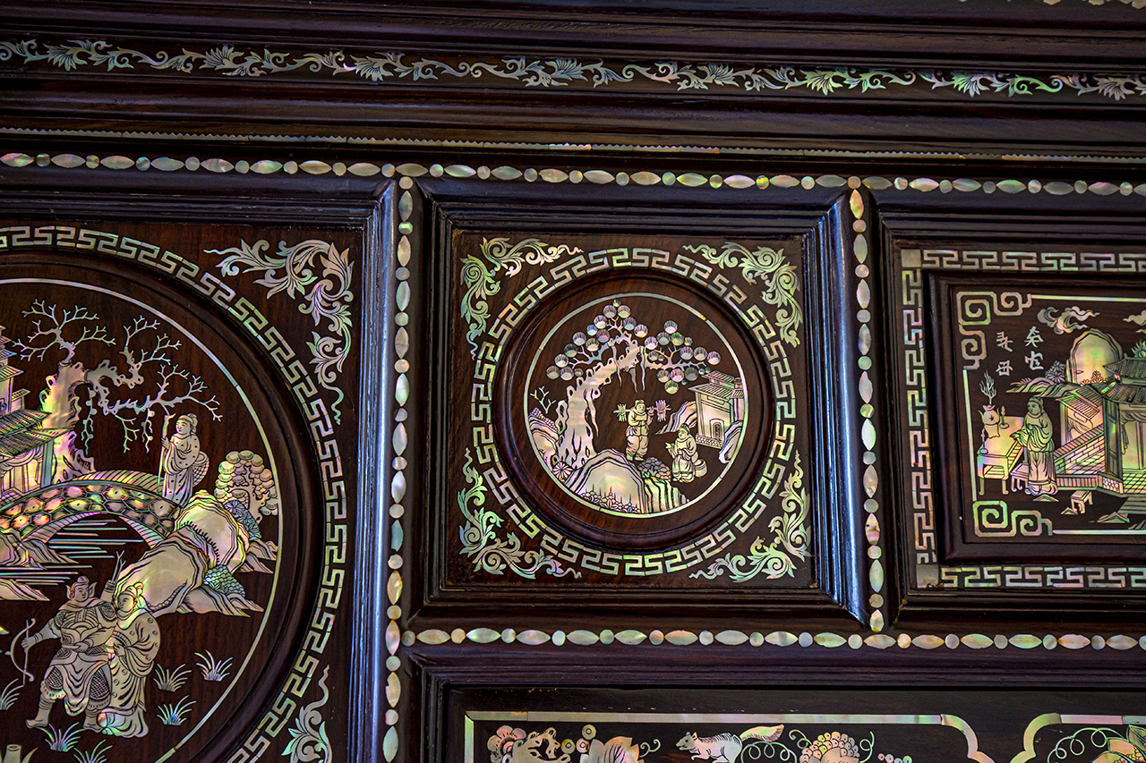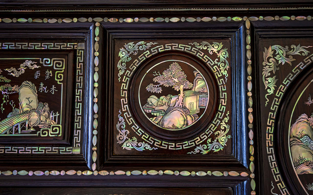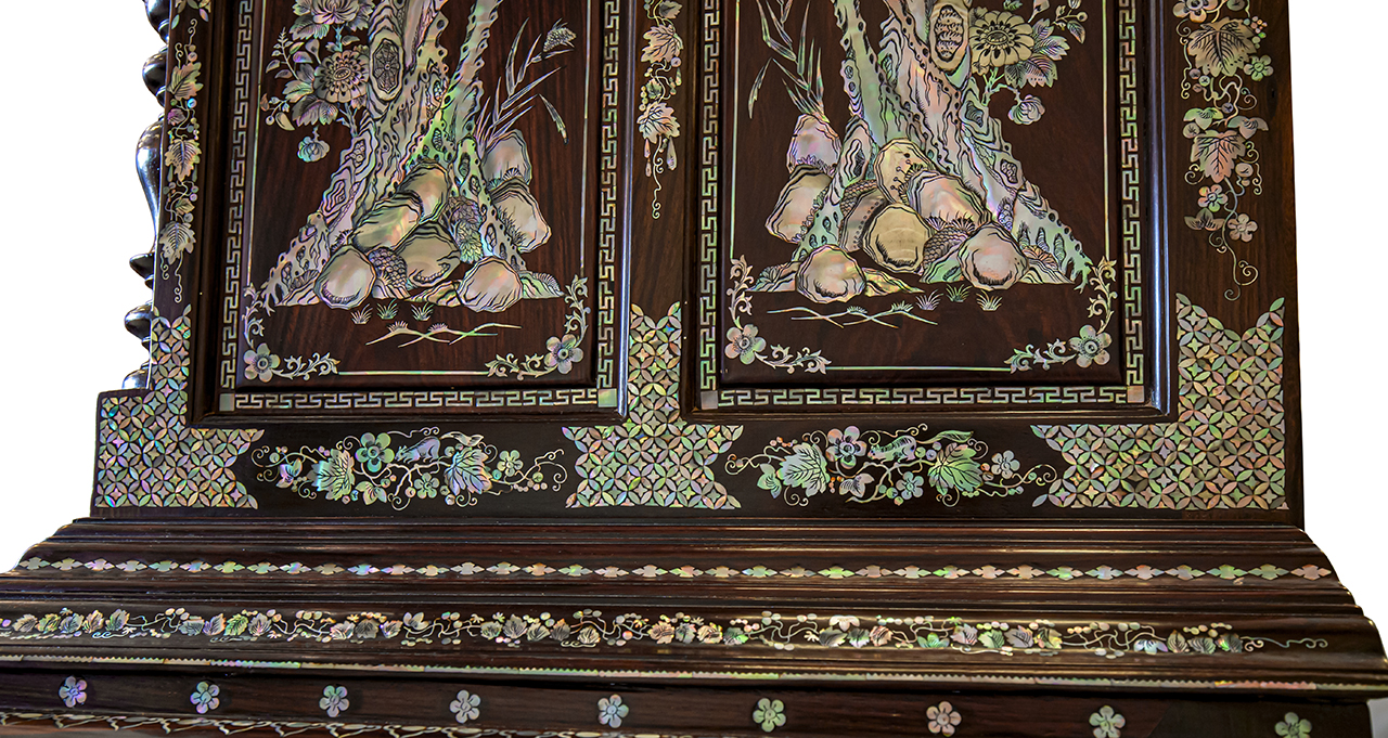 + Chất liệu: Gỗ Trắc khảm ốc xịn