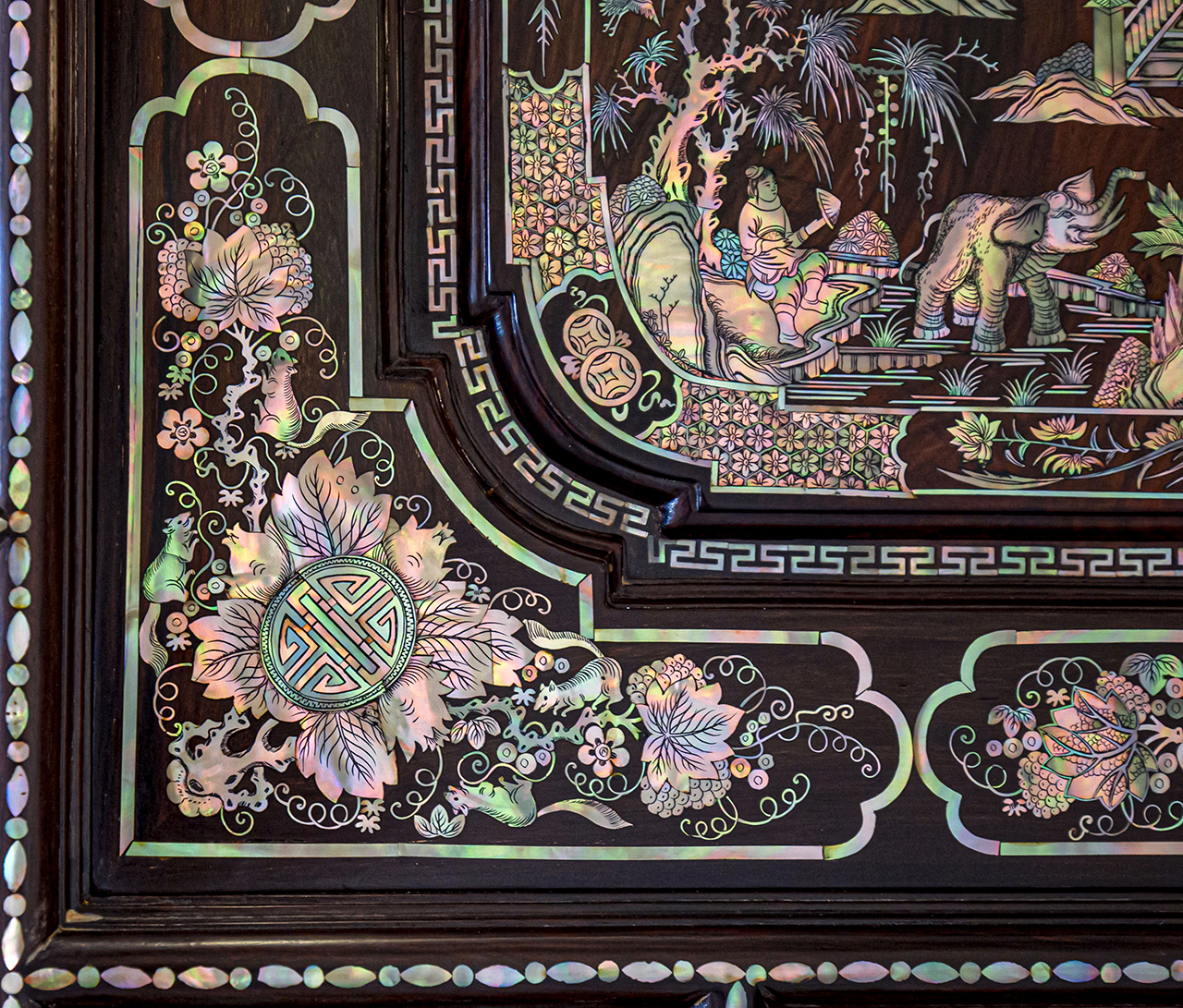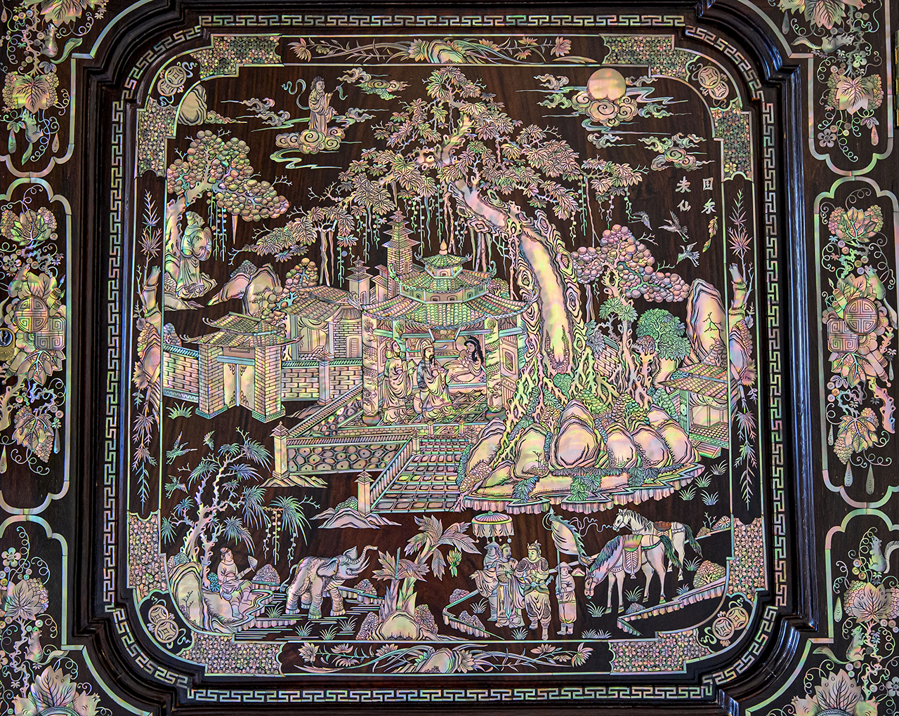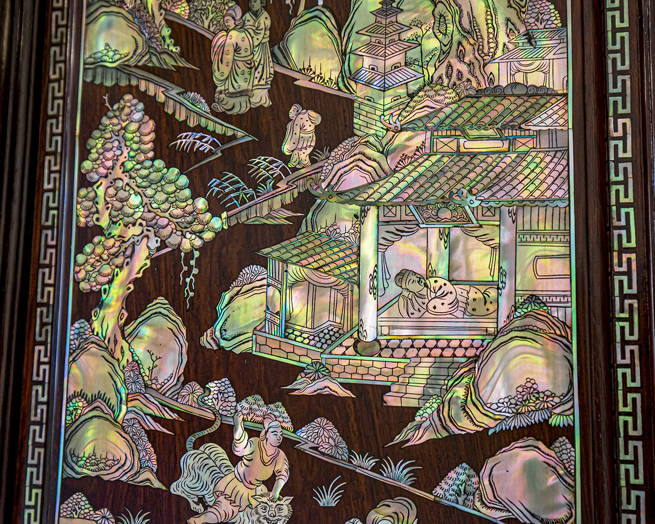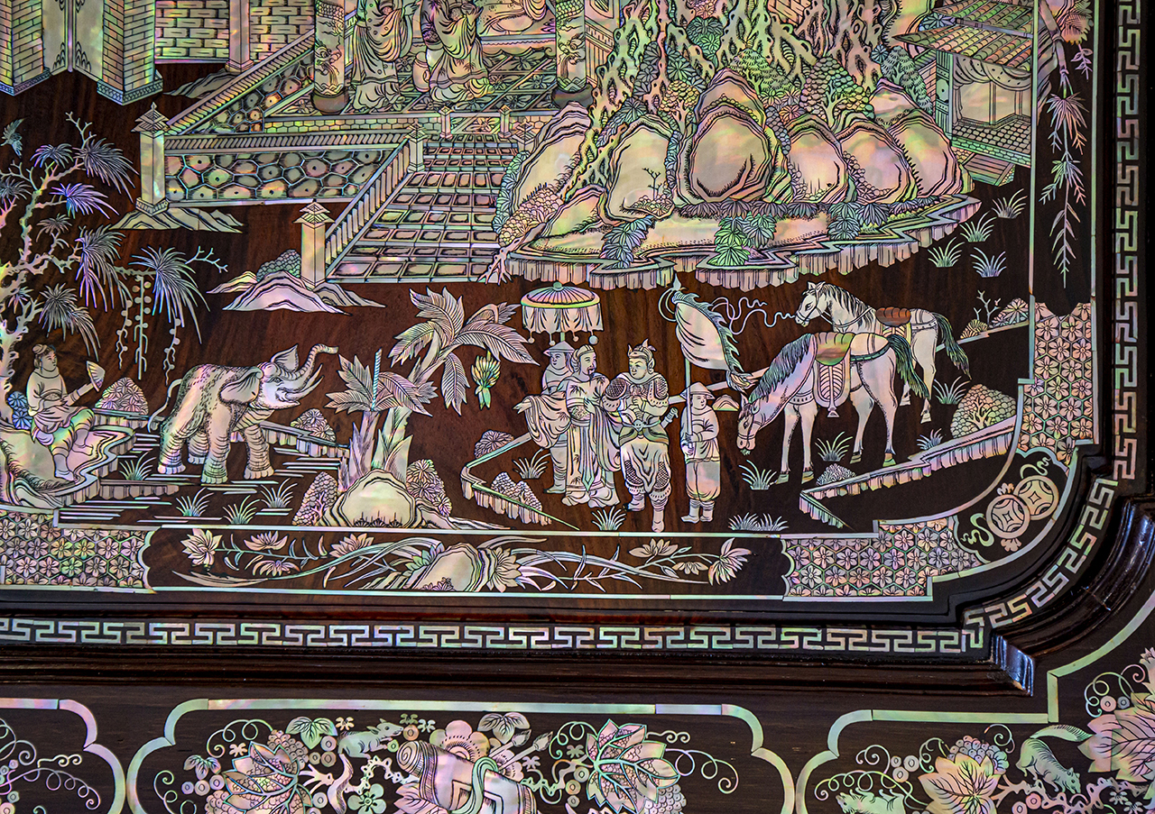 + Chất liệu: Gỗ Trắc khảm ốc xịn