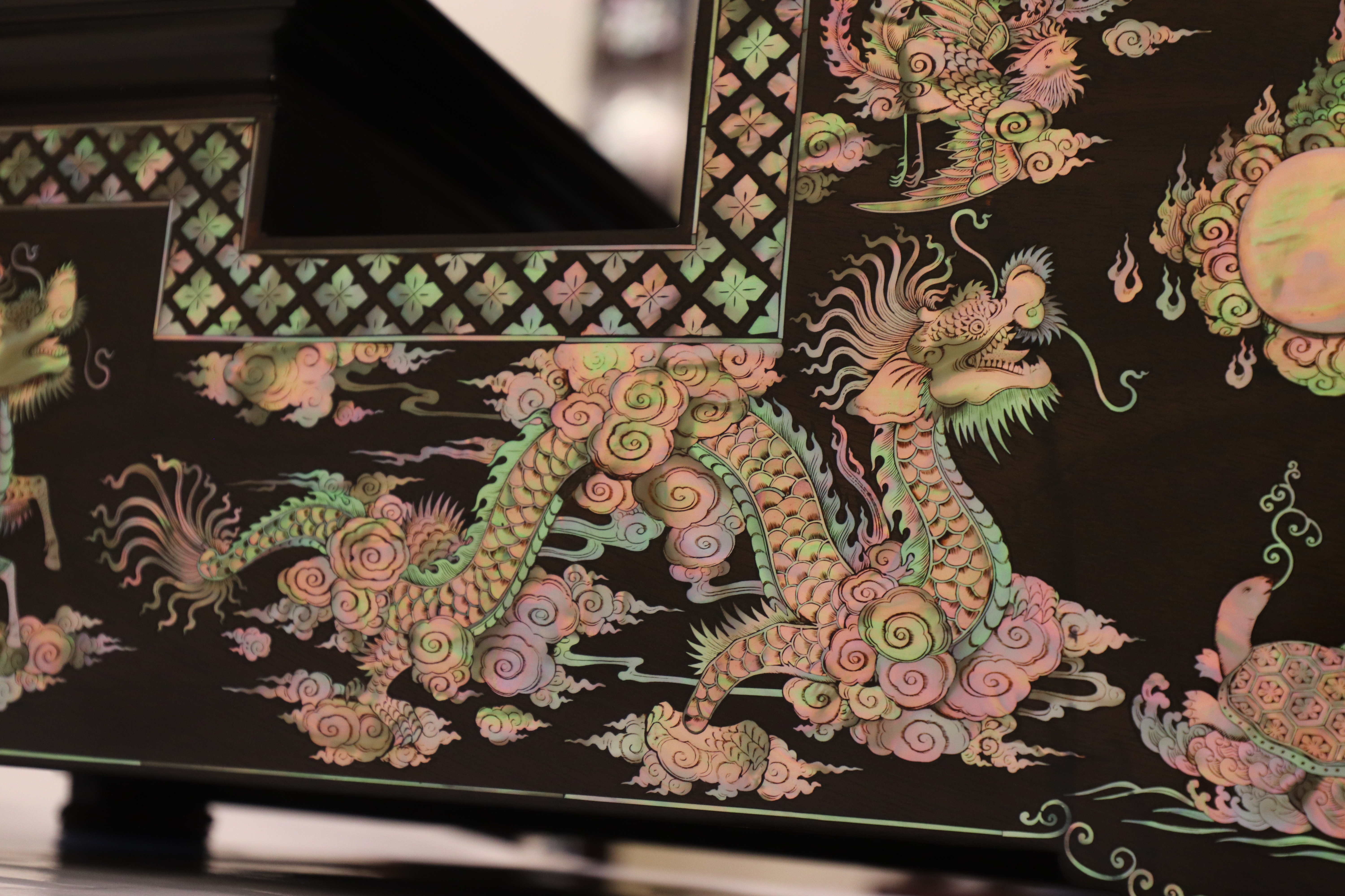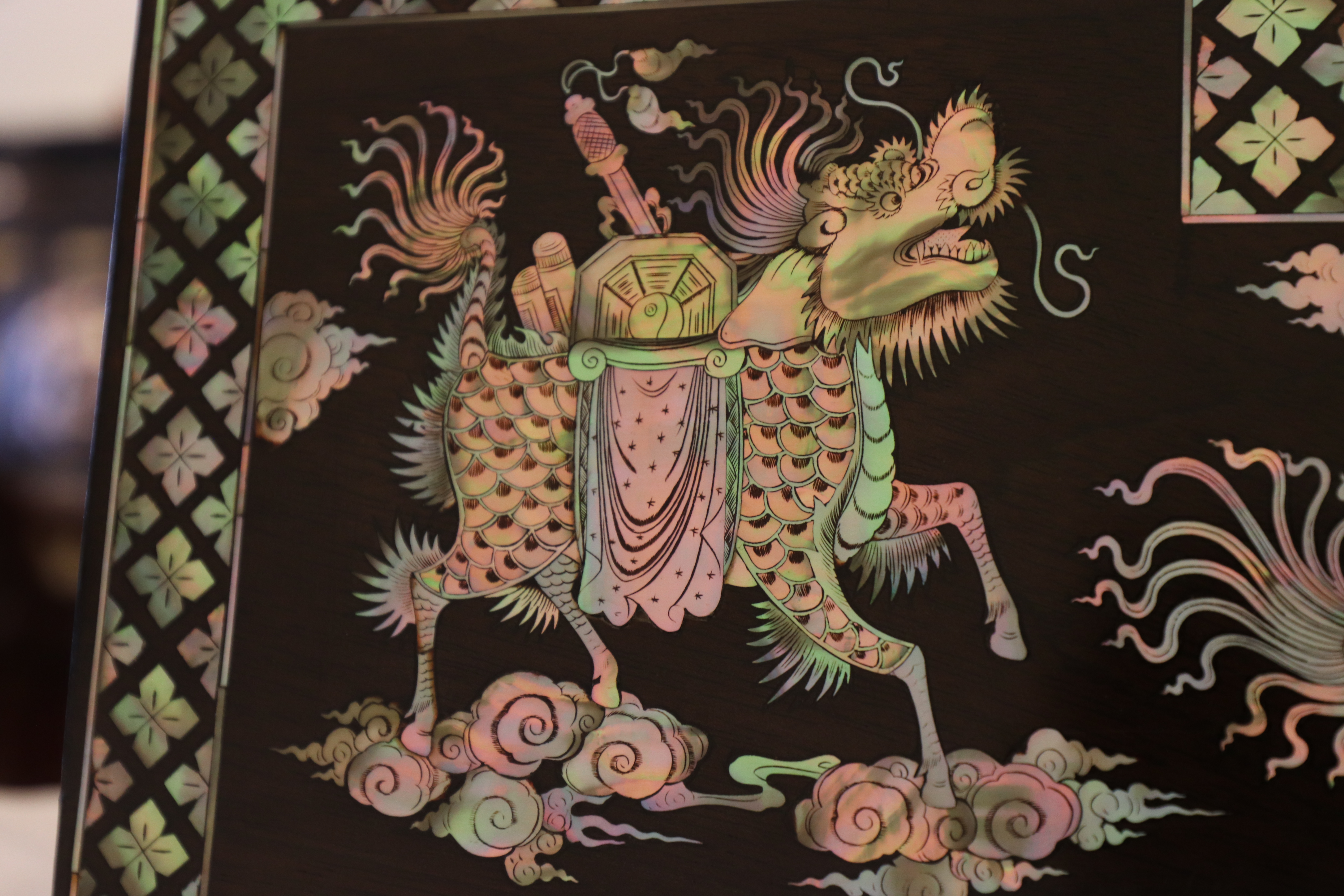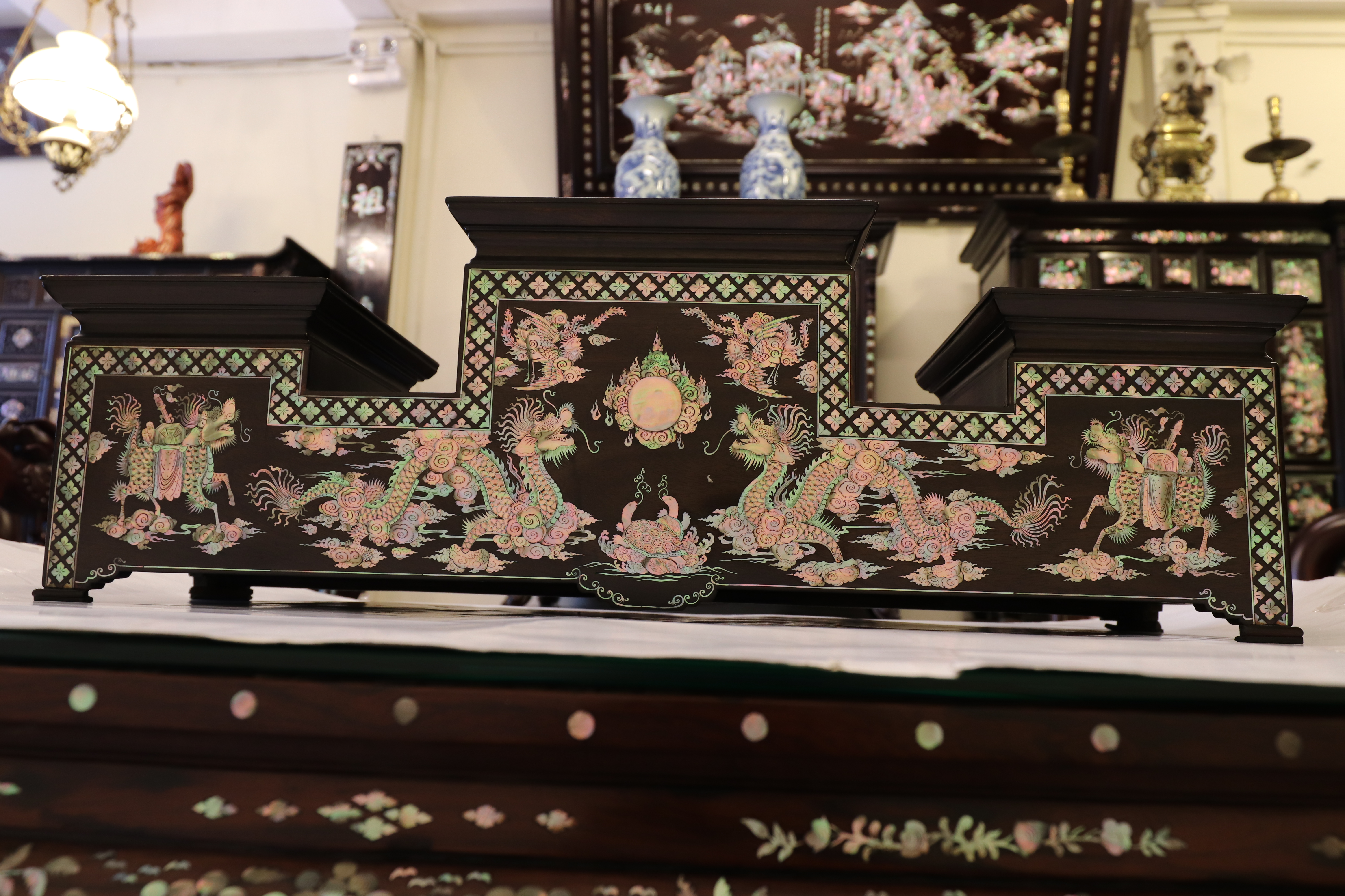 Trong lần ra mắt này, Đồ Gỗ Xưa & Nay Đức Thiện xin gửi tới quý khách hàng, những người có chung niềm đam mê cổ vật, đồ gỗ xưa và nay, một chiếc tam sơn khảm ốc đẹp với đề tài tứ linh hội tụ. Mang đậm văn hóa phương đông, đạt đến mức nghệ thuật đỉnh cao, chiếc tam sơn khảm ốc đỏ lửa vàng chanh, xen lọng kỹ đến từng chi tiết nhỏ, xứng đáng là một trân phẩm để đời rất đáng sưu tầm, vừa làm vật dụng trang trí, vừa thể hiện được đẳng cấp của gia chủ.