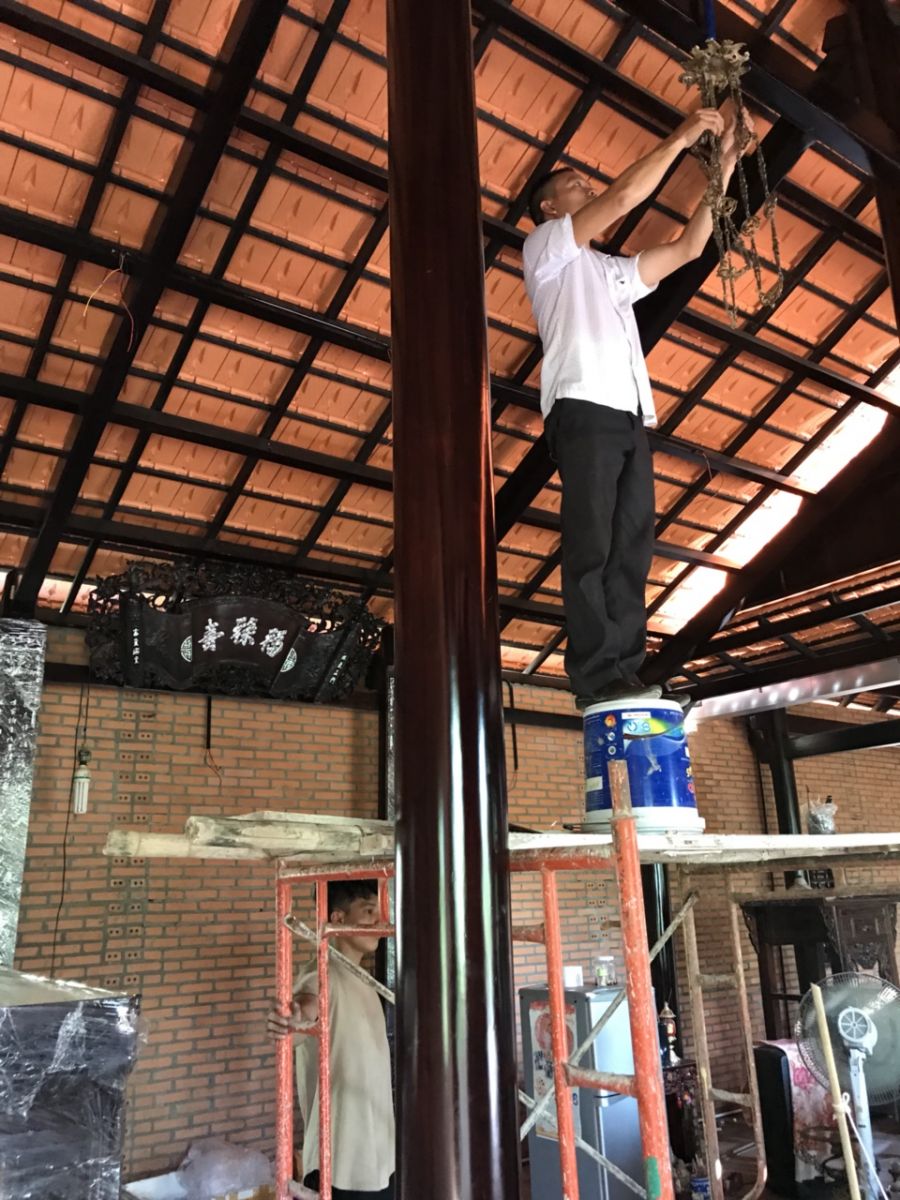 Thiết kế và thi công nội thất, đèn cổ, quạt trần cho nhà cổ của Chị Nhàn - Củ Chi, Sài Gòn: