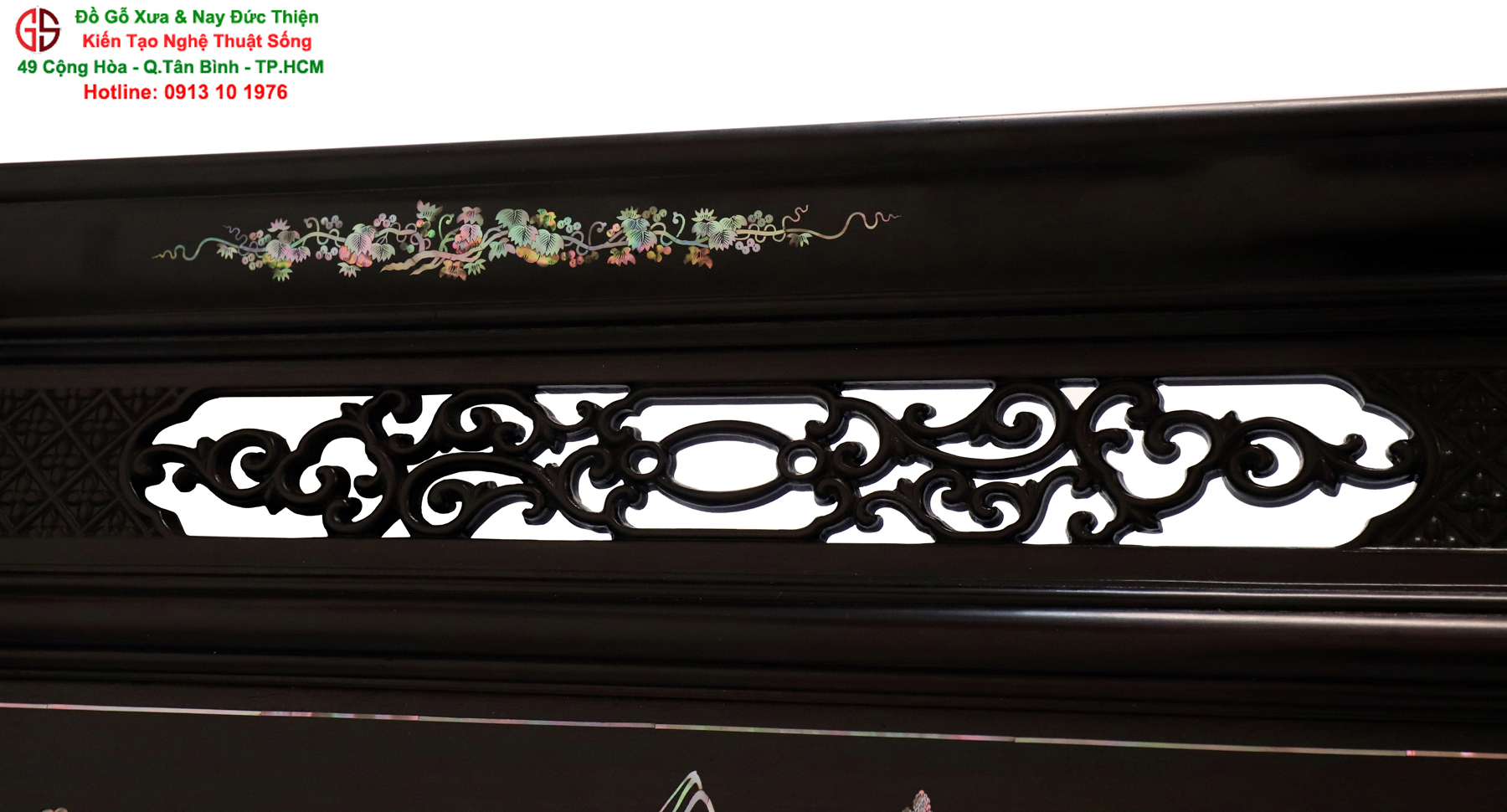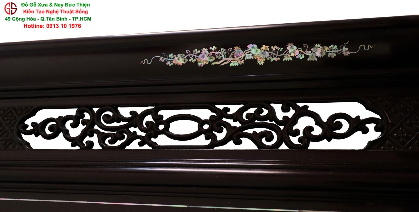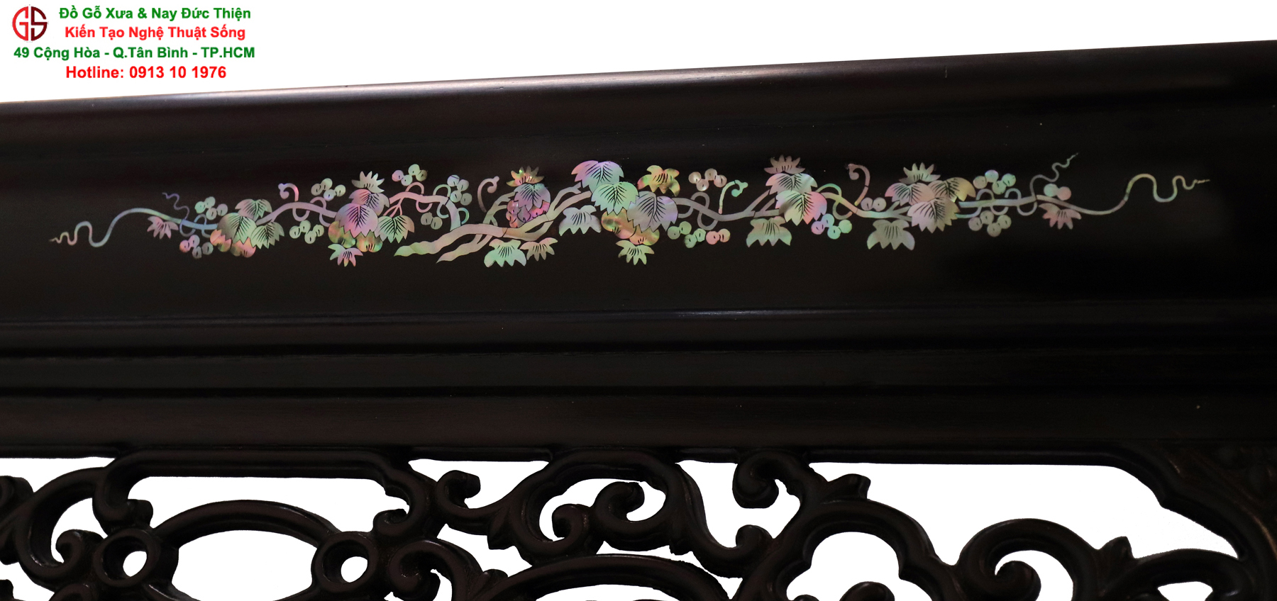 + Chất liệu: Gỗ gụ + Khảm Ốc xà cừ