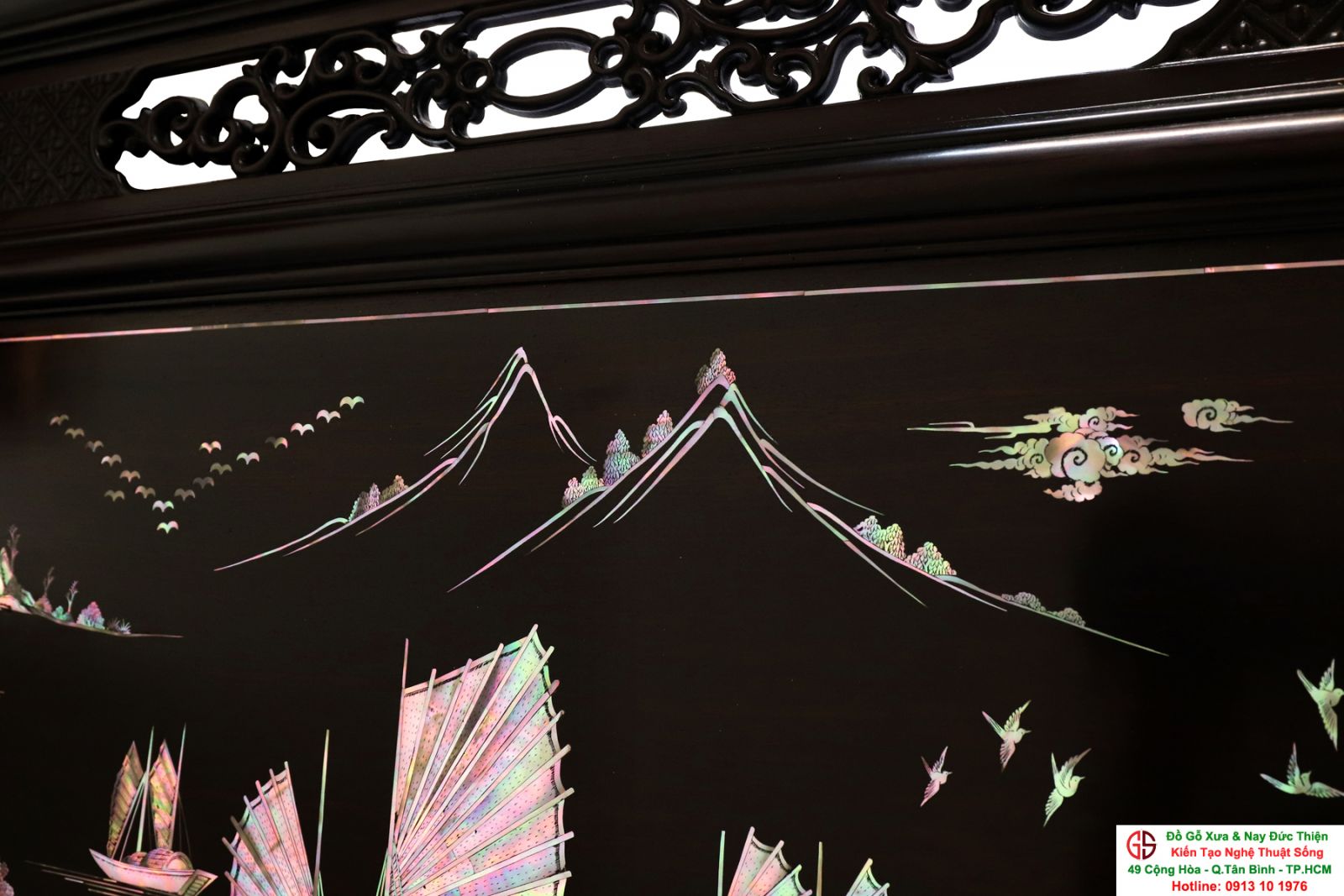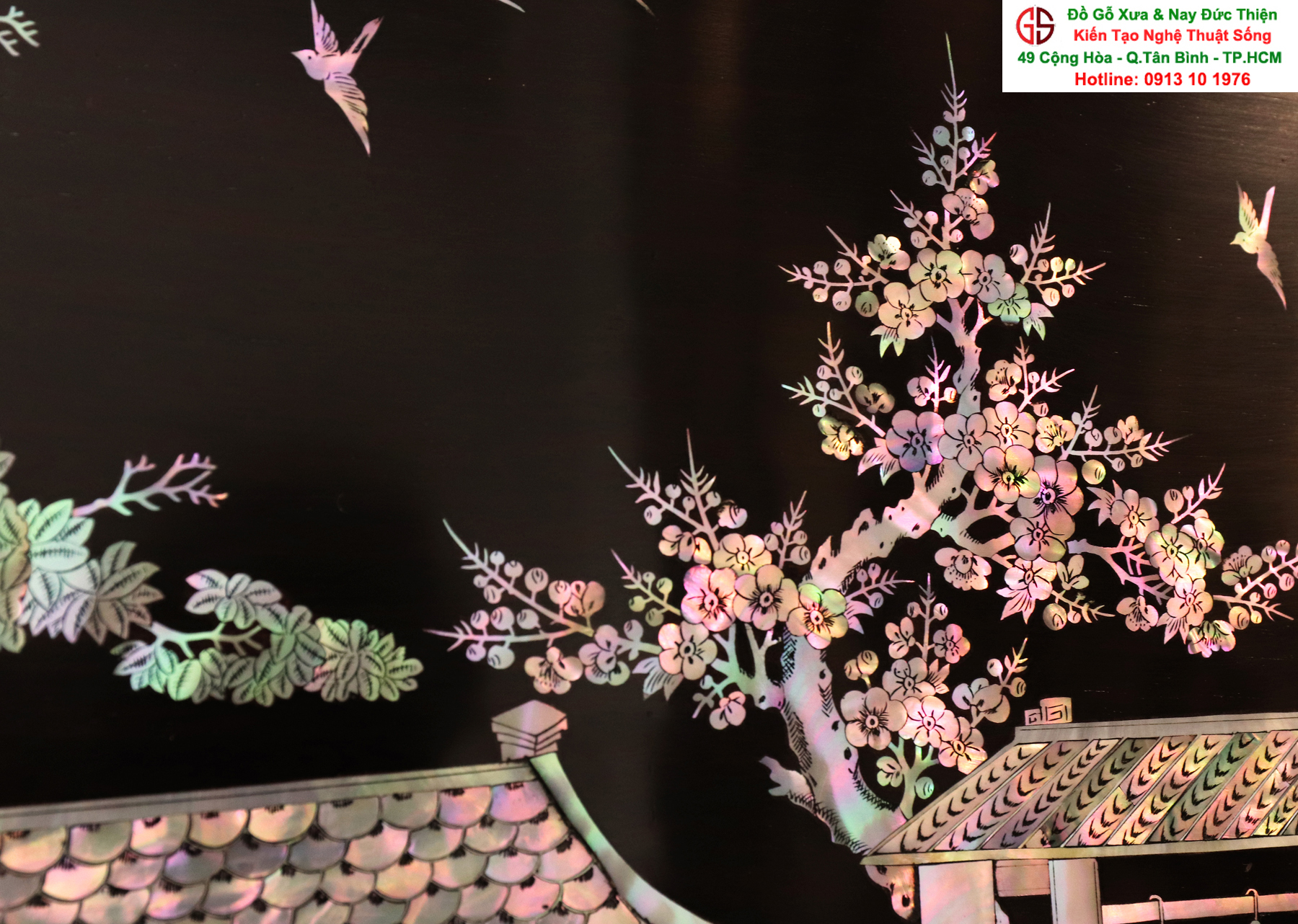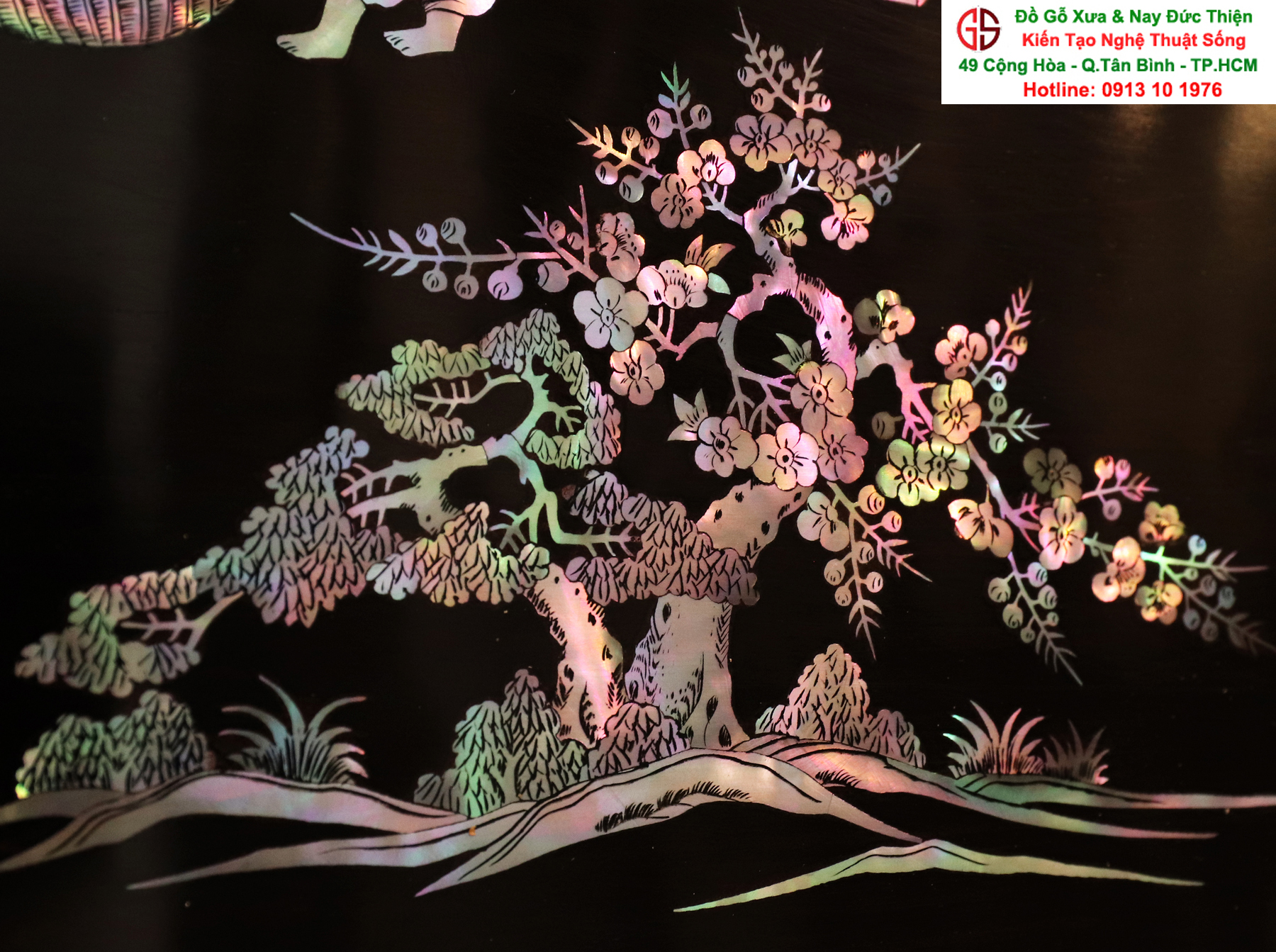 + Chất liệu: Gỗ gụ + Khảm Ốc xà cừ