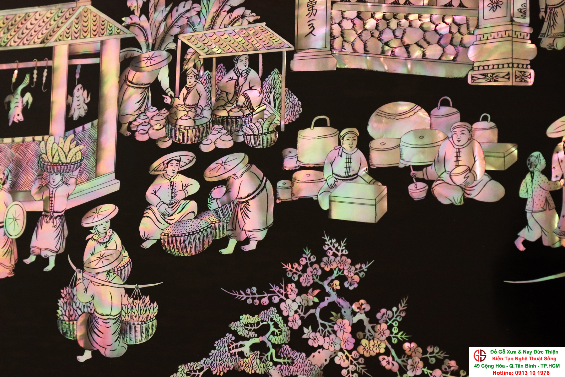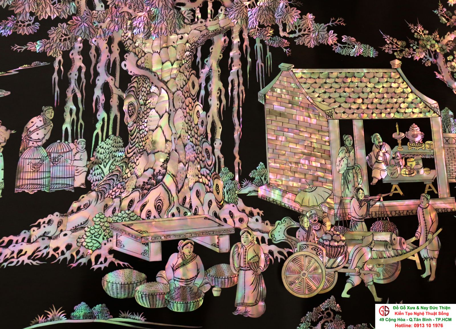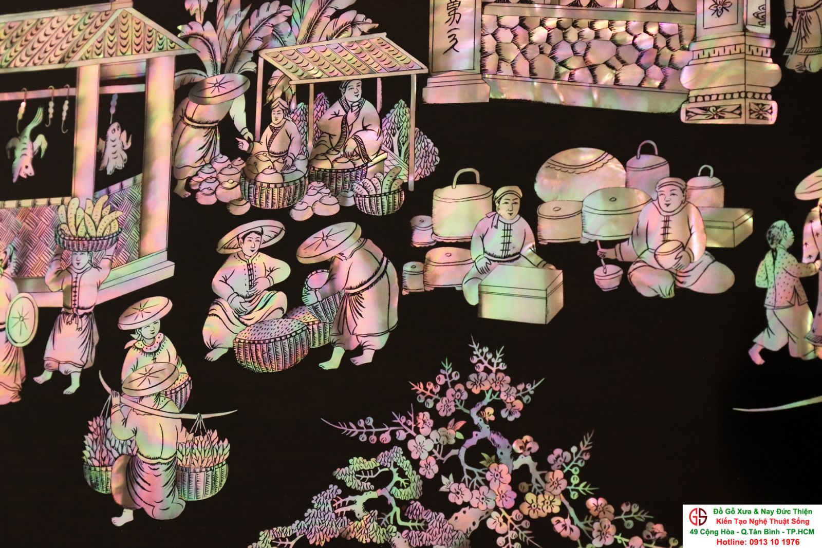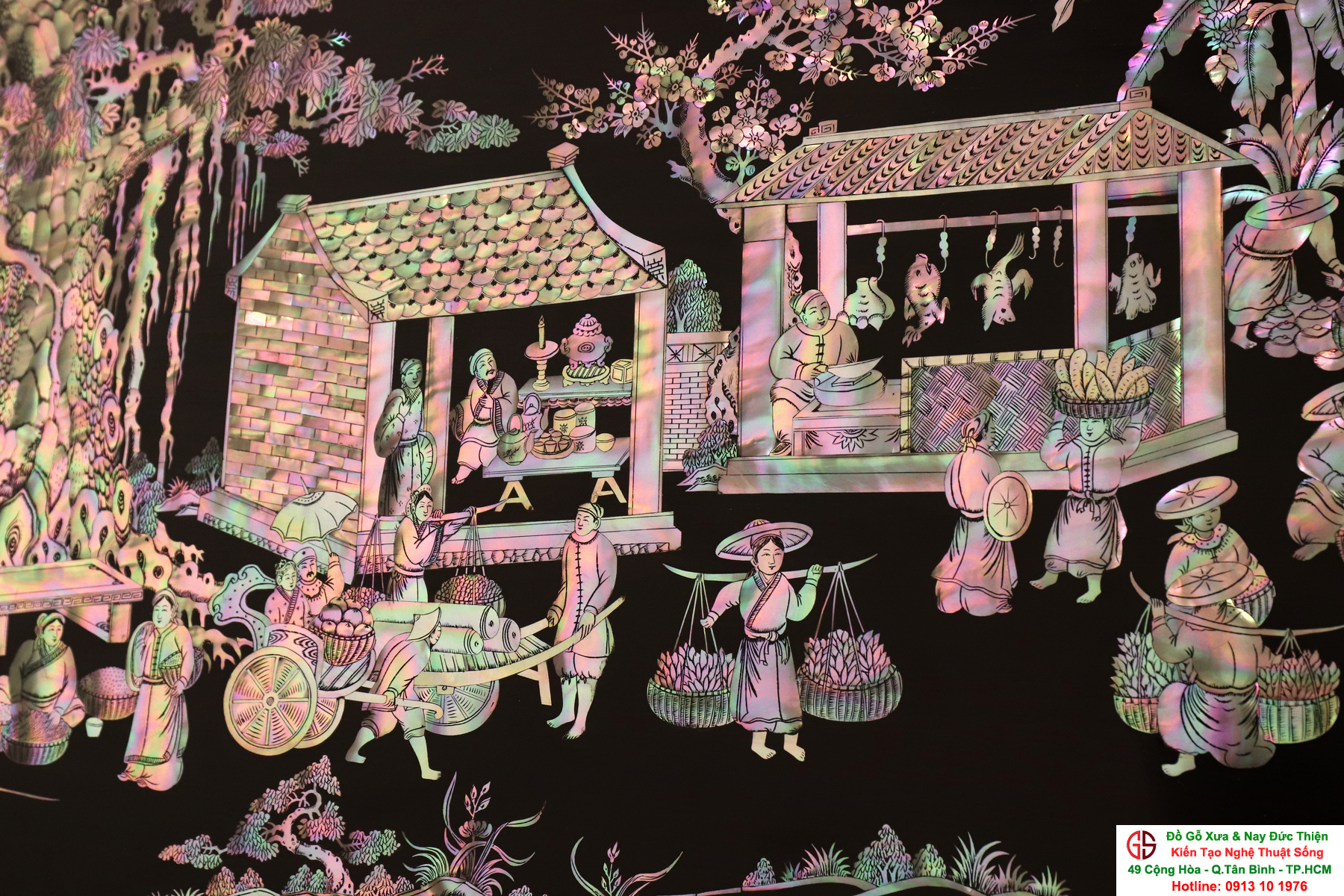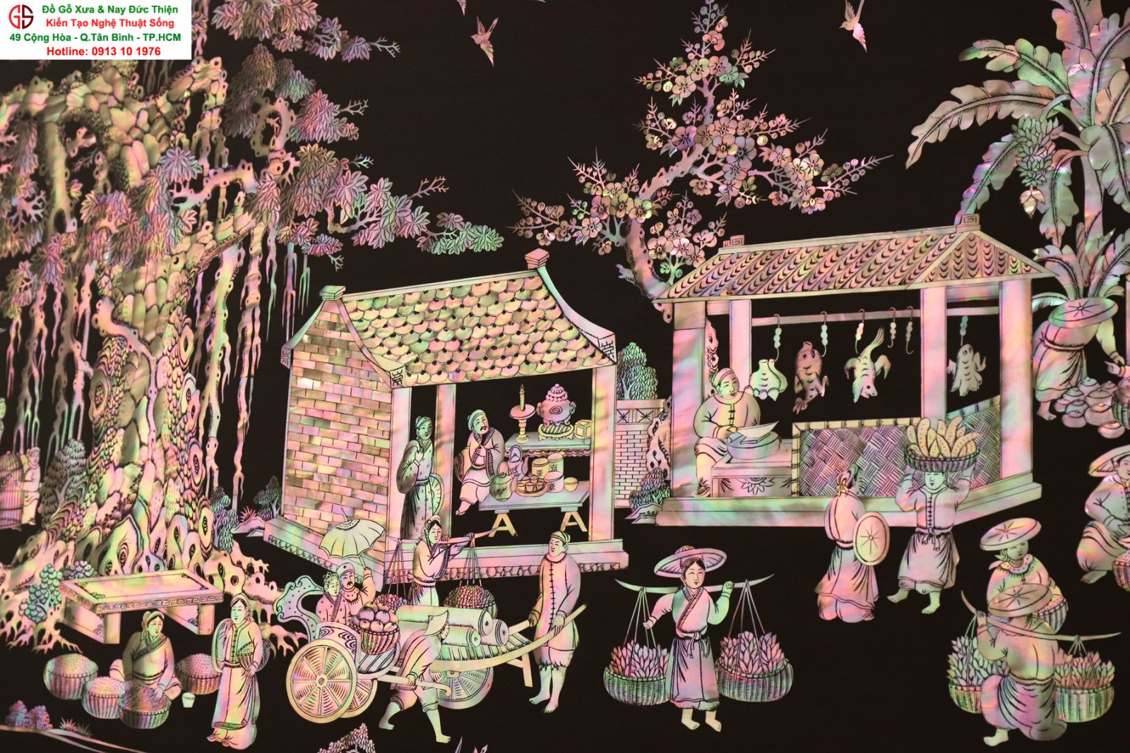 TRANH CHỢ QUÊ - BỨC TRANH KHẢM ỐC ĐẸP