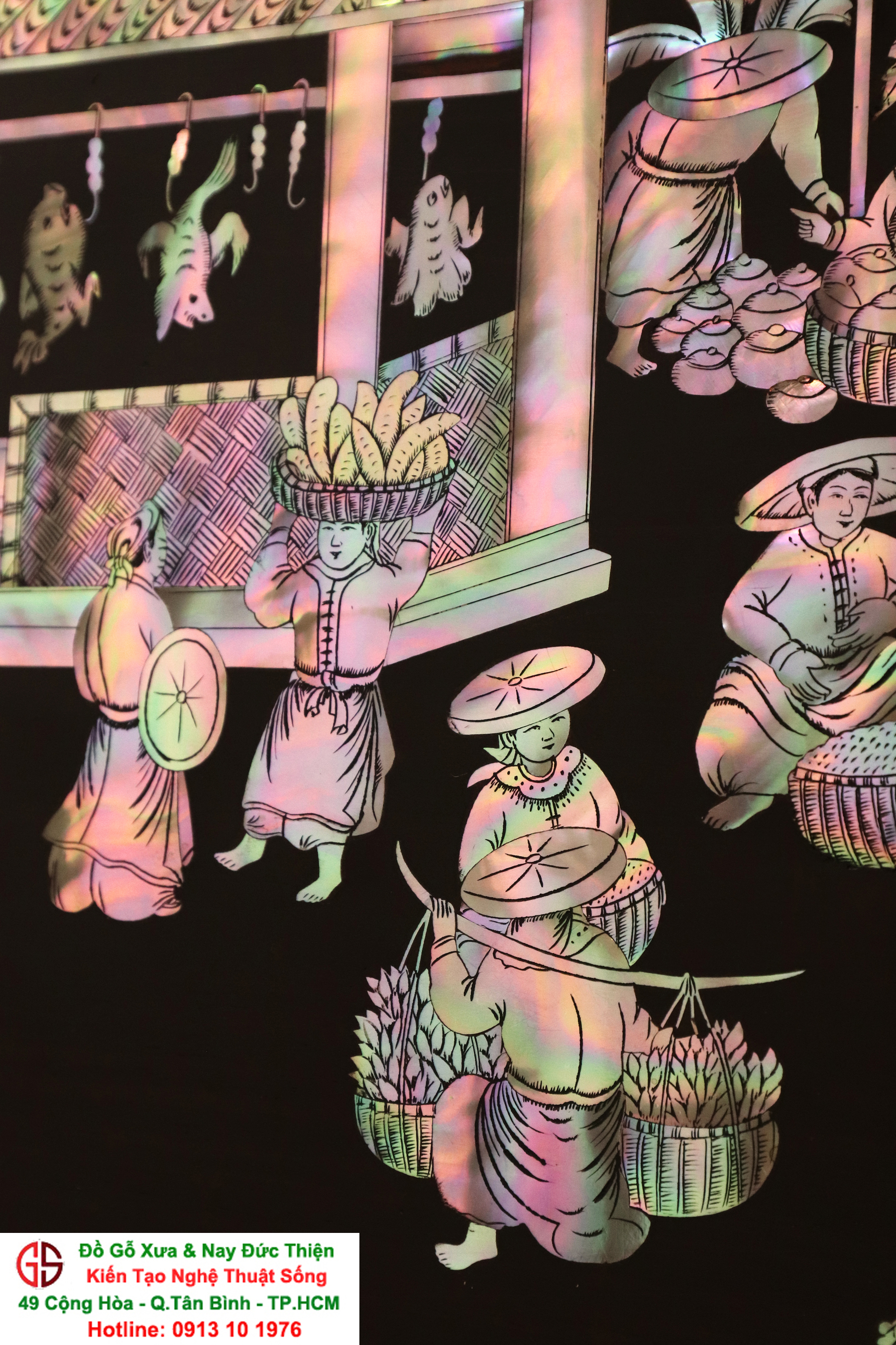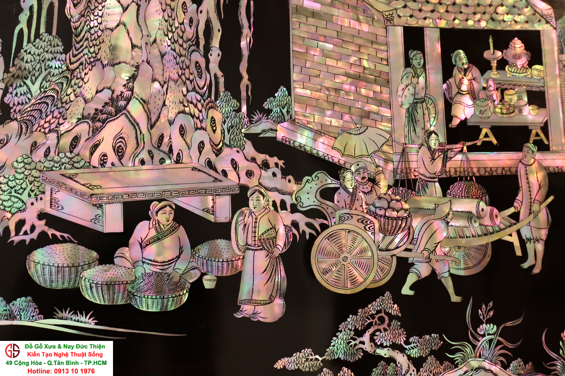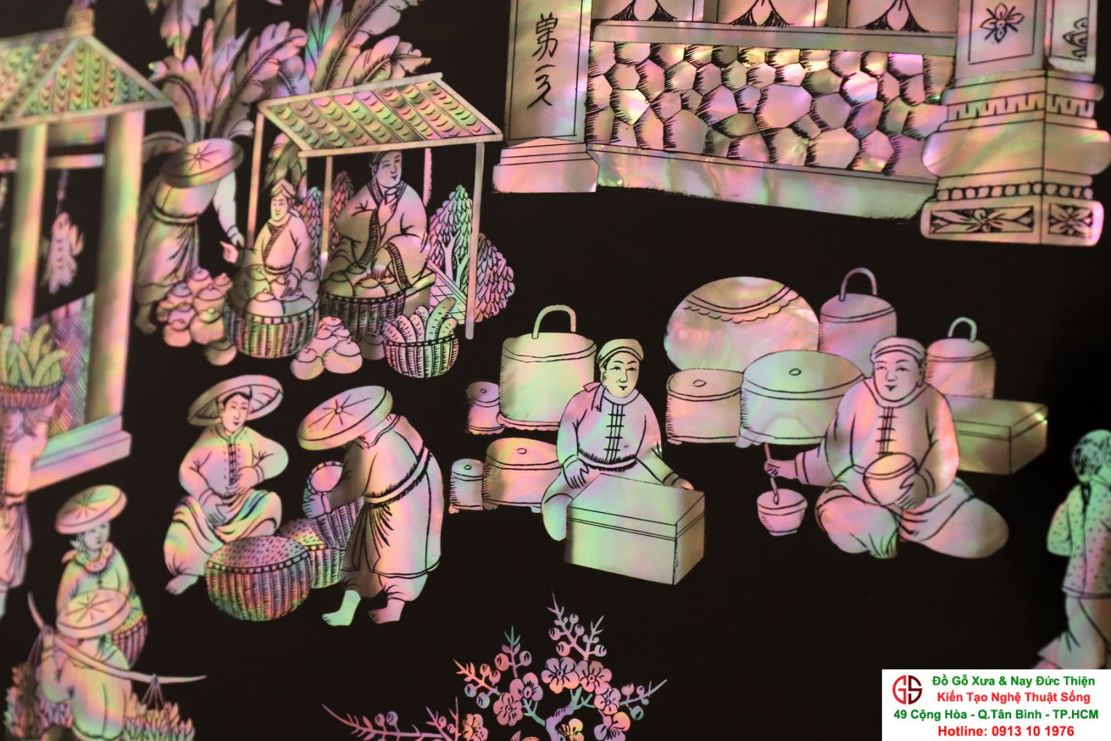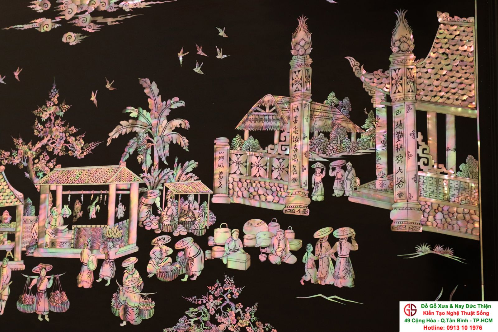 TRANH CHỢ QUÊ - BỨC TRANH KHẢM ỐC ĐẸP