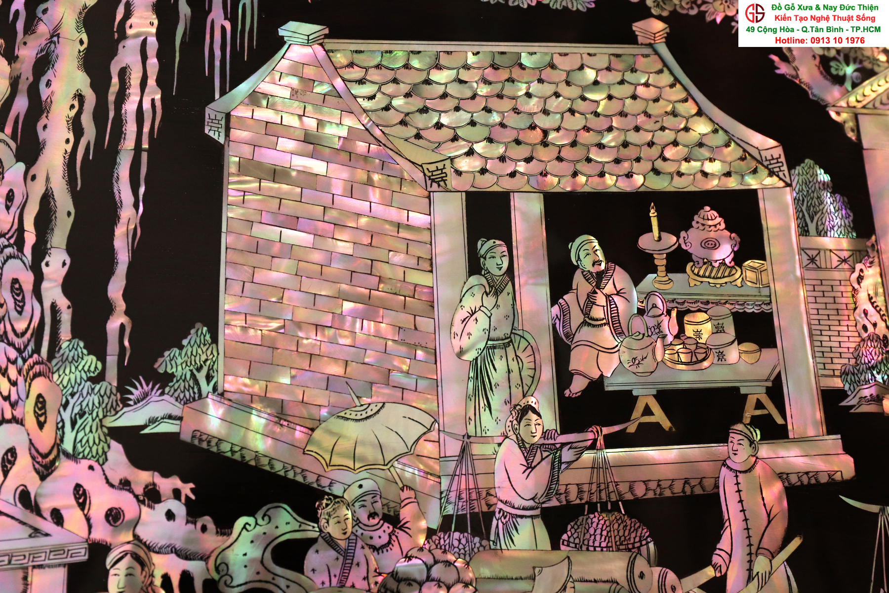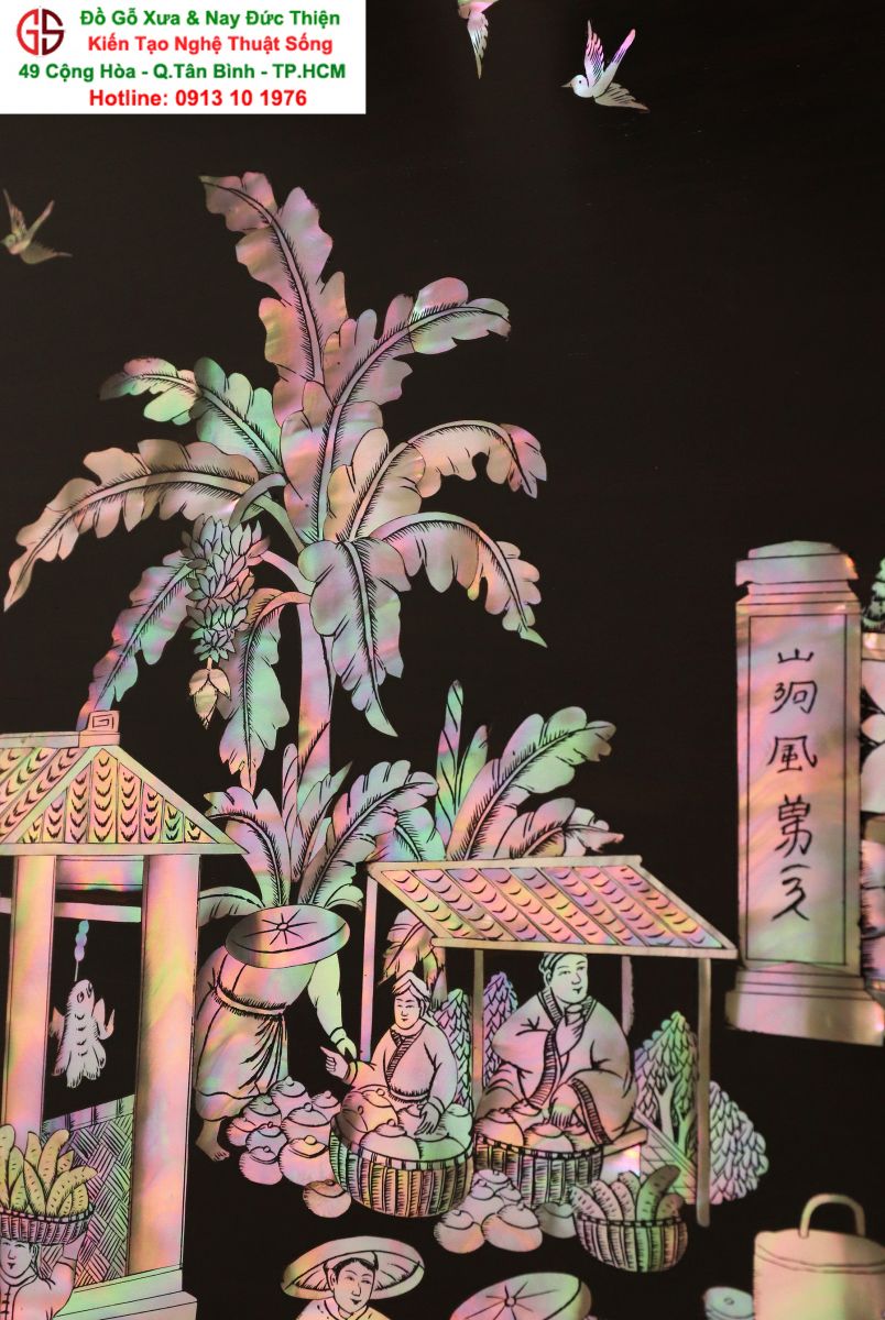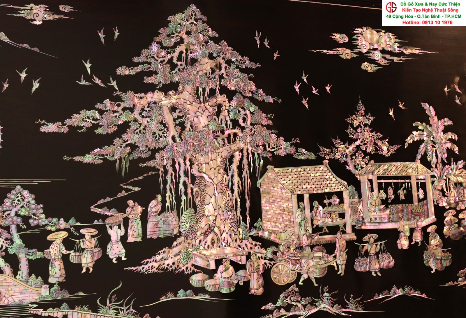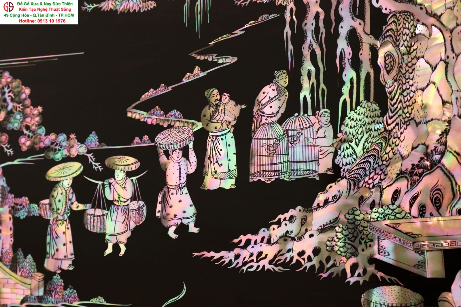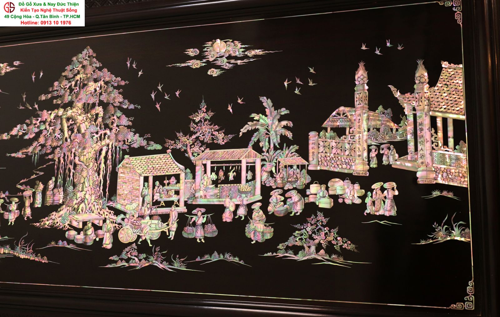 TRANH CHỢ QUÊ - BỨC TRANH KHẢM ỐC ĐẸP