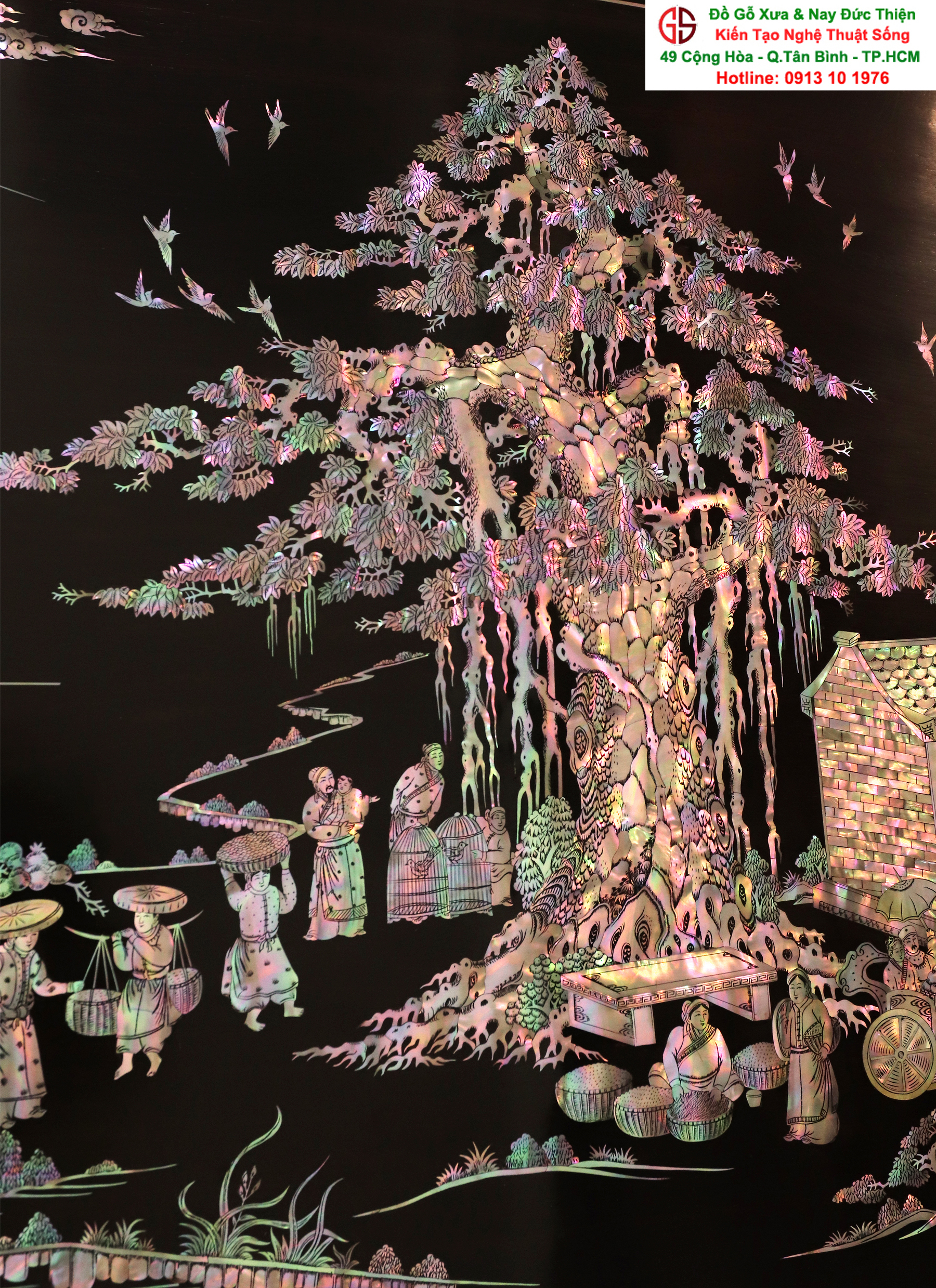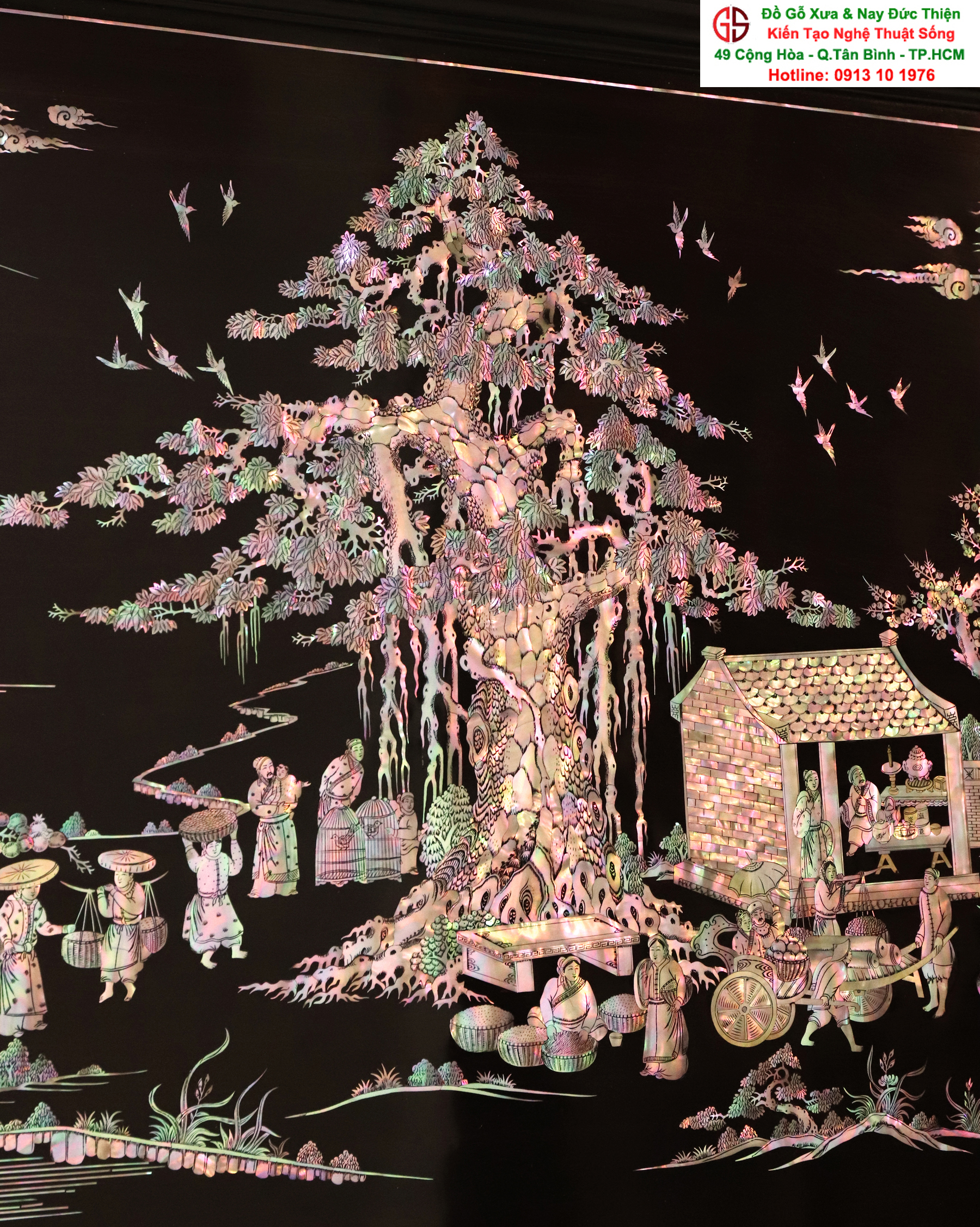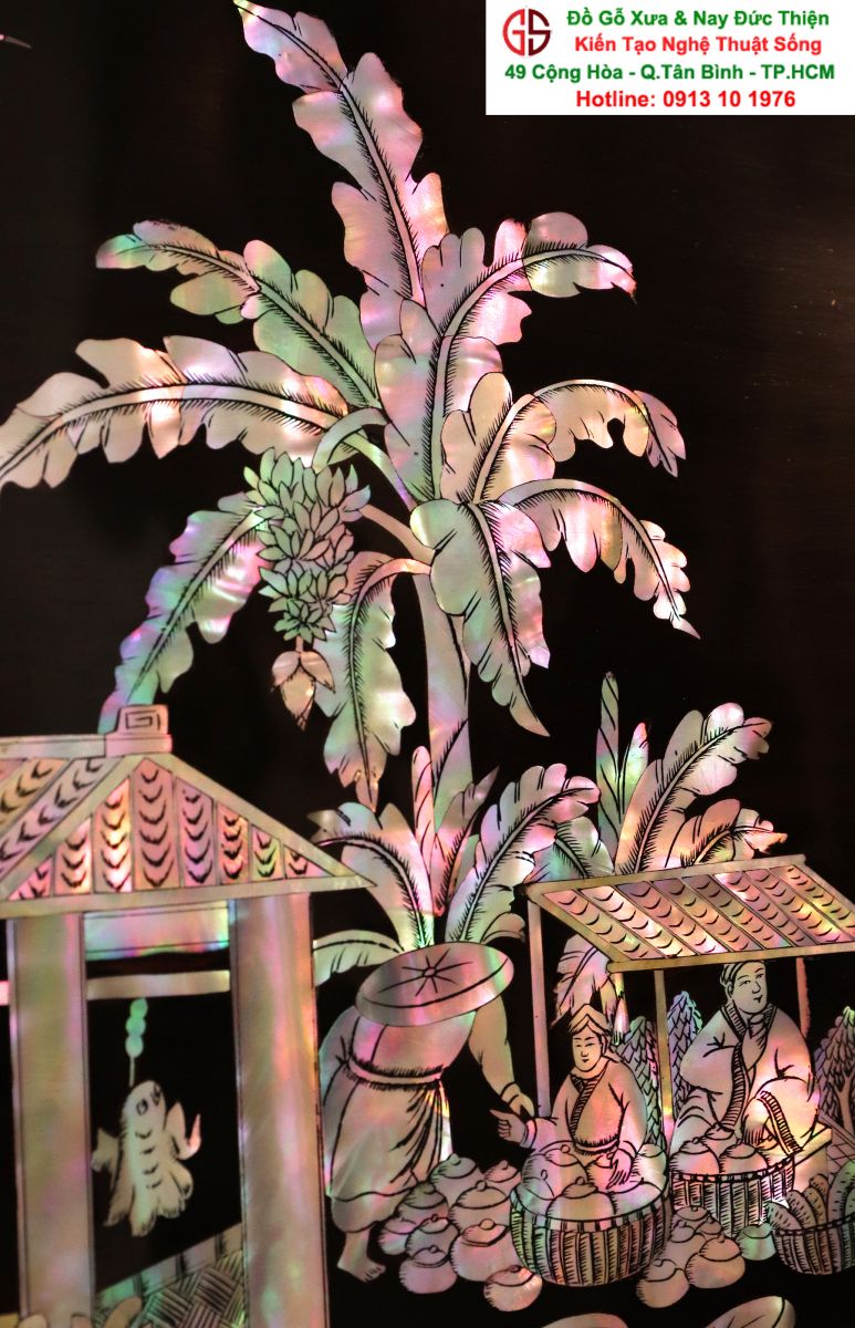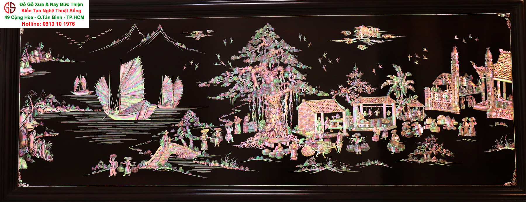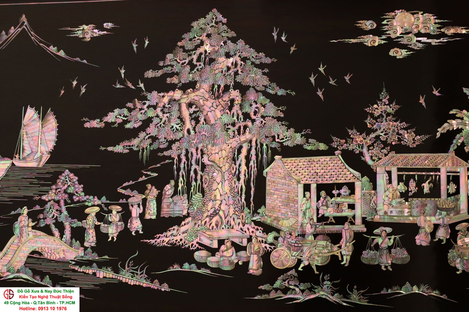 TRANH CHỢ QUÊ - BỨC TRANH KHẢM ỐC ĐẸP