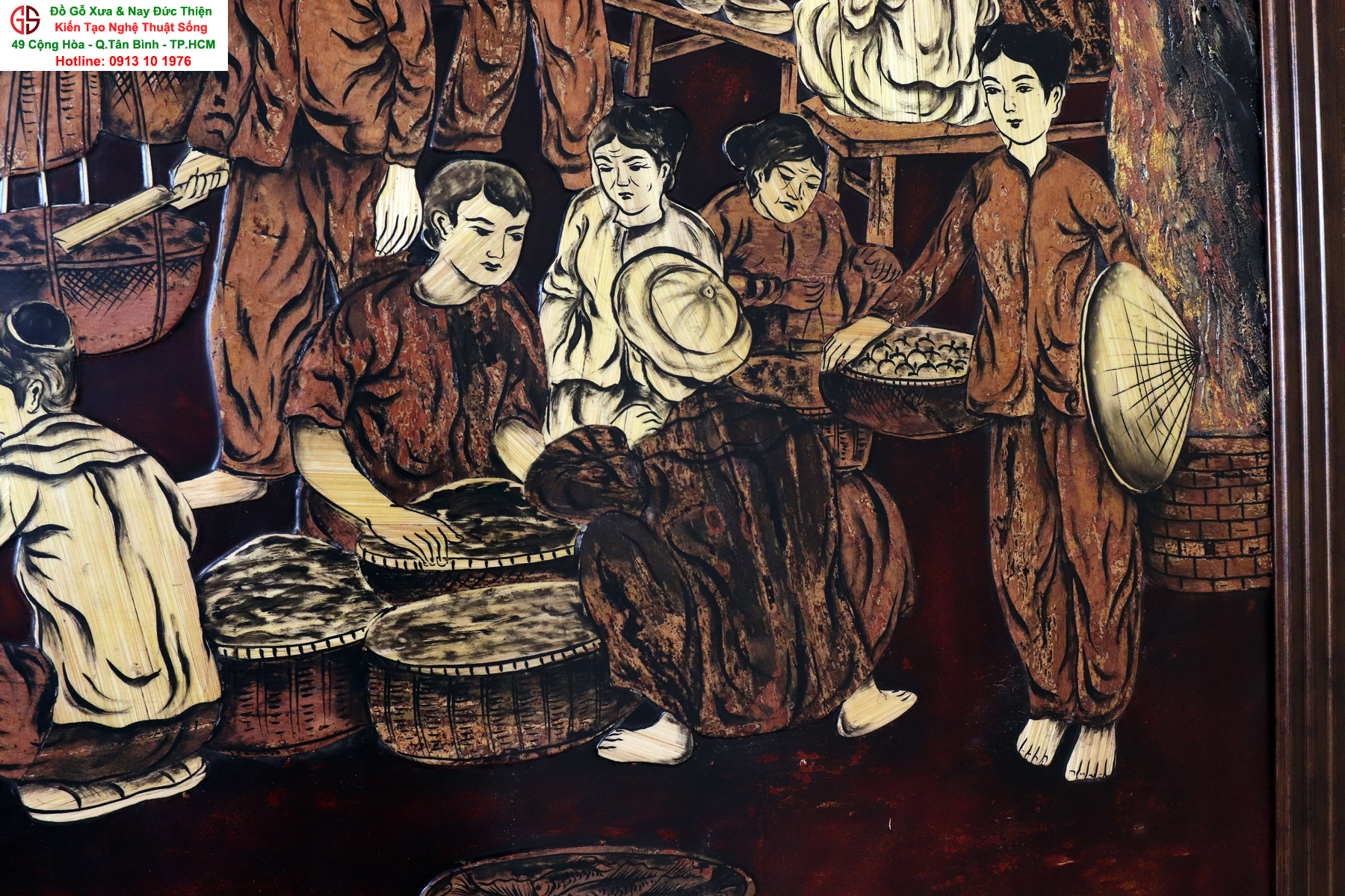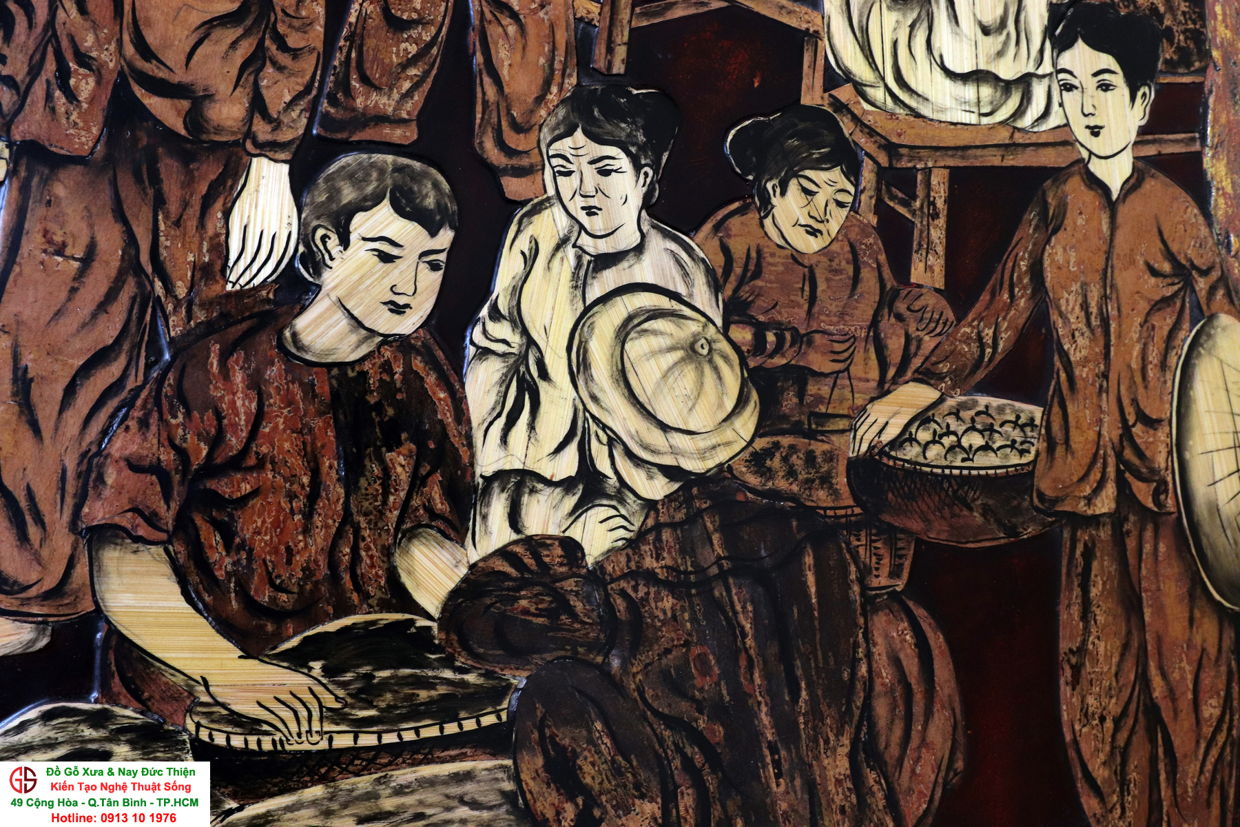 + Thể loại tranh: Sơn mài thiếp vàng , khảm gỗ.