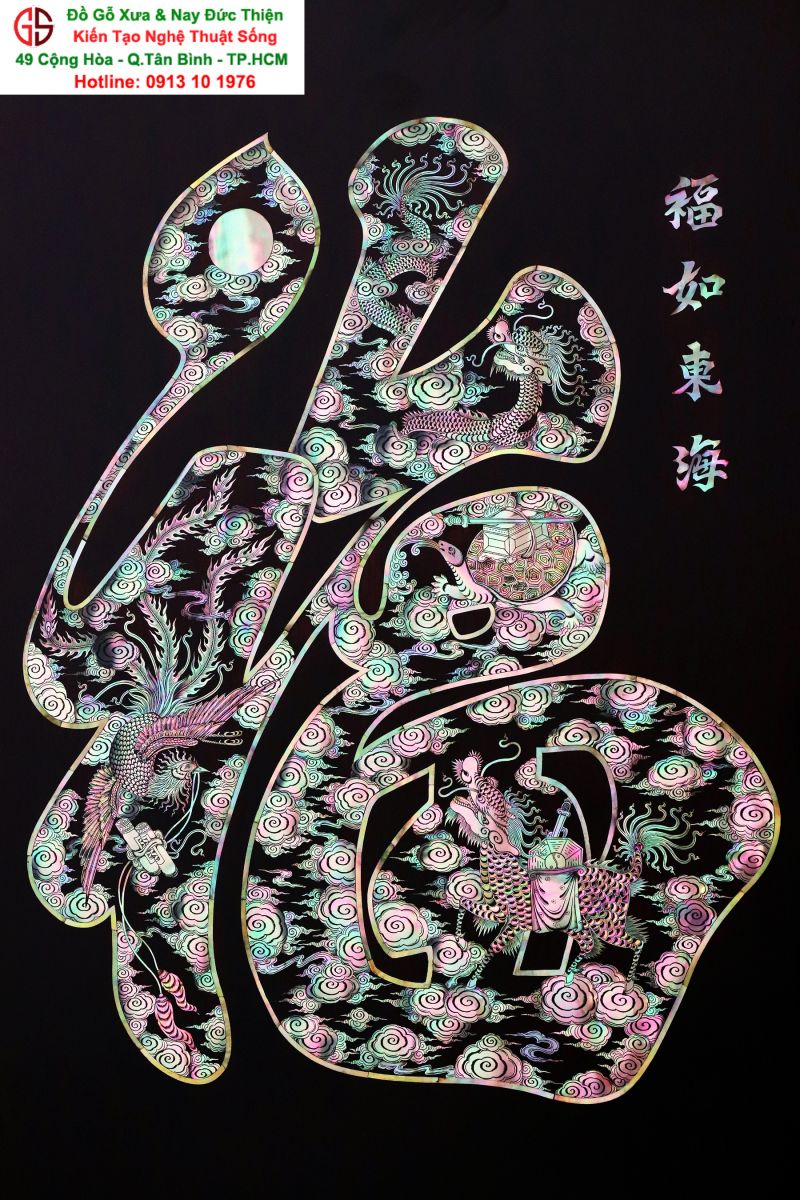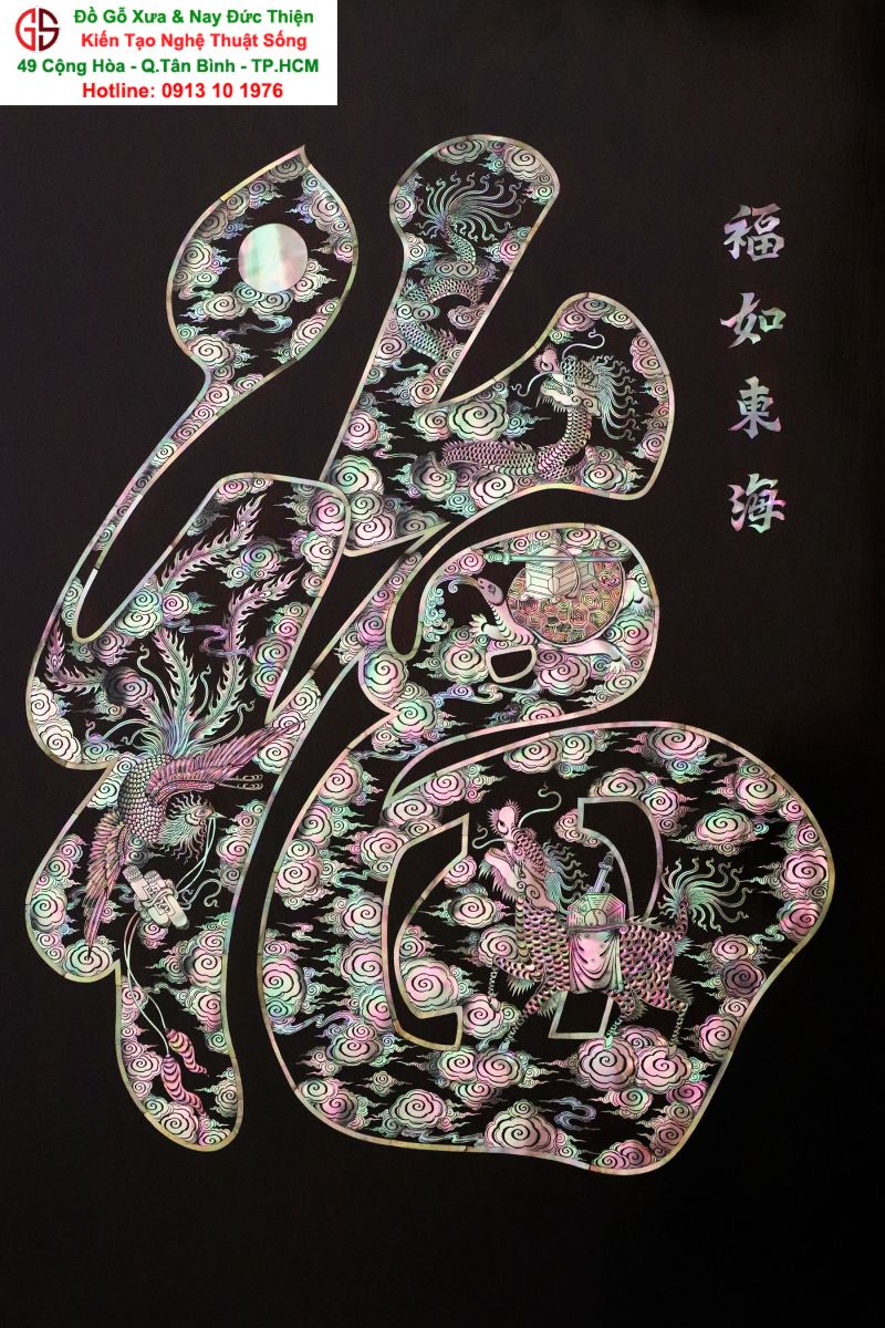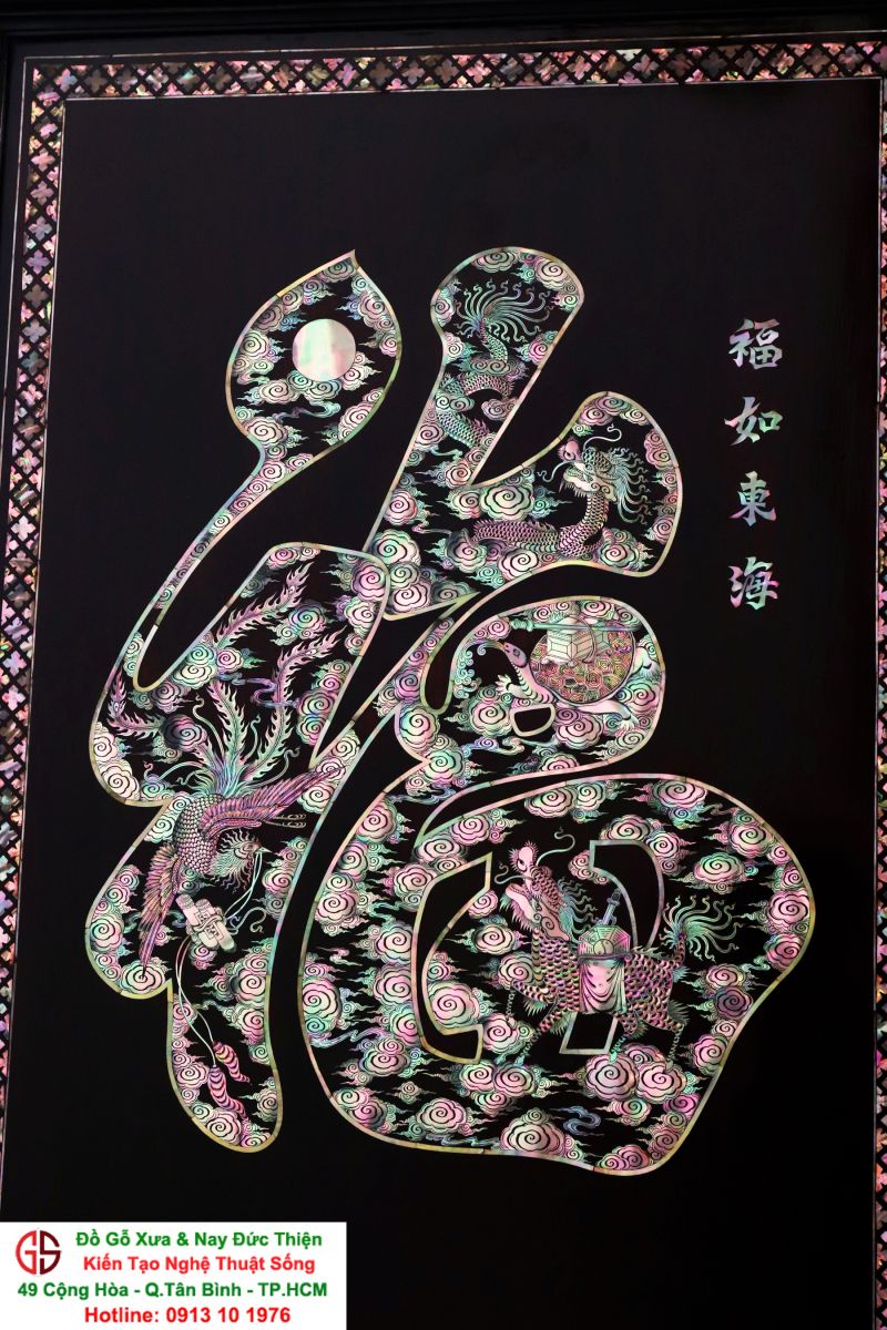 Tranh Chữ Phúc Khảm Ốc ( Tứ Linh Long - Lân - Quy -Phụng )