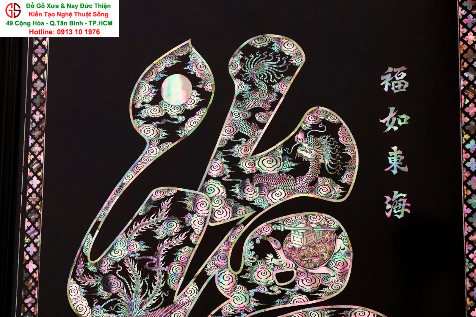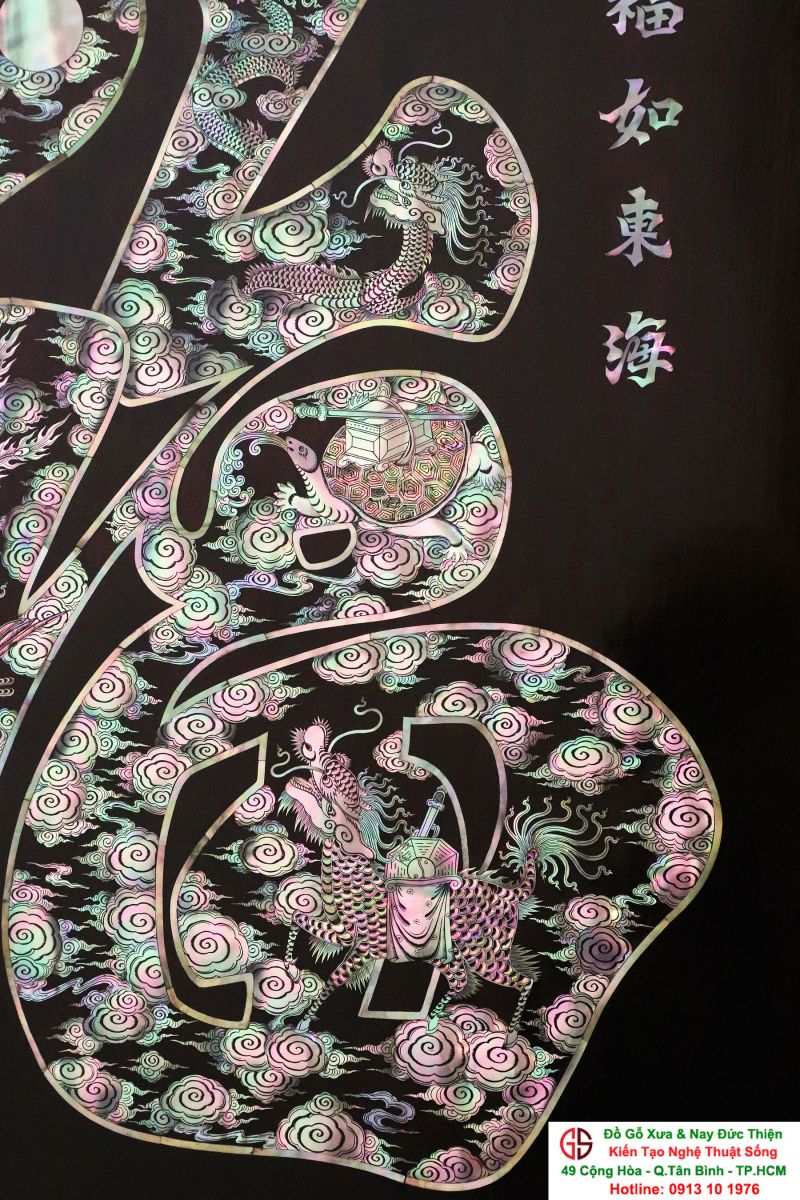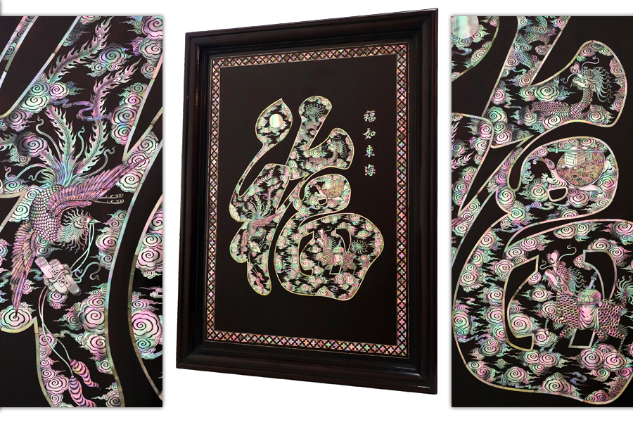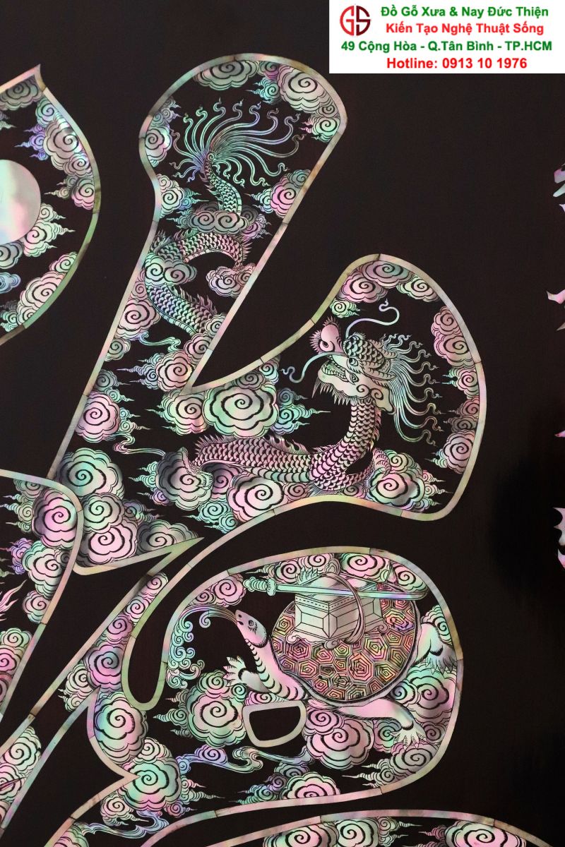 Tranh Chữ Phúc Khảm Ốc ( Tứ Linh Long - Lân - Quy -Phụng )