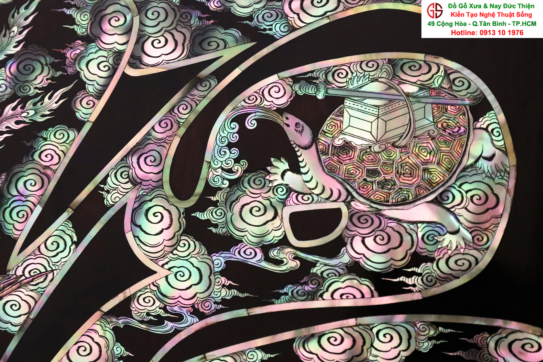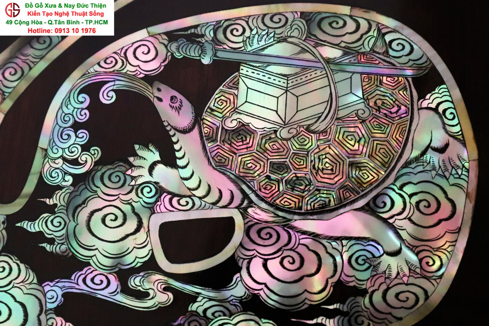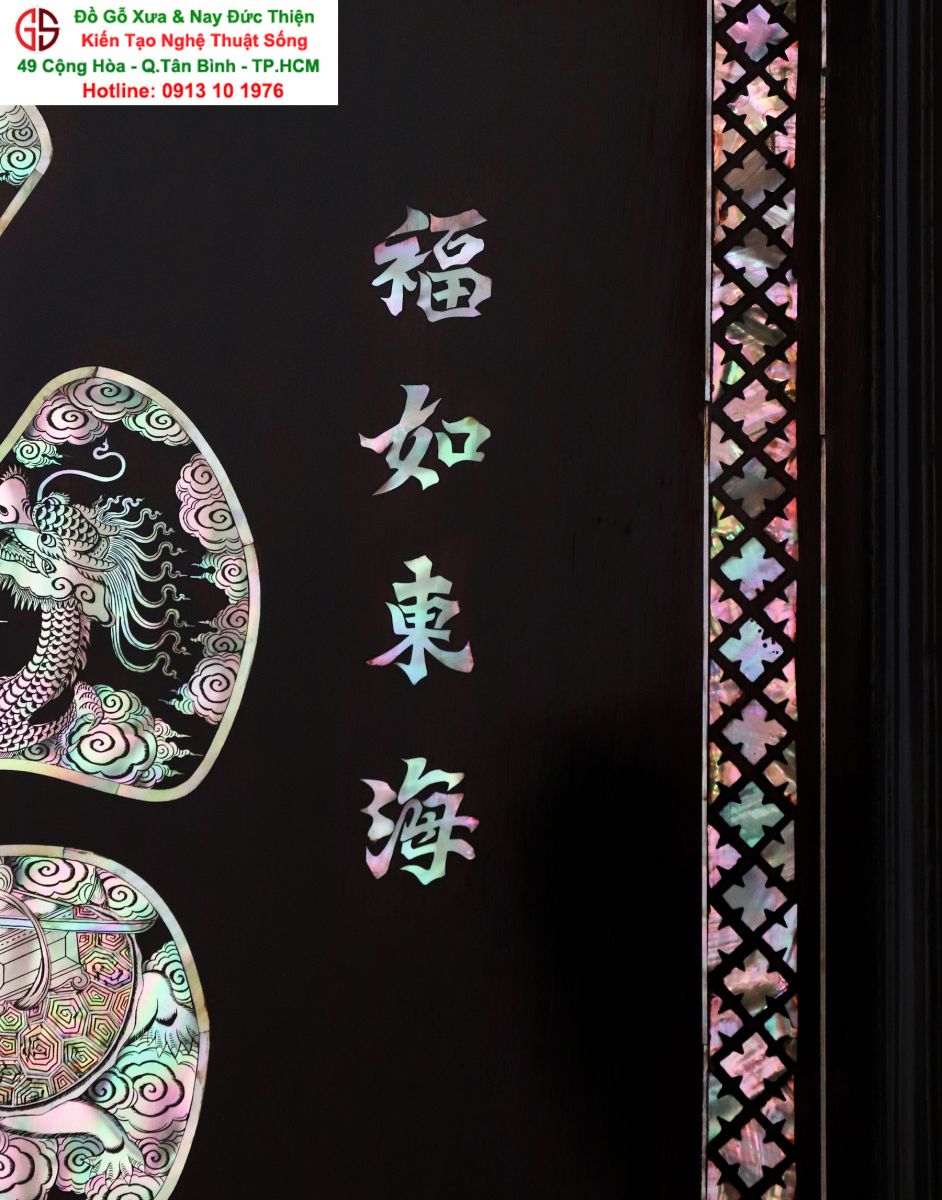 + Chất liệu: gỗ gụ mật + cẩn ốc xà cừ