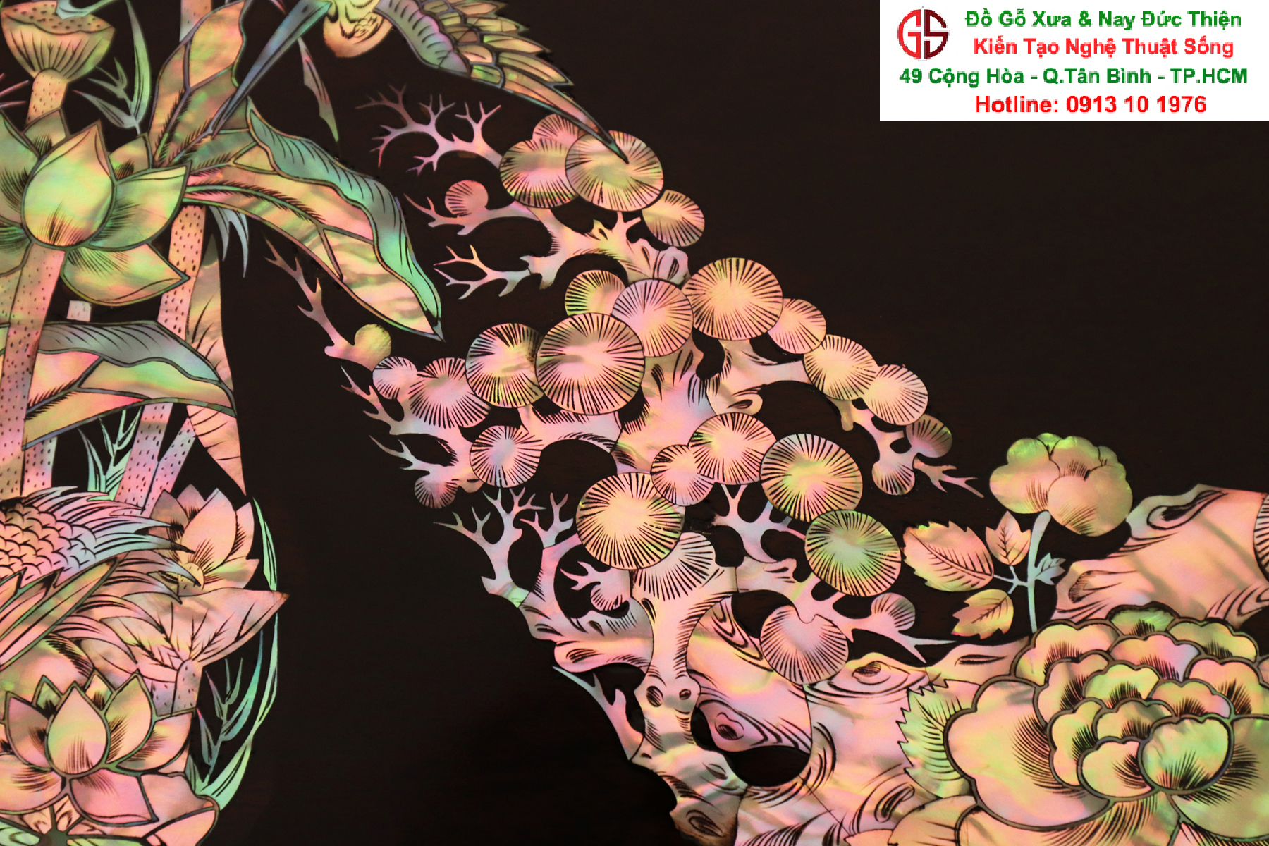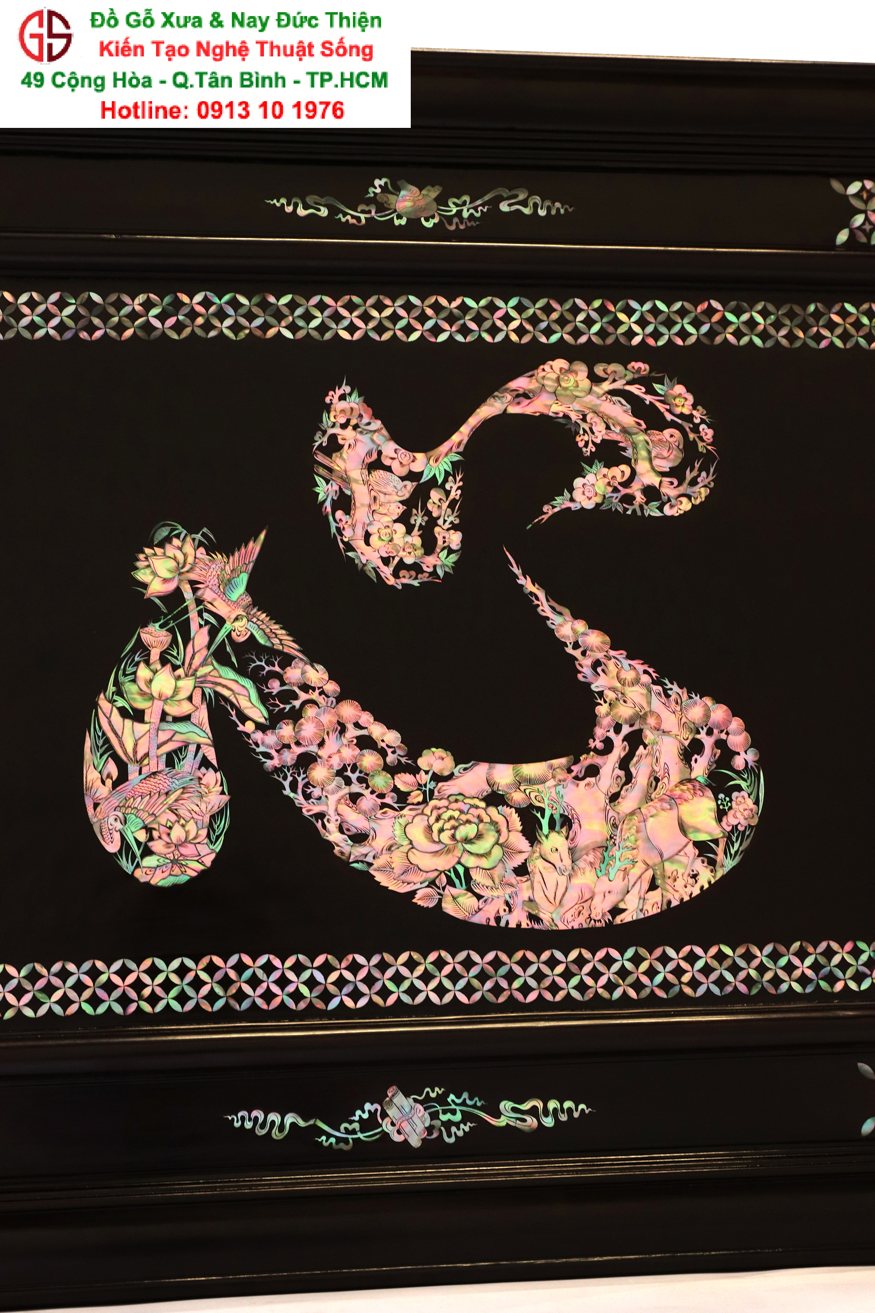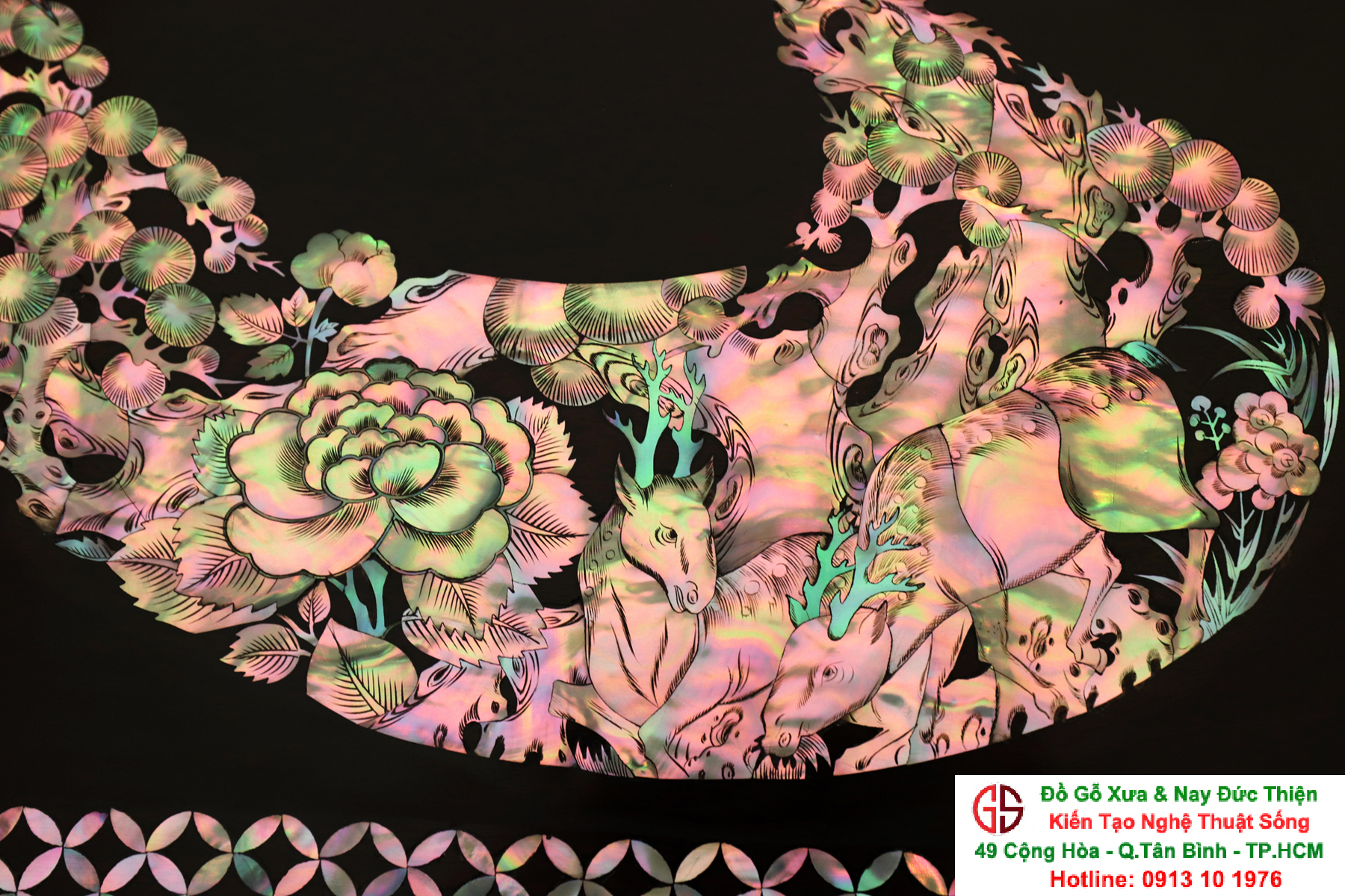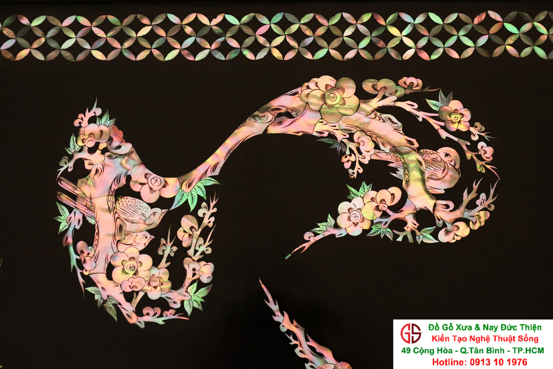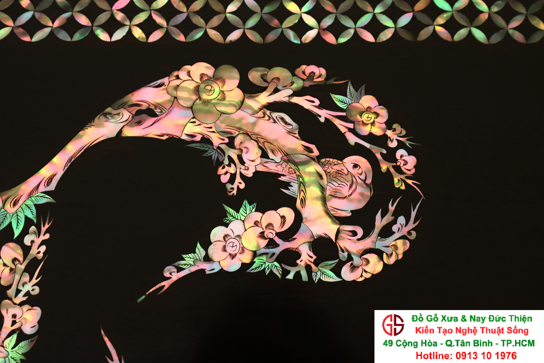 + Chất liệu: gỗ gụ mật + cẩn ốc xà cừ