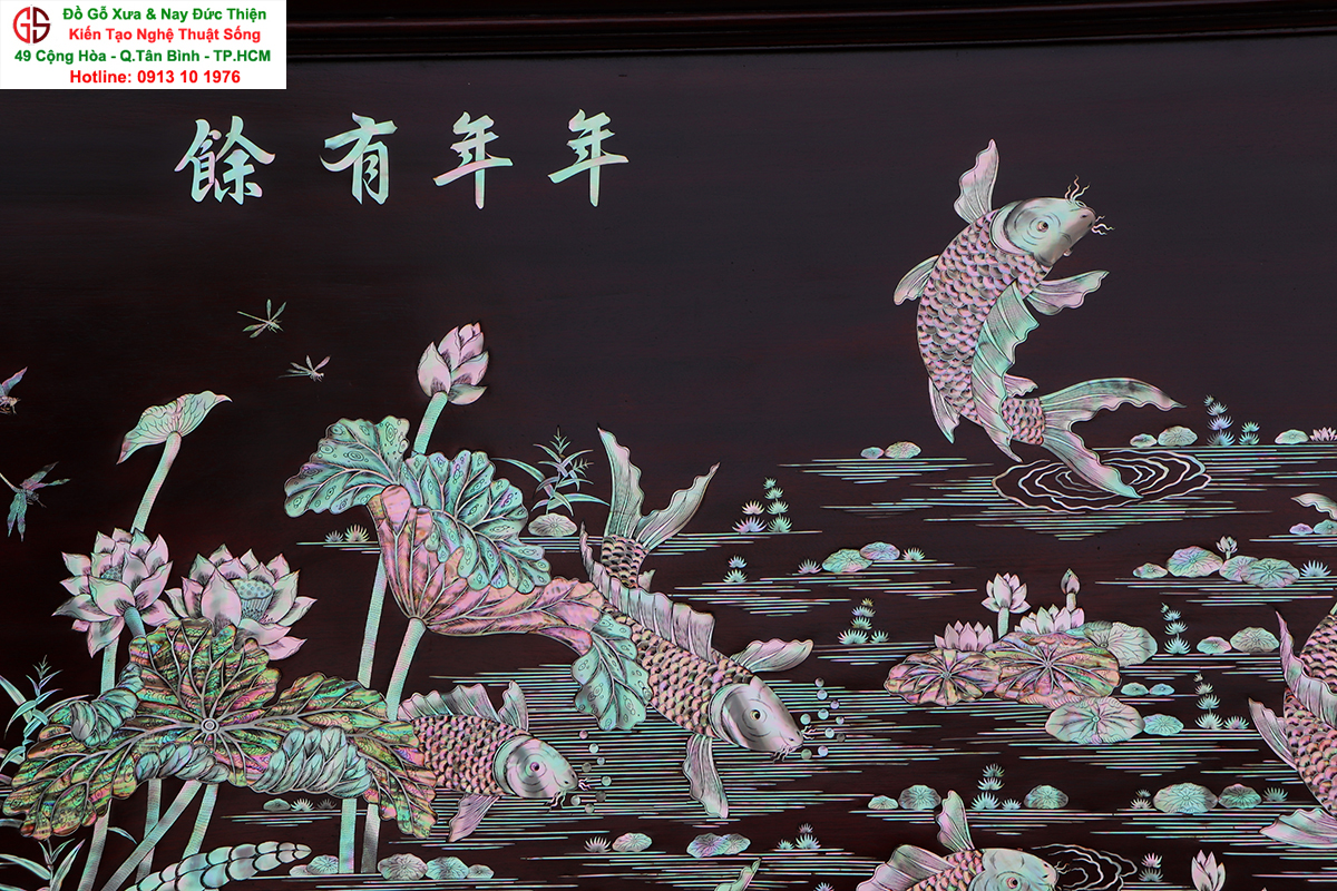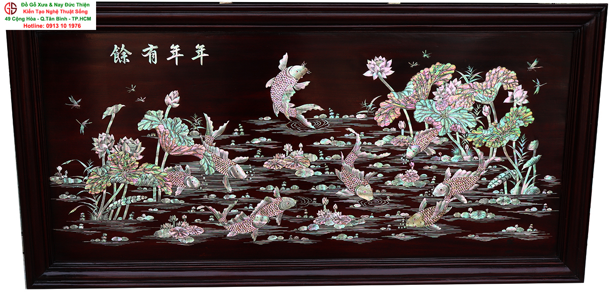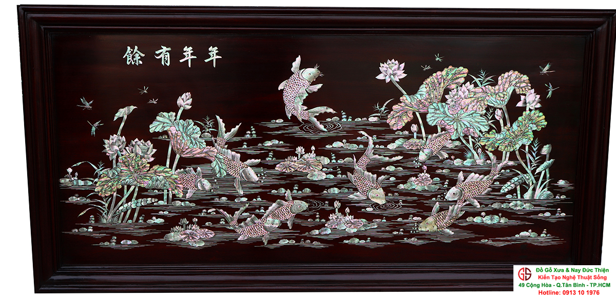 Cửu Ngư Quần Hội - Niên Niên Hữu Dư - Đời Đời No Đủ - Một tuyệt phẩm khảm ốc đẹp, một trân phẩm cho những ai yêu thích đồ khảm ốc đặc sắc. Không chỉ hình ảnh đẹp mà còn chứa đựng nhiều nội dung và ý nghĩa,