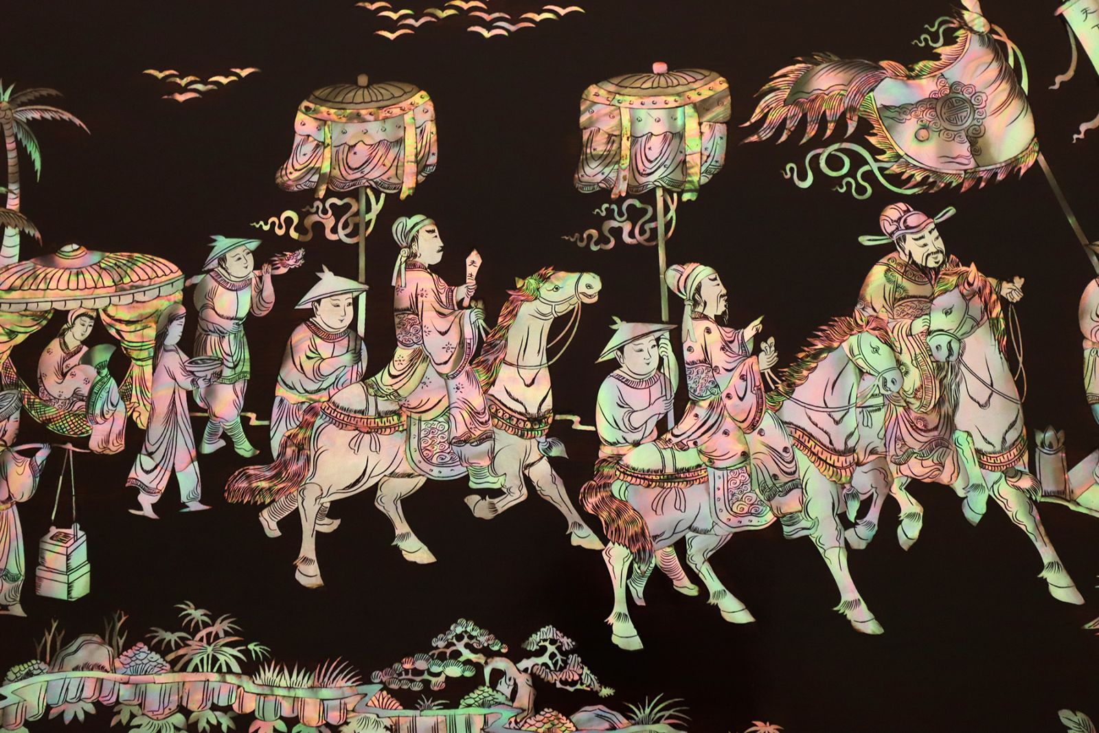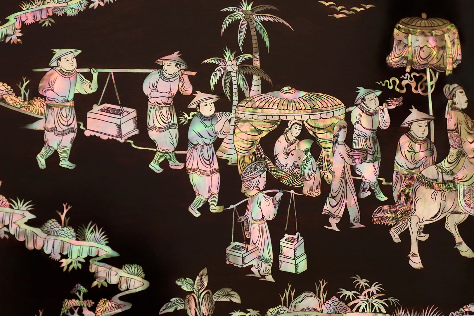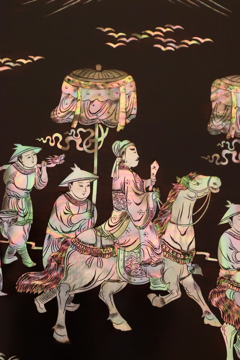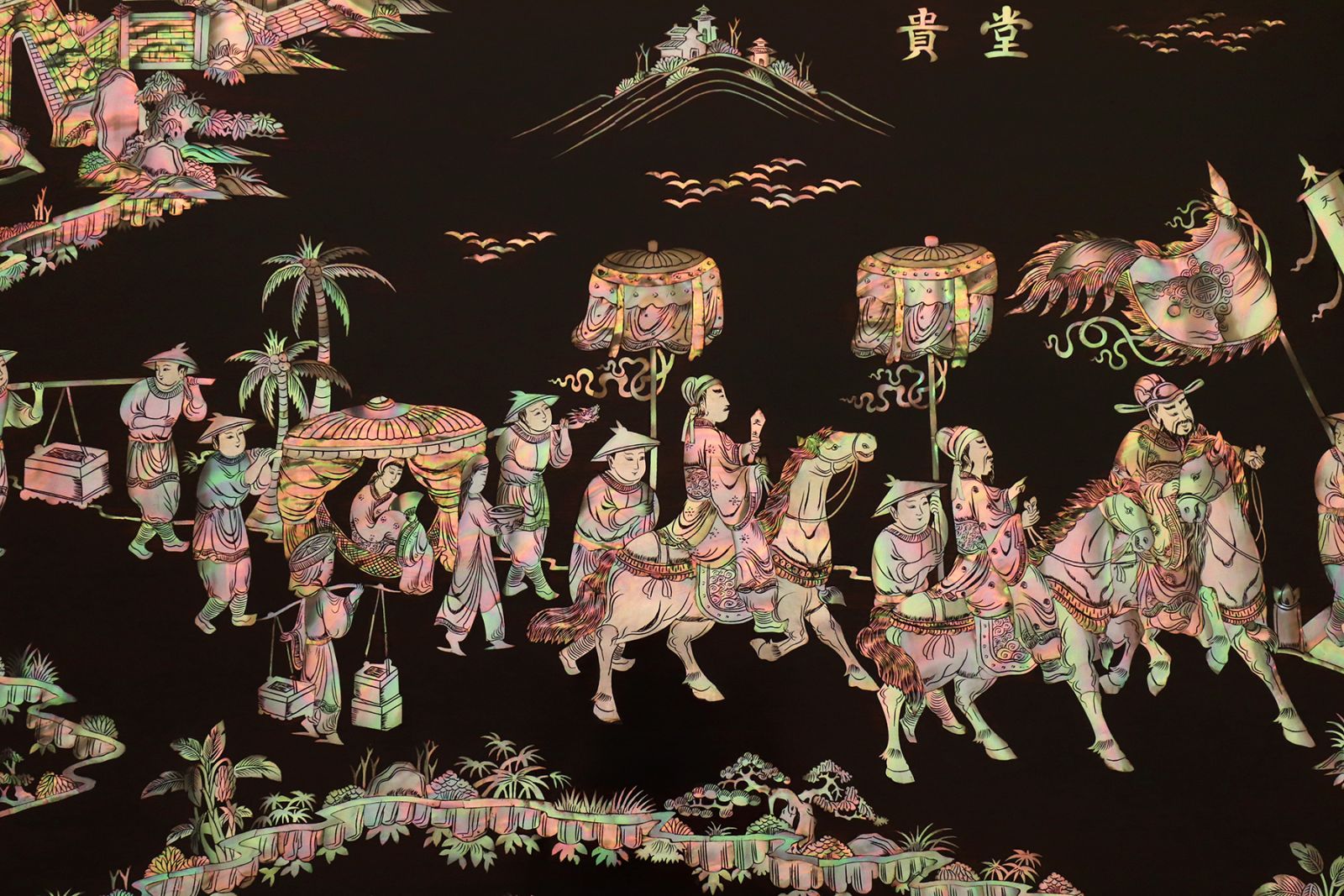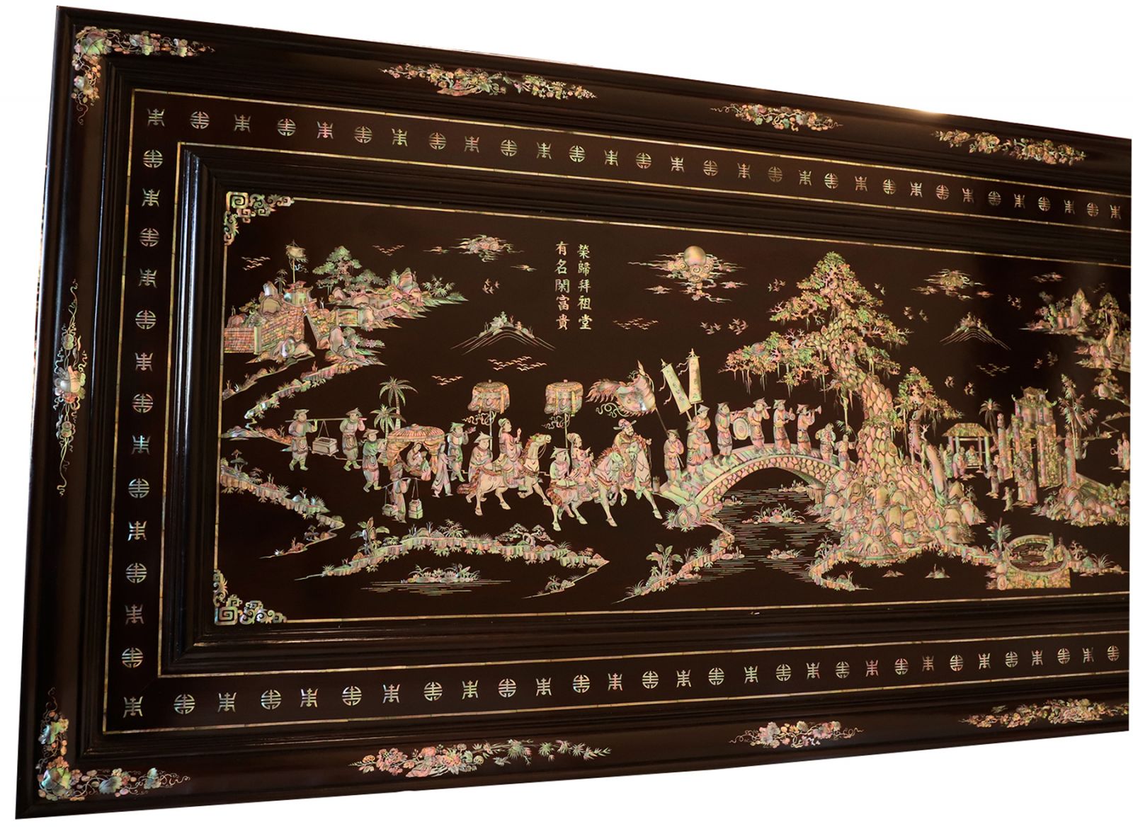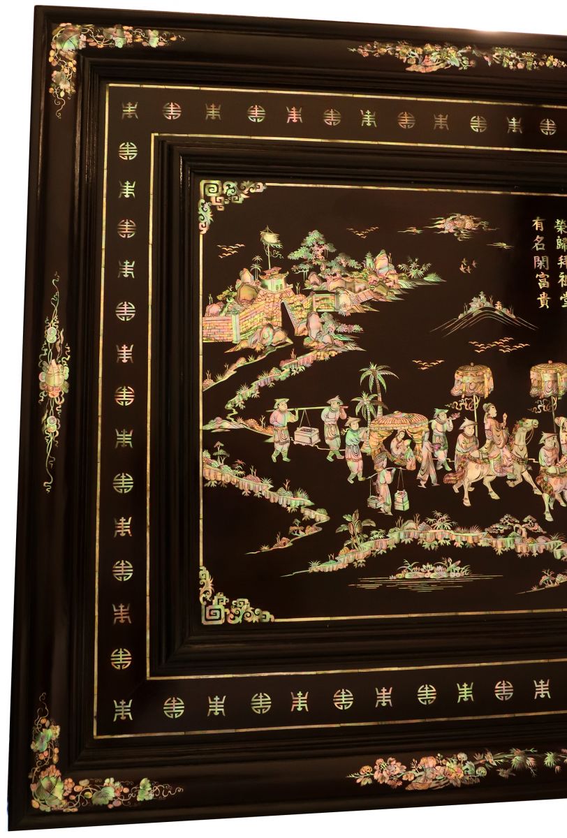 TRANH GỖ GỤ KHẢM ỐC { VINH QUY BÁI TỔ }