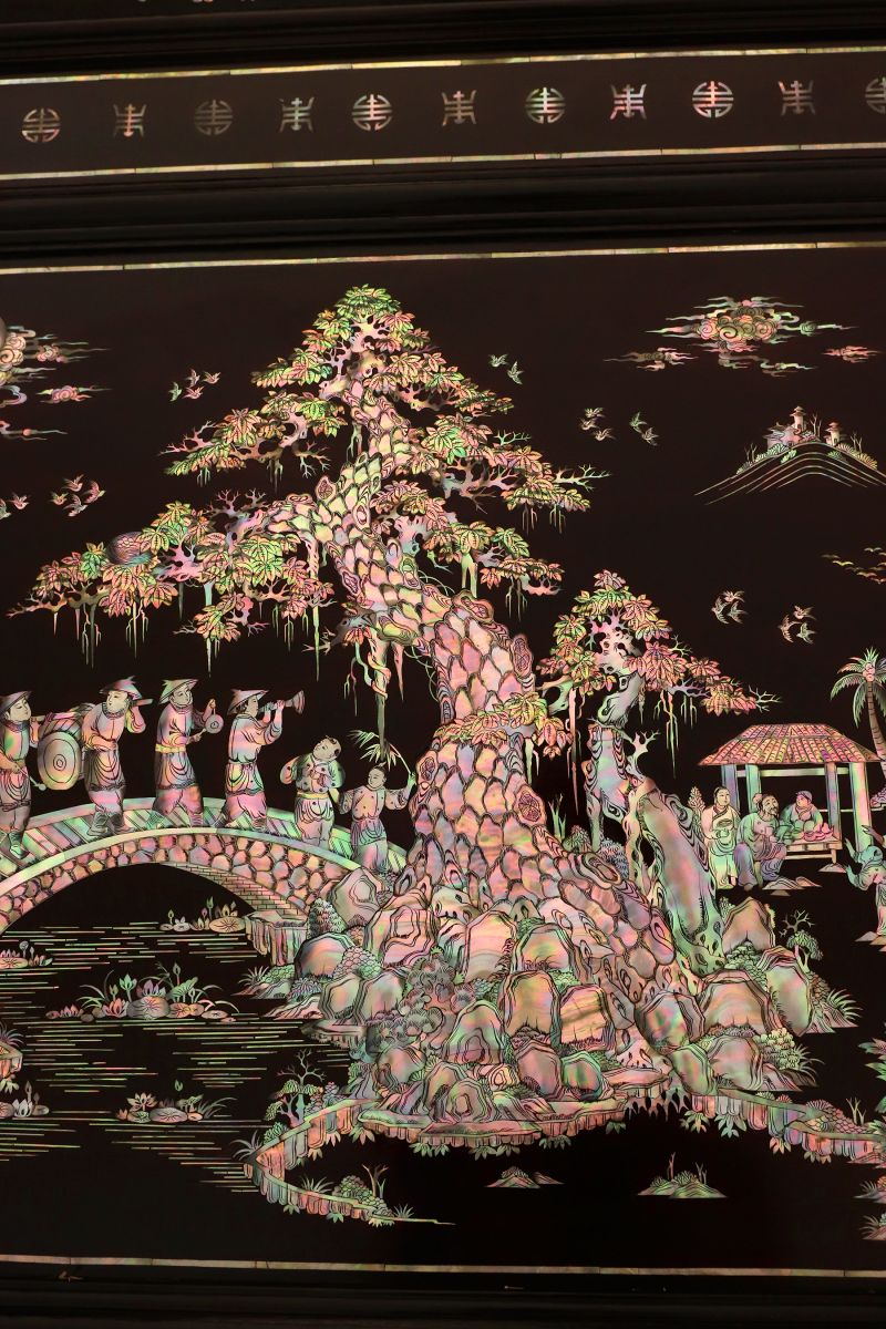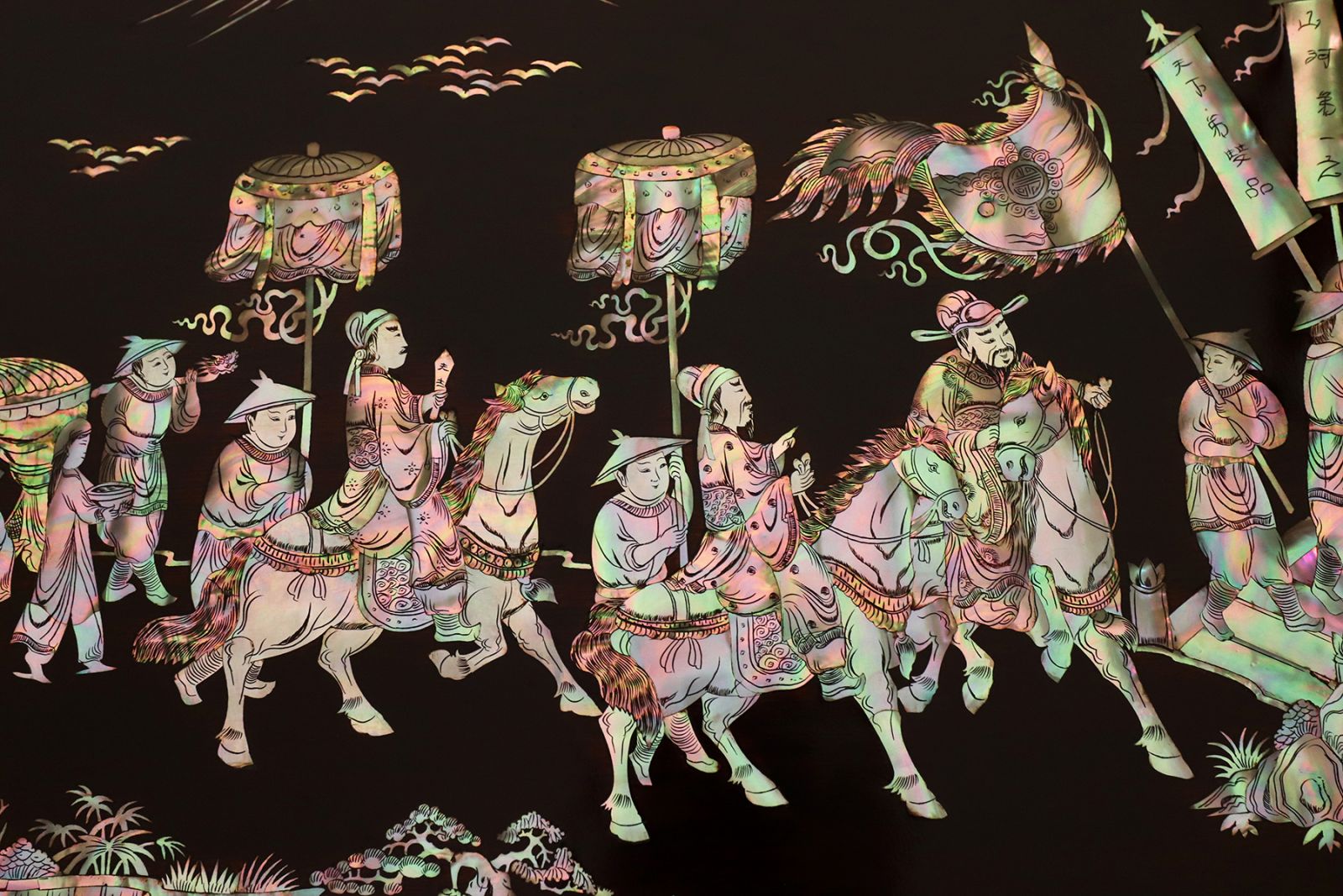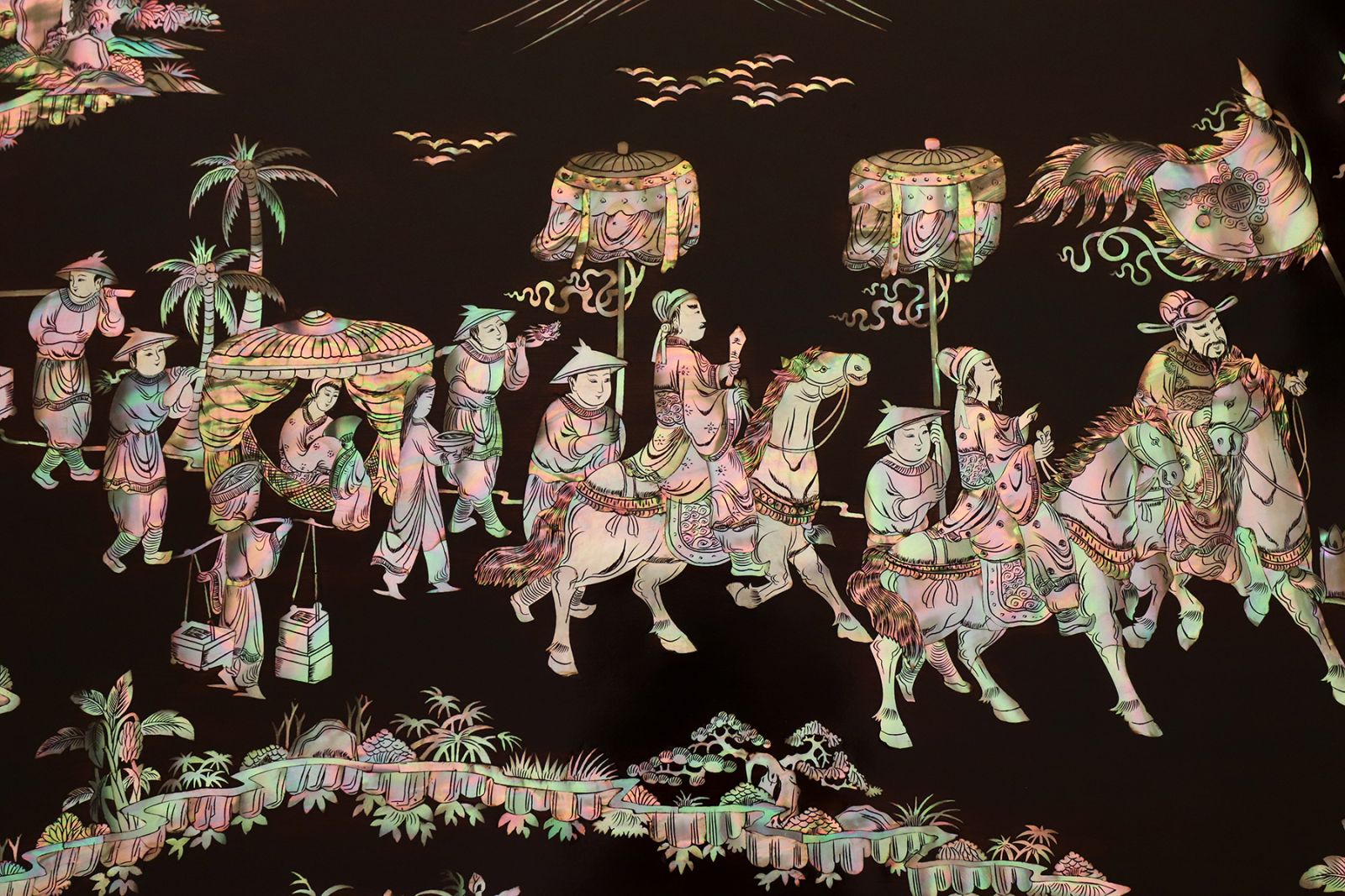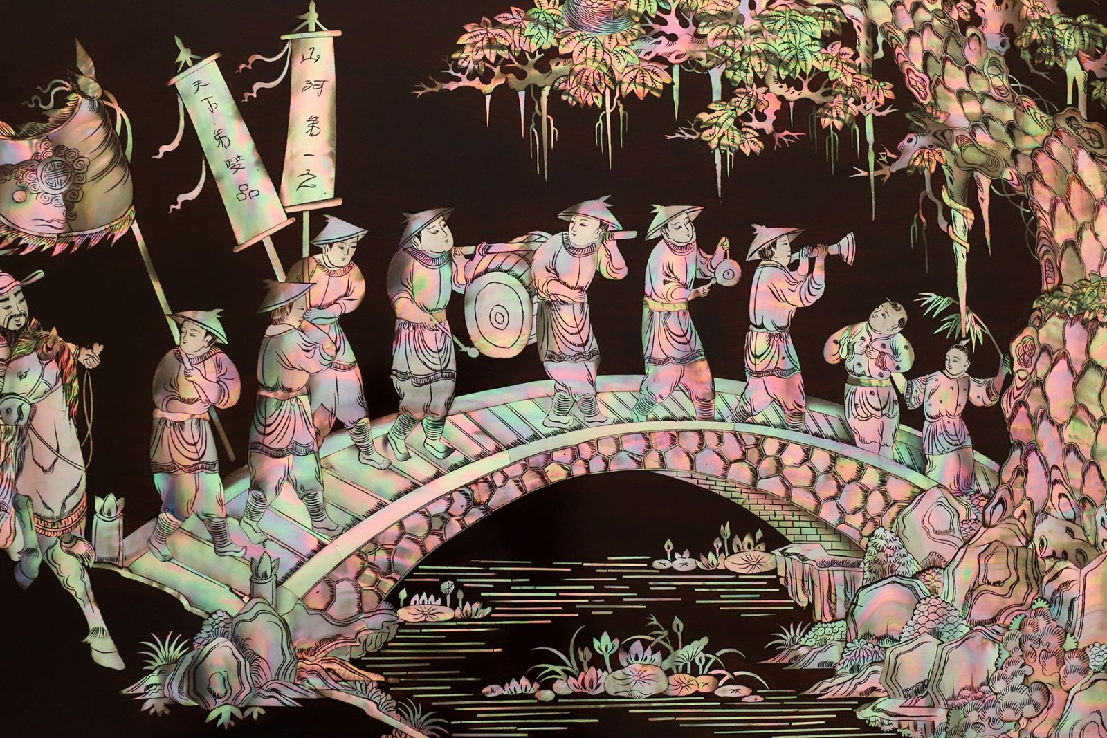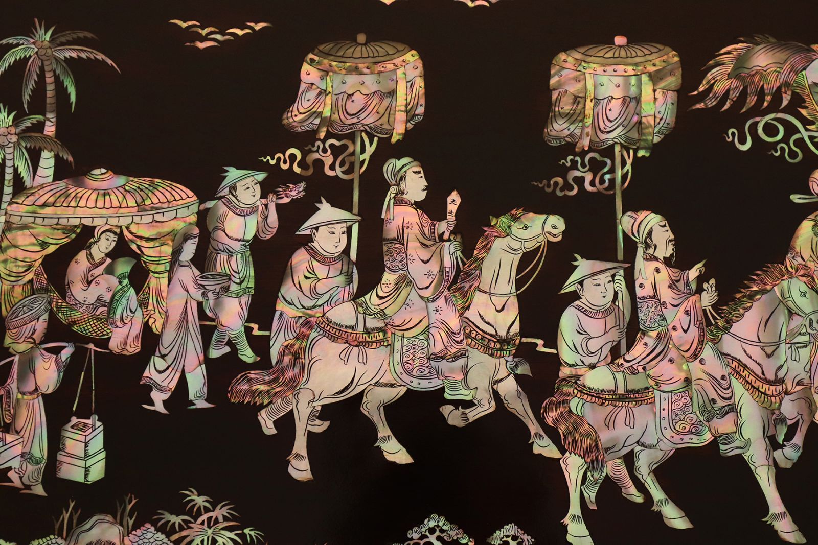 TRANH GỖ GỤ KHẢM ỐC { VINH QUY BÁI TỔ }