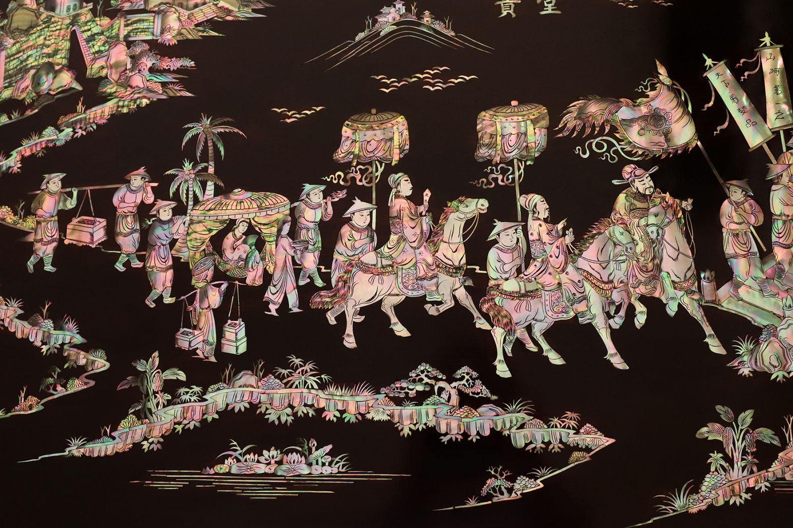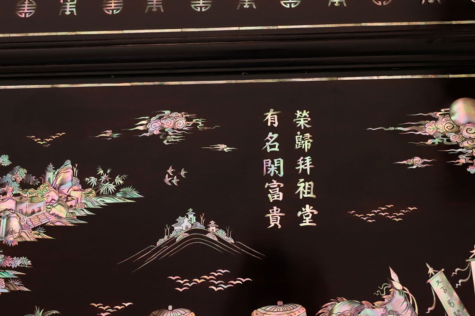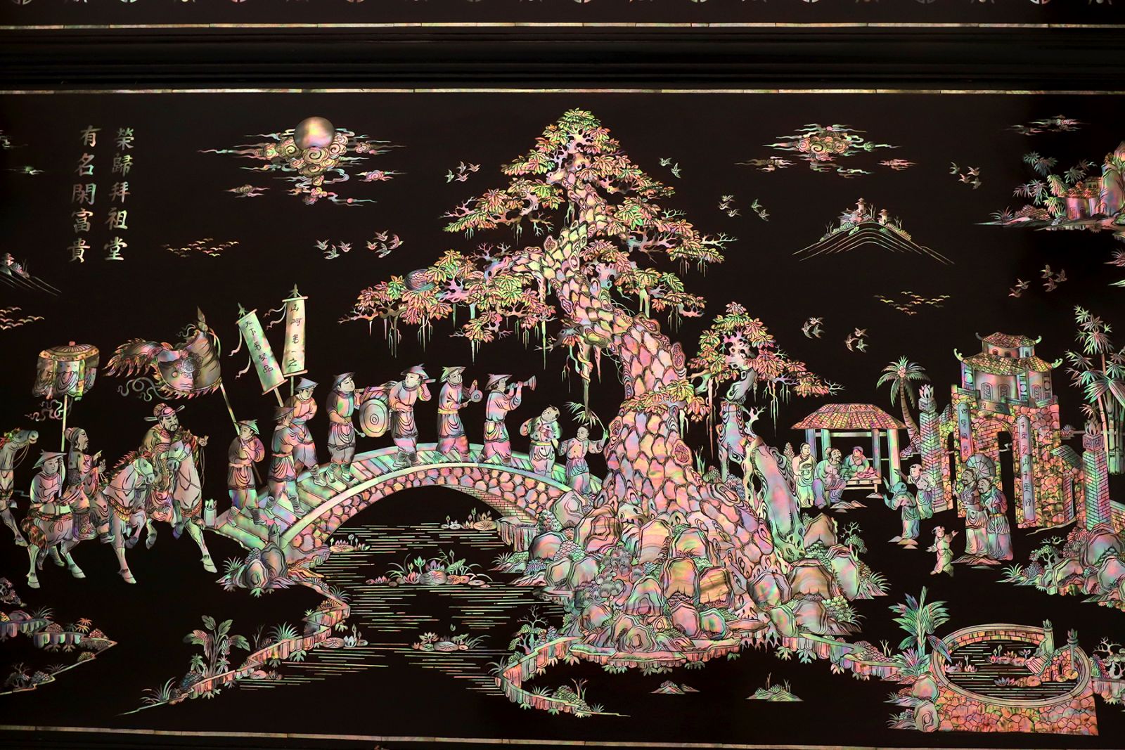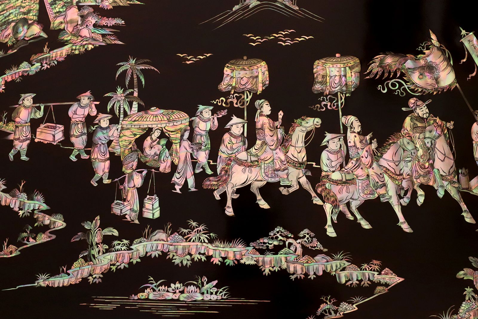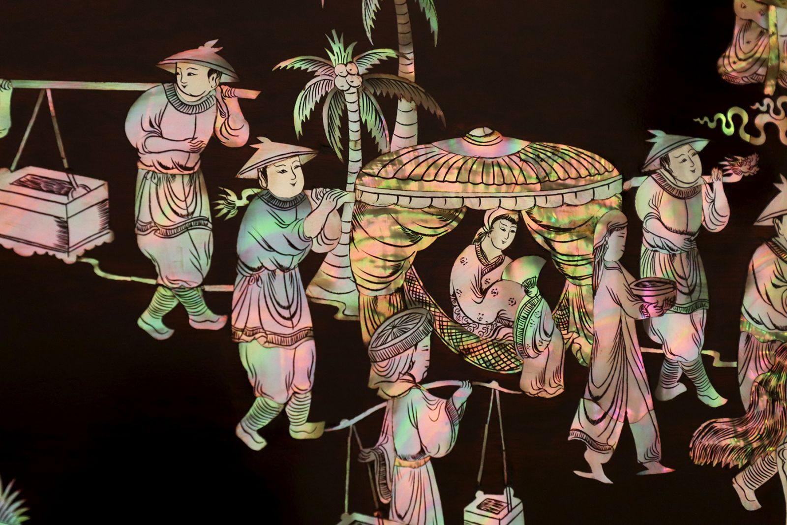 TRANH GỖ GỤ KHẢM ỐC { VINH QUY BÁI TỔ }