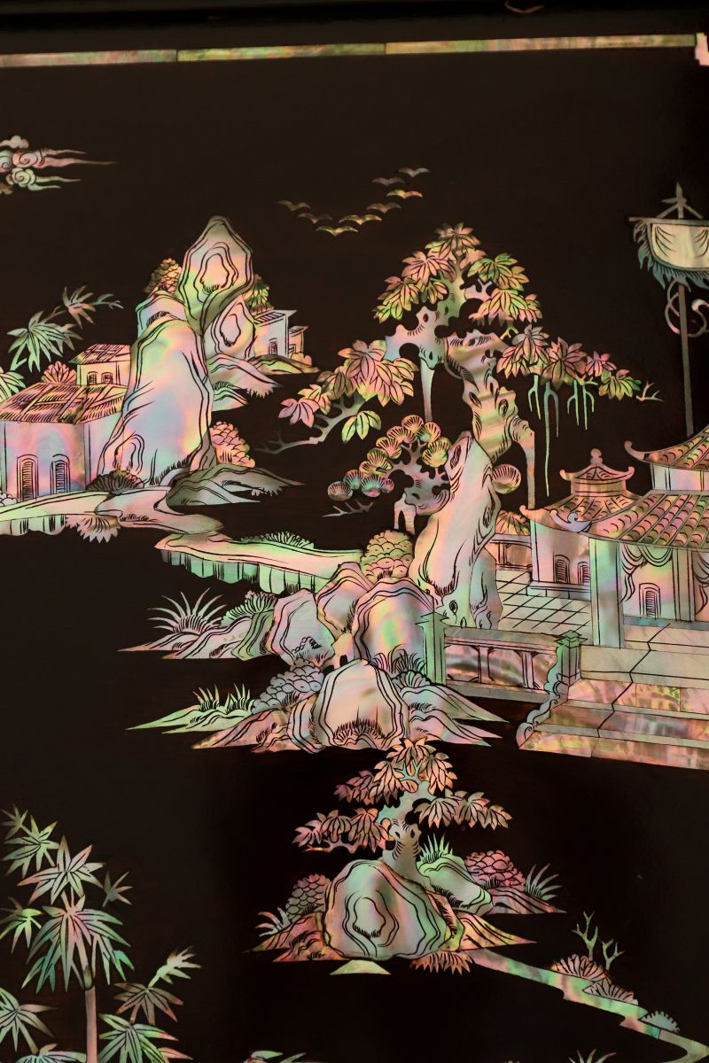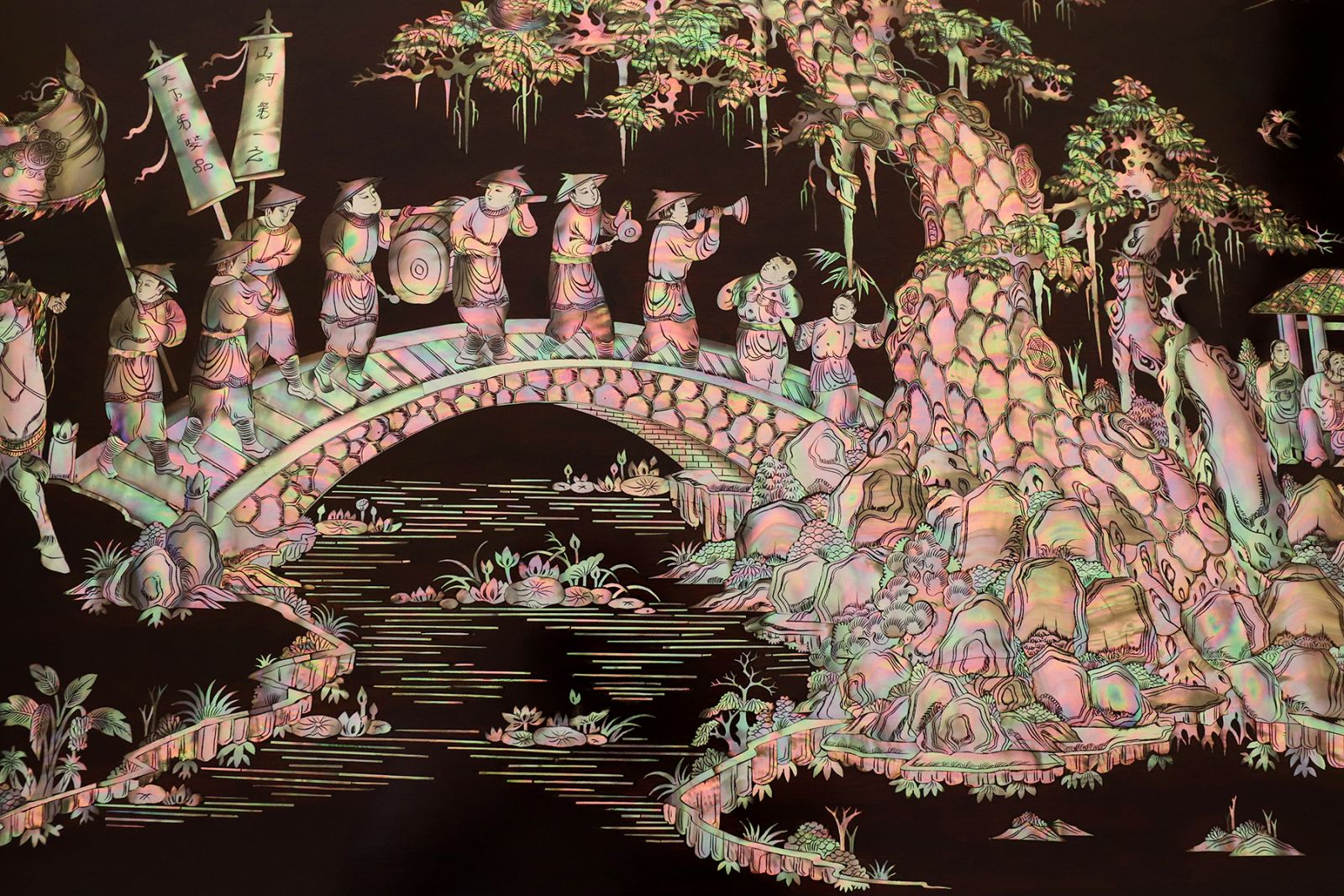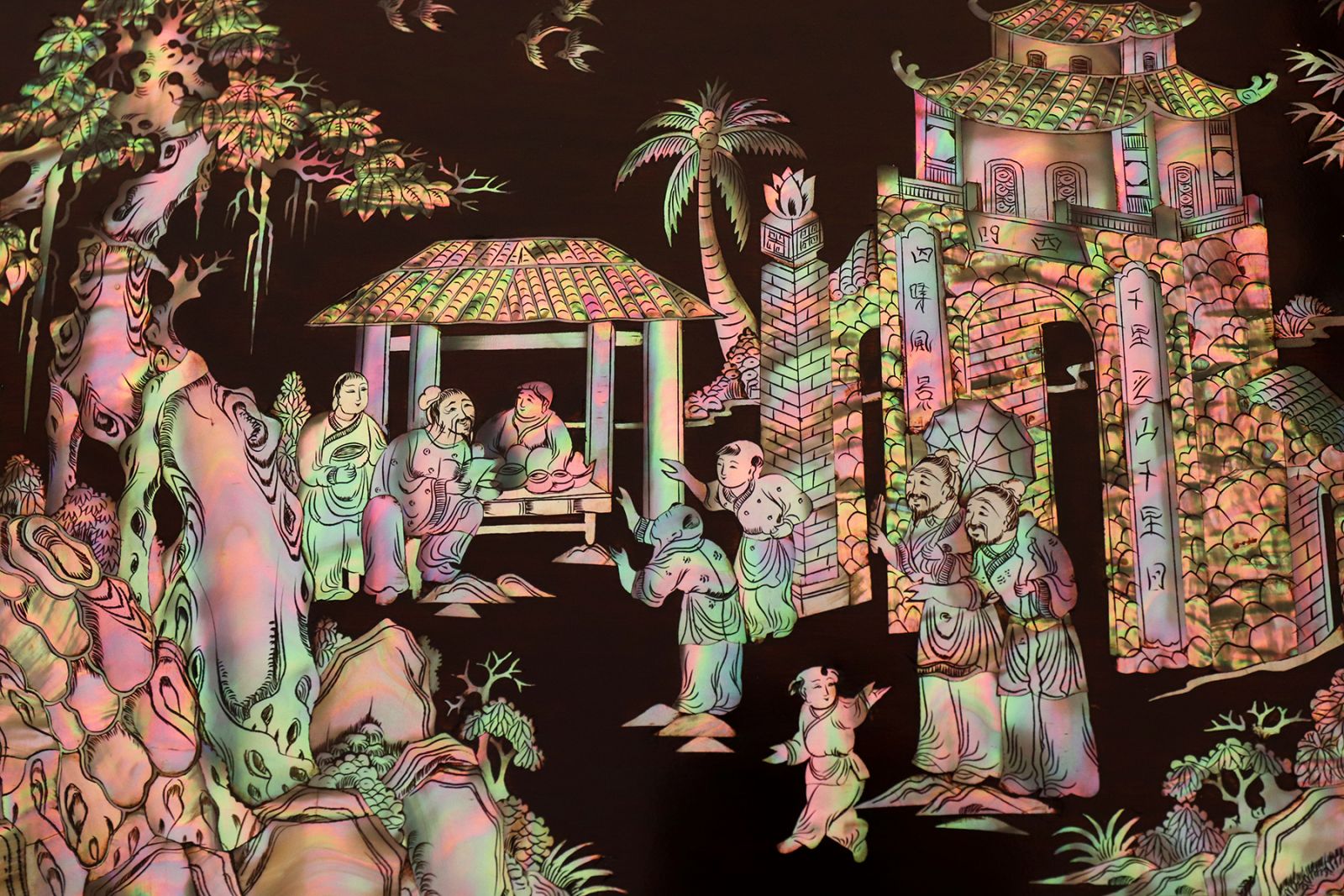 - Tranh sơn mài: tranh sơn mài sơn thủy hữu tình, tranh sơn mài của các họa sĩ nổi tiếng: Thành Lễ, Trần Hà...