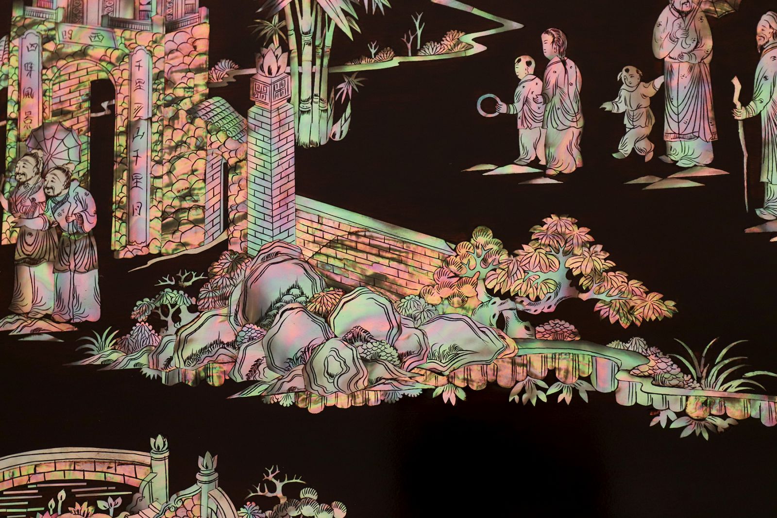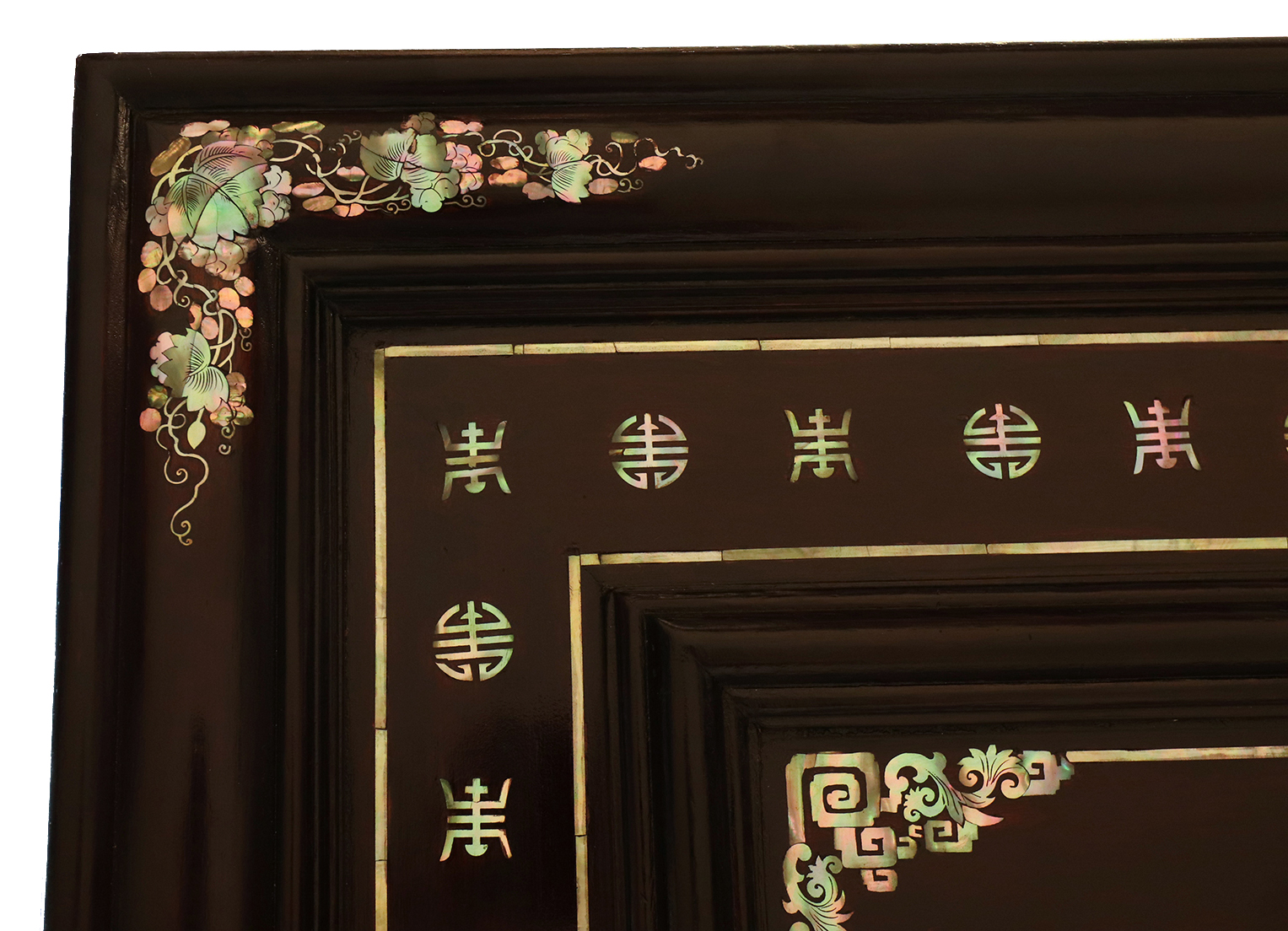 + Chất liệu: Gỗ Gụ + Khảm Ốc xà cừ