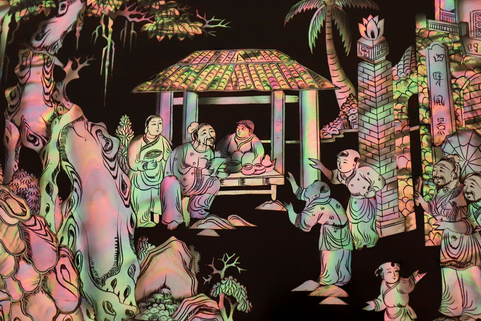 - Tranh cẩn ốc xà cừ: tranh tứ quý cẩn ốc, tranh vinh quy bái tổ, tranh phượng hồng, tranh tứ bình cẩn ốc, tranh tùng cúc trúc mai, tranh cổ đồ.