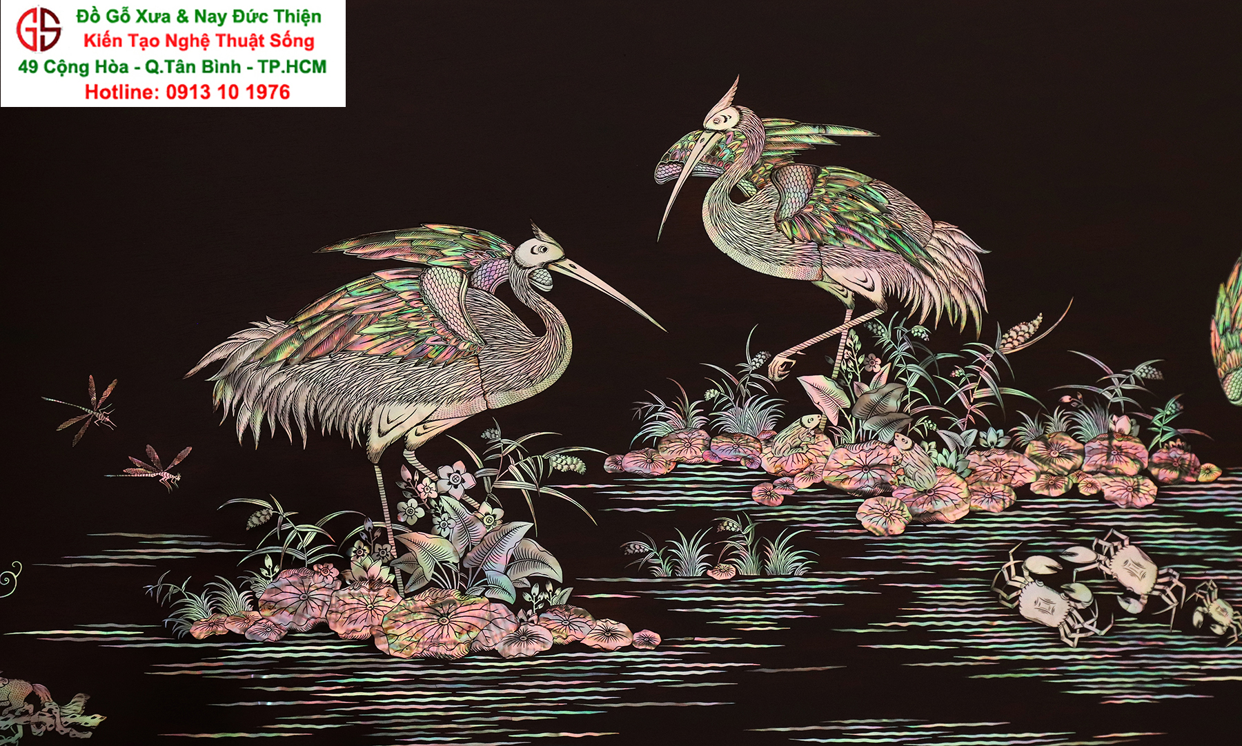 tranh tùng hạc khảm ốc đẹp tại Sài Gòn,nơi mua bán tranh khảm ốc đẹp tại quận Tân Bình