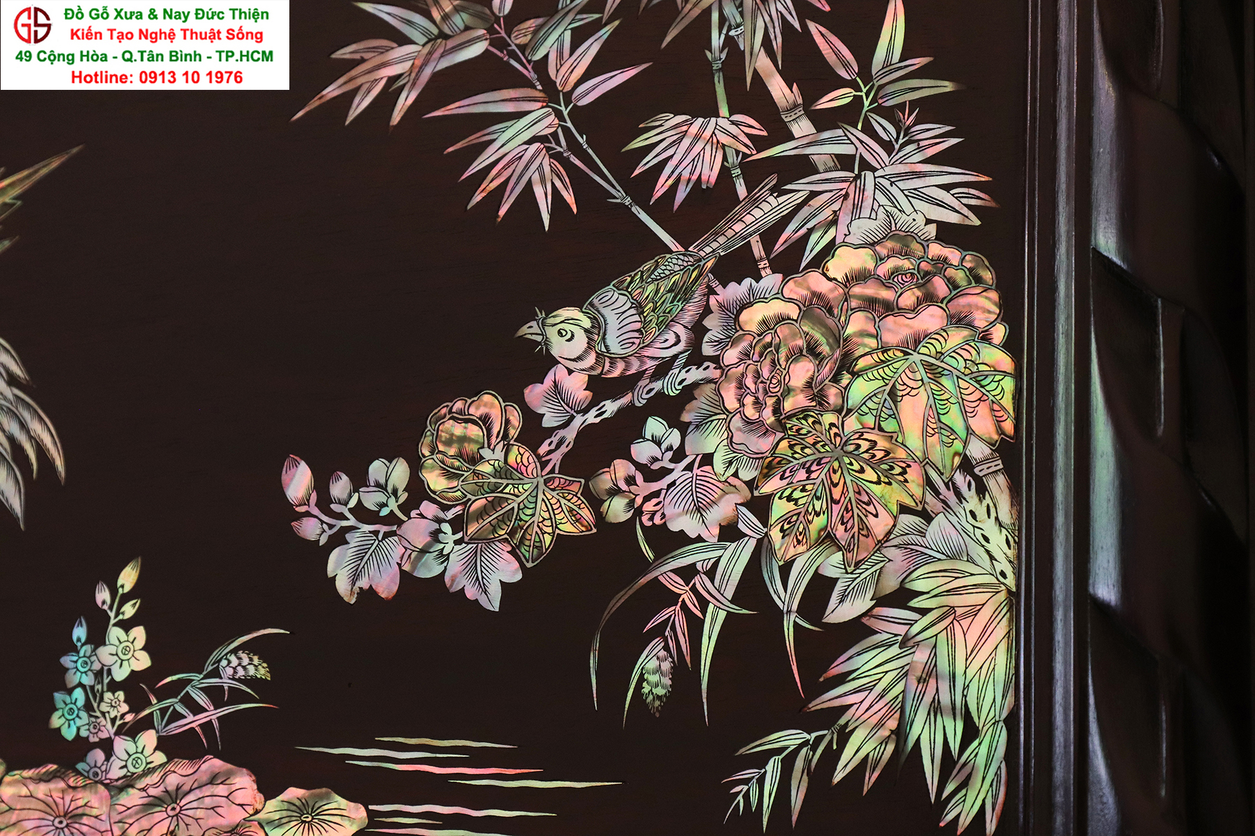 + Chất liệu: gỗ Gụ mật + cẩn ốc xà cừ
