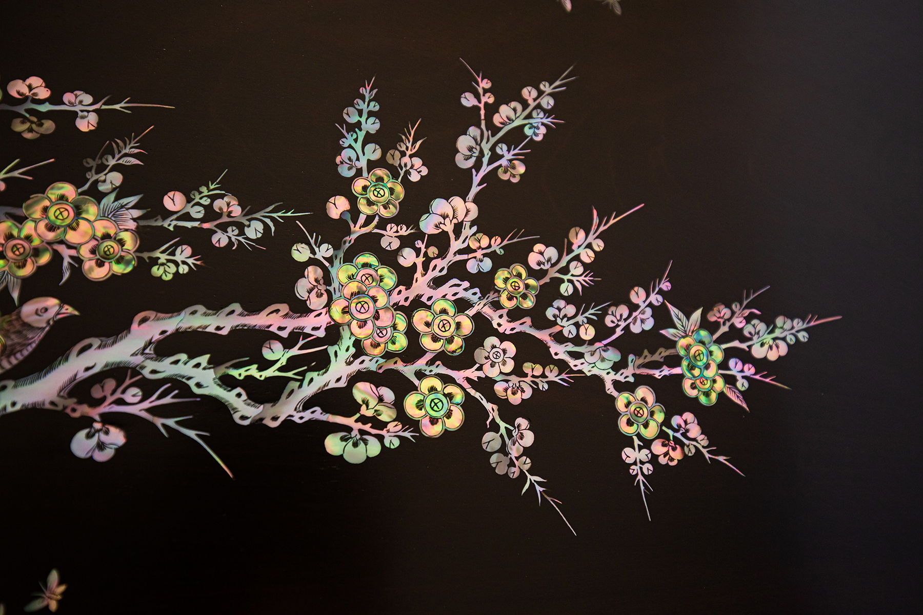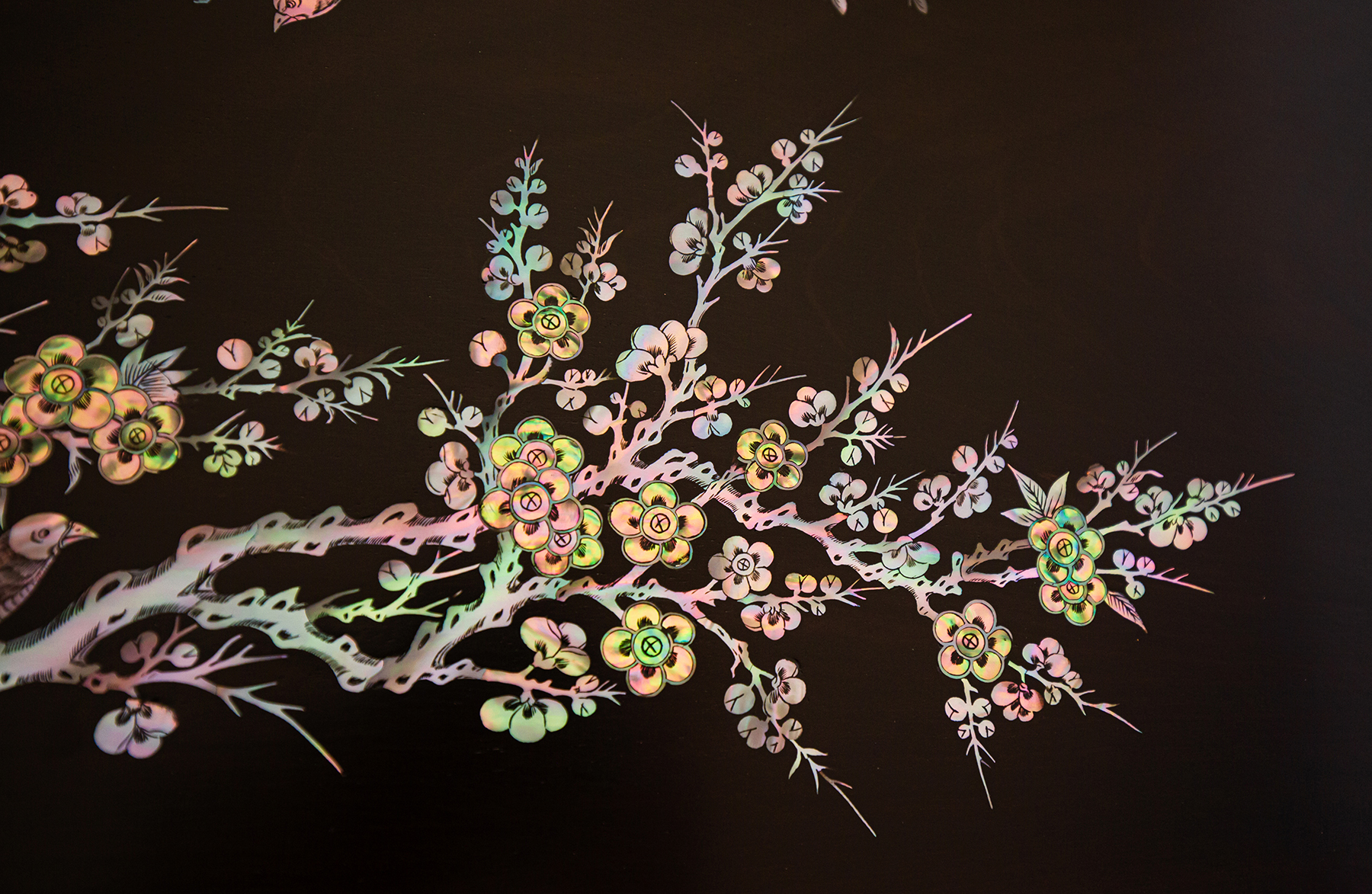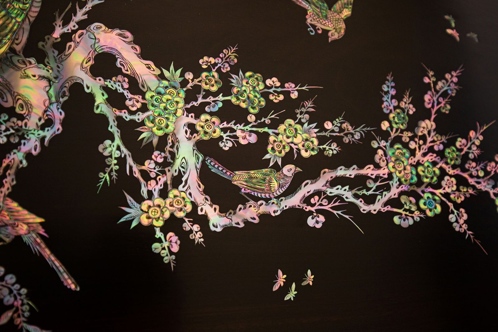 + Chất liệu: Gỗ Gụ + Khảm Ốc xà cừ