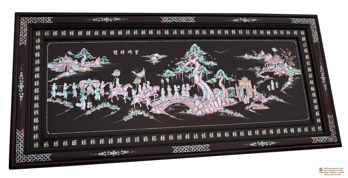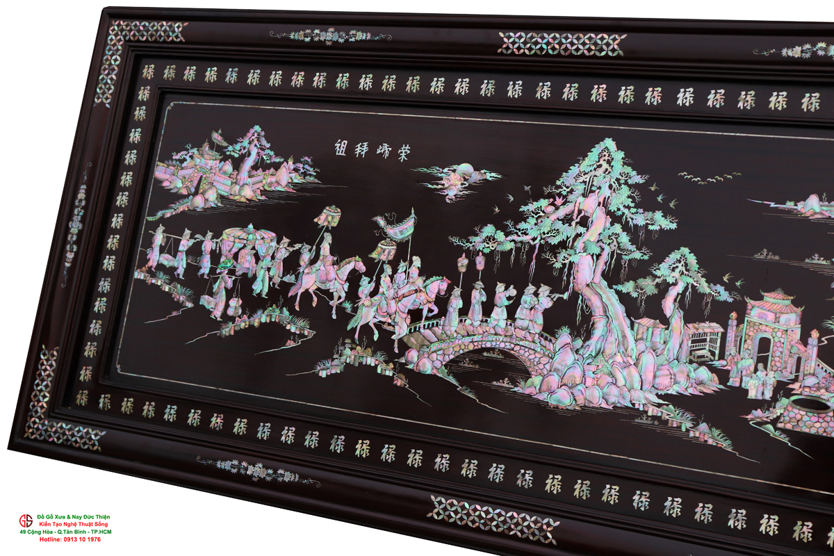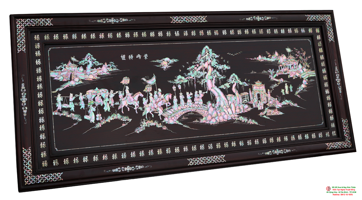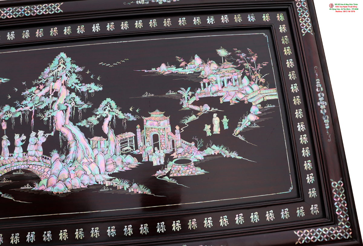 Chất liệu tranh : Gỗ gụ cẩn ốc xà cừ