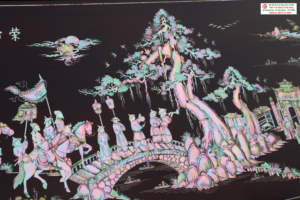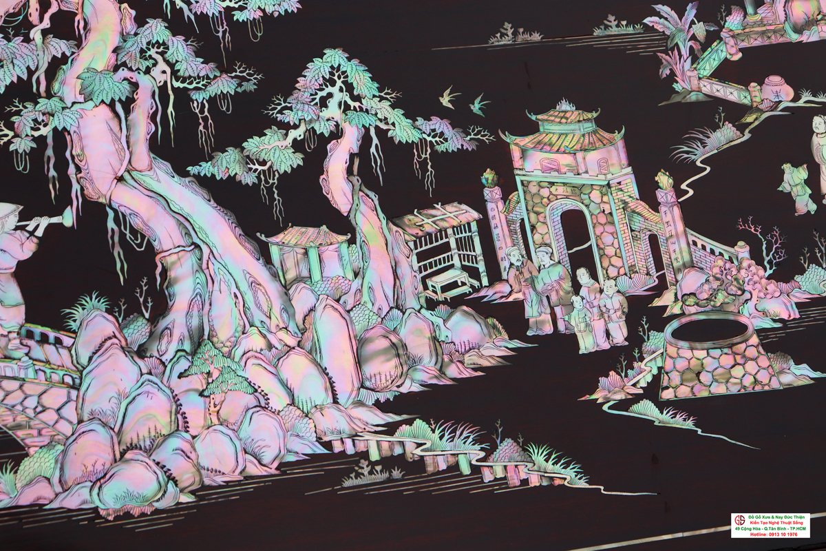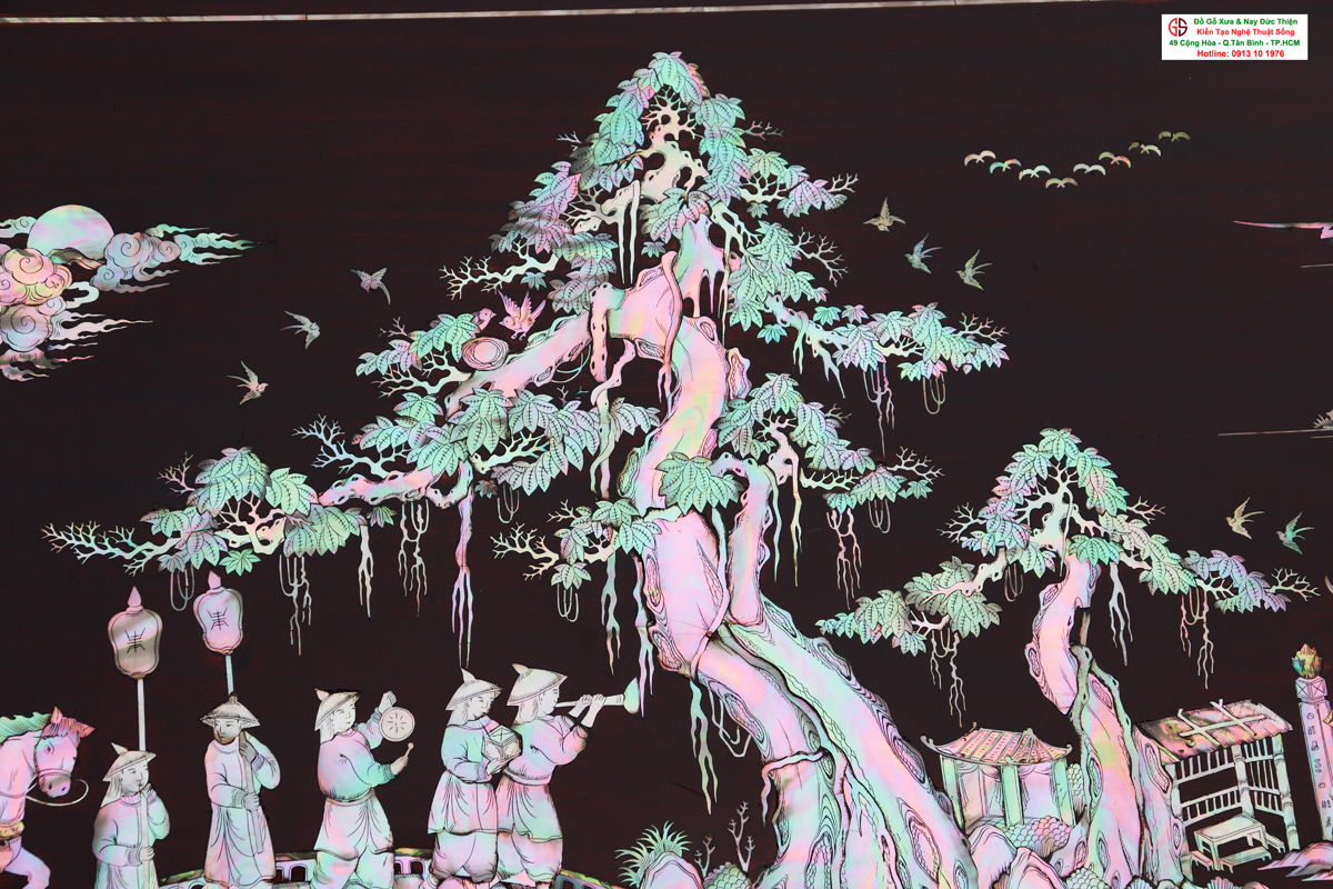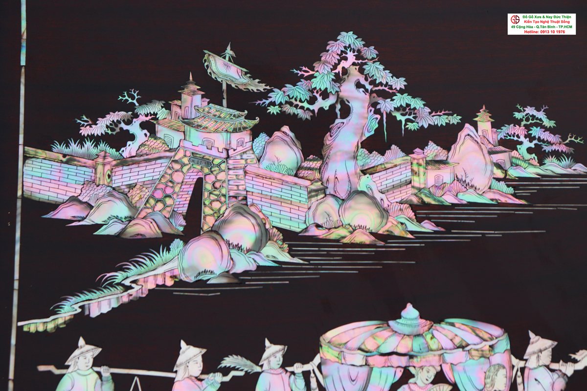 Là một bức tranh cẩn ốc rất đẹp và có giá trị, từ đục chạm chất ốc, chất mộc đều thuộc hàng đẳng cấp, xứng đáng là món đồ chân quý.