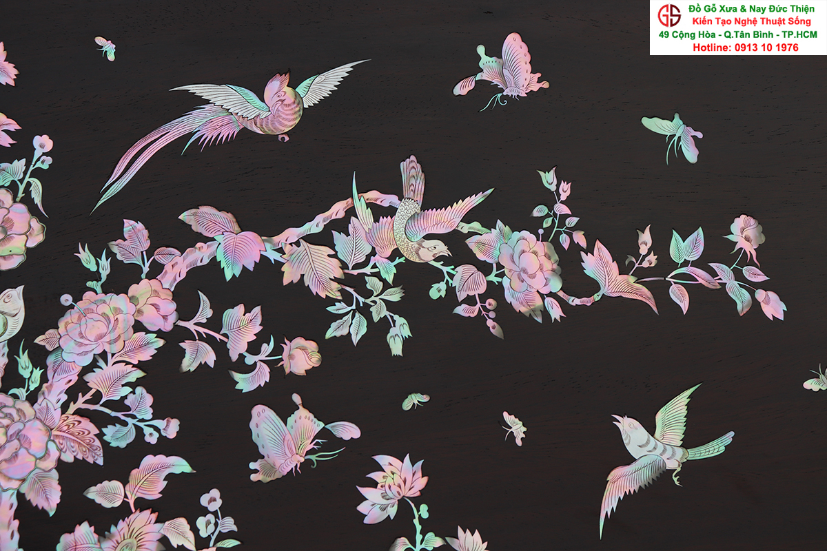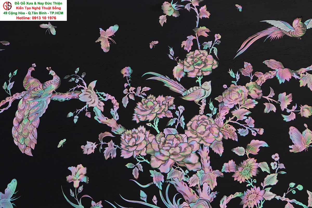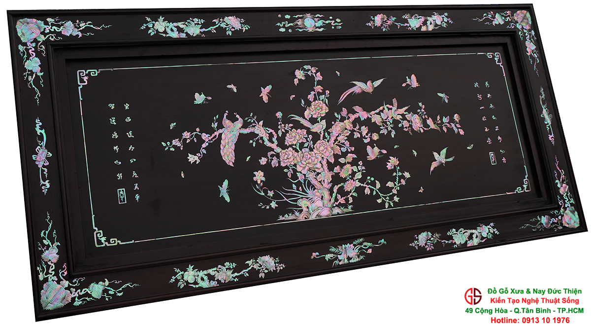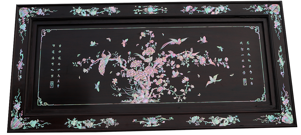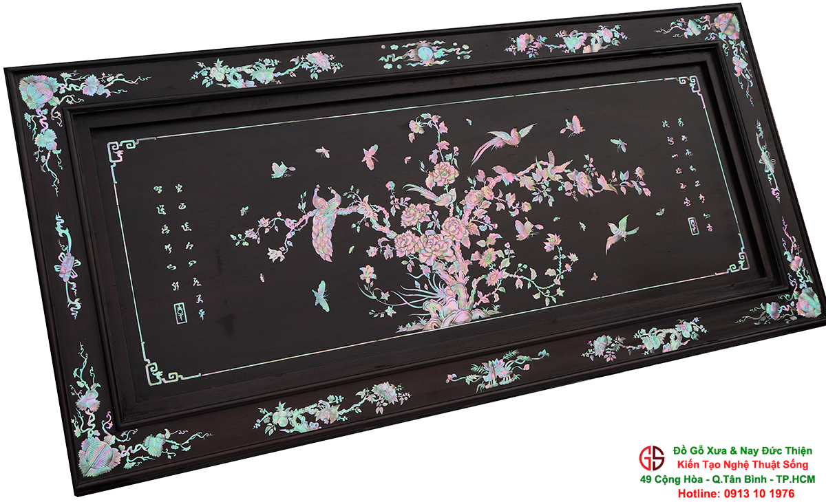 Chất liệu tranh: tranh được hoàn thiện trên chất liệu gỗ gụ màu đẹp và rất chắc. Ốc xà cừ khảm trên bức tranh được hoàn thiện kỹ bởi bàn tay nghệ nhân lâu năm.