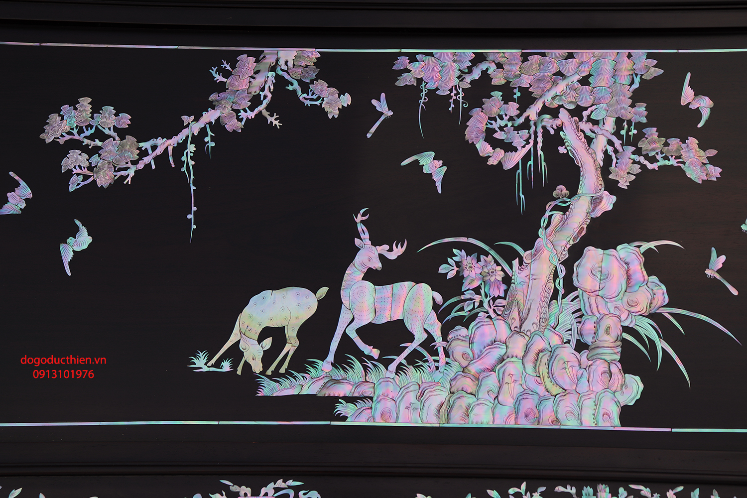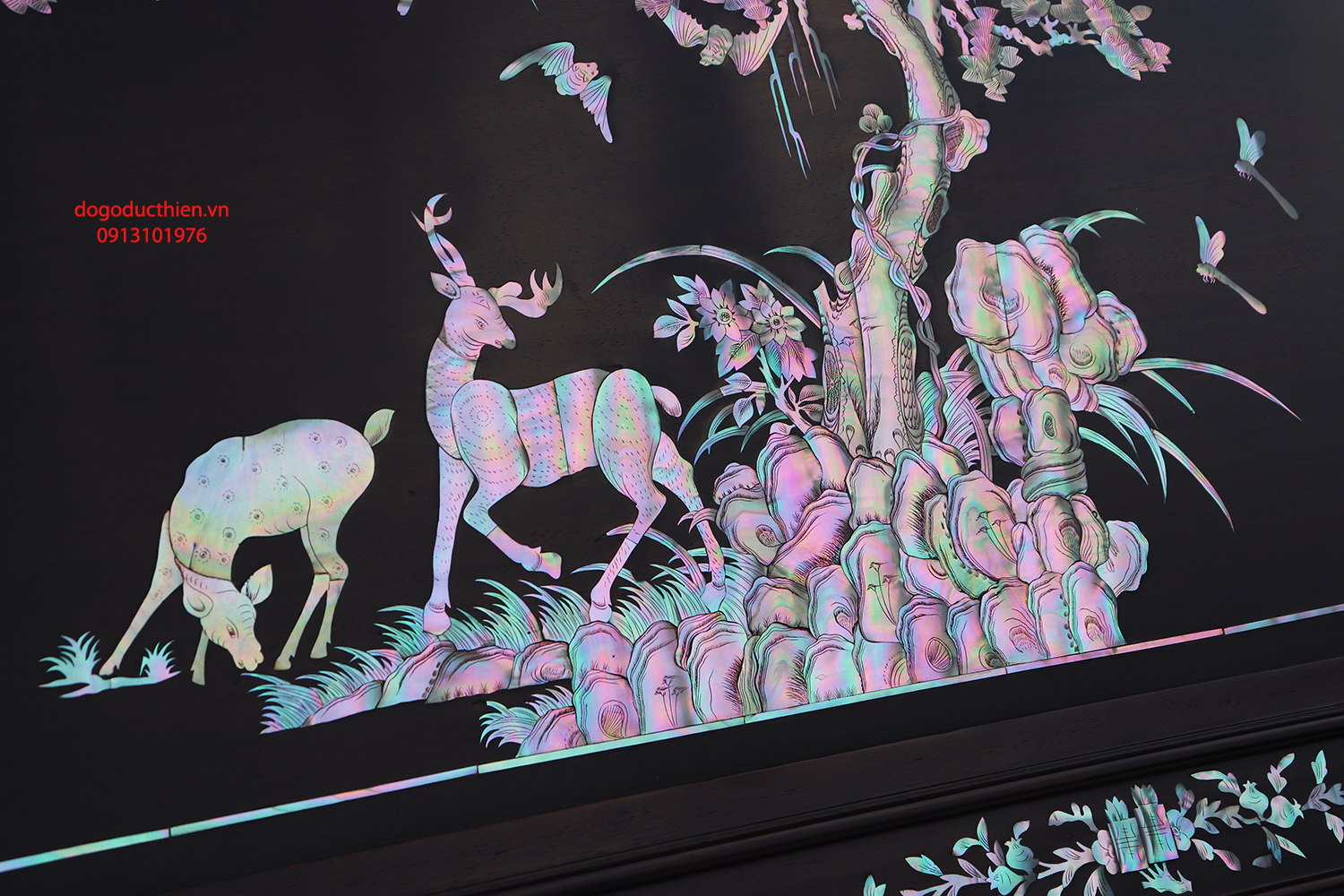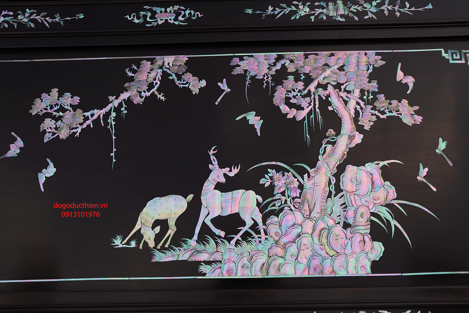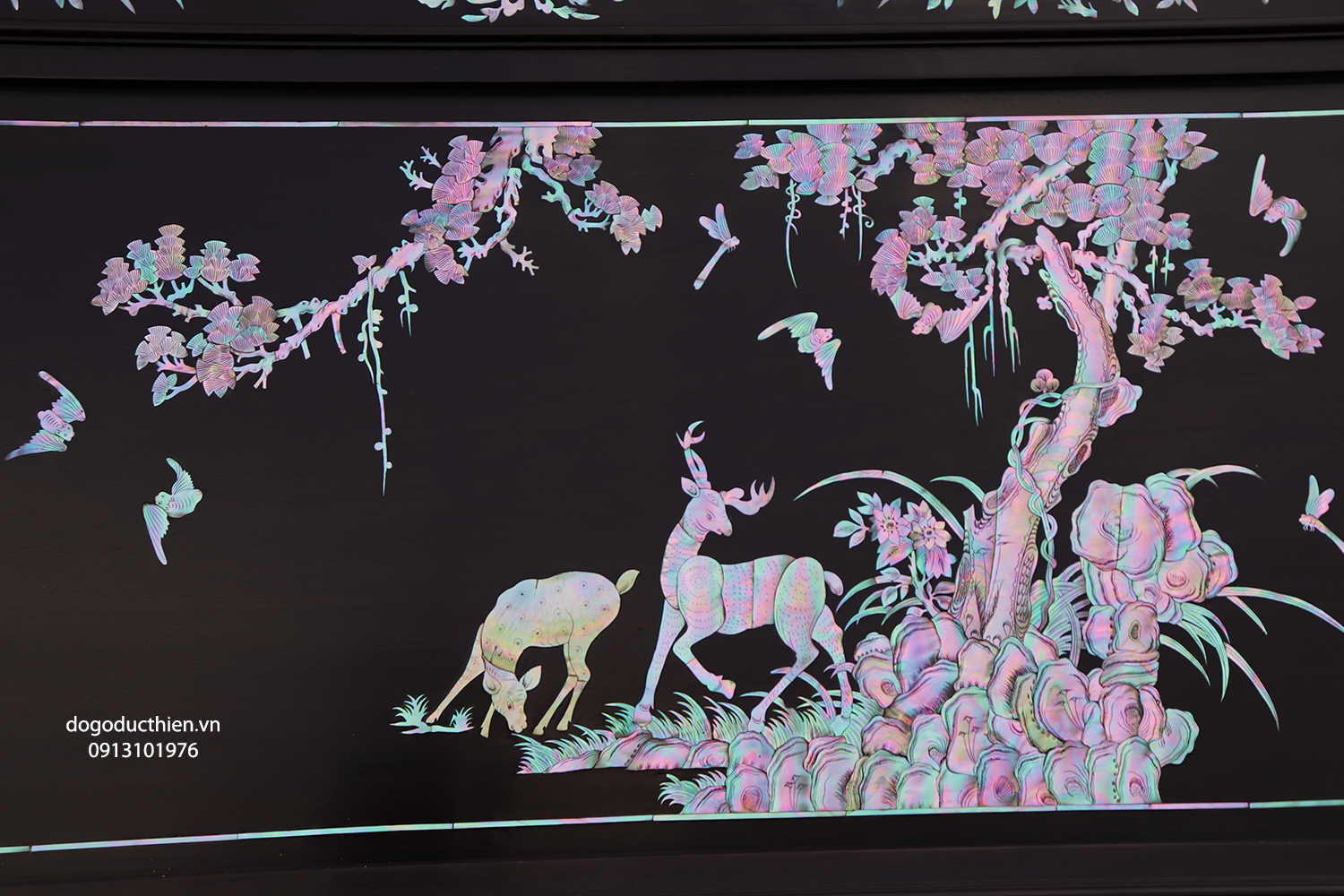 + Chất liệu: Gỗ gụ khảm ốc xà cừ đẹp