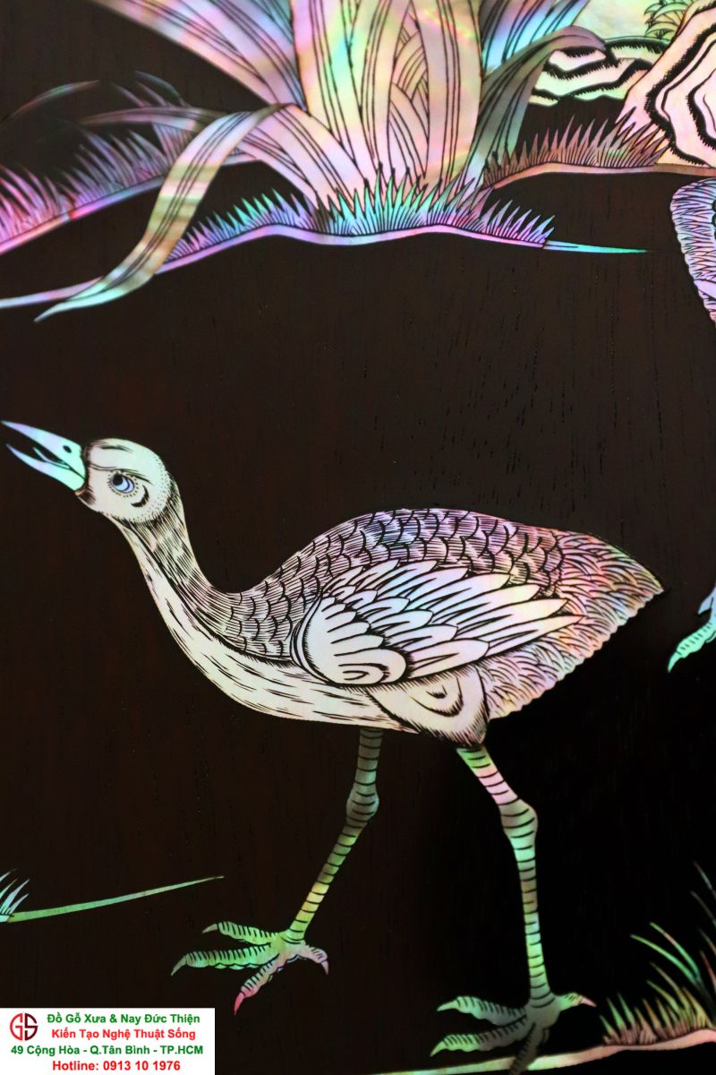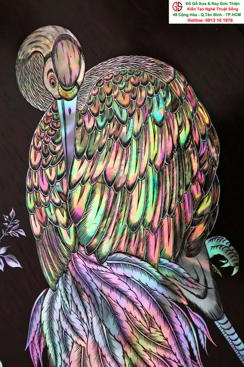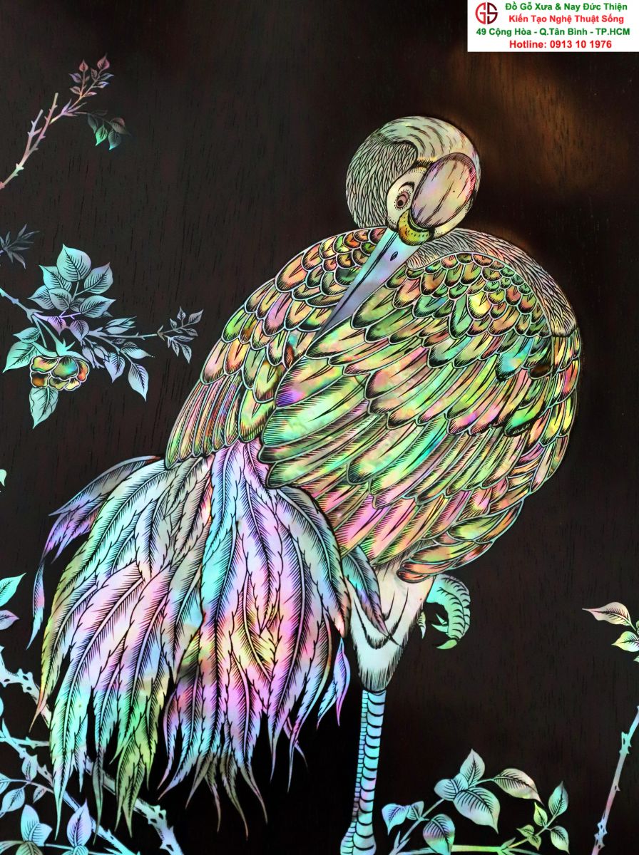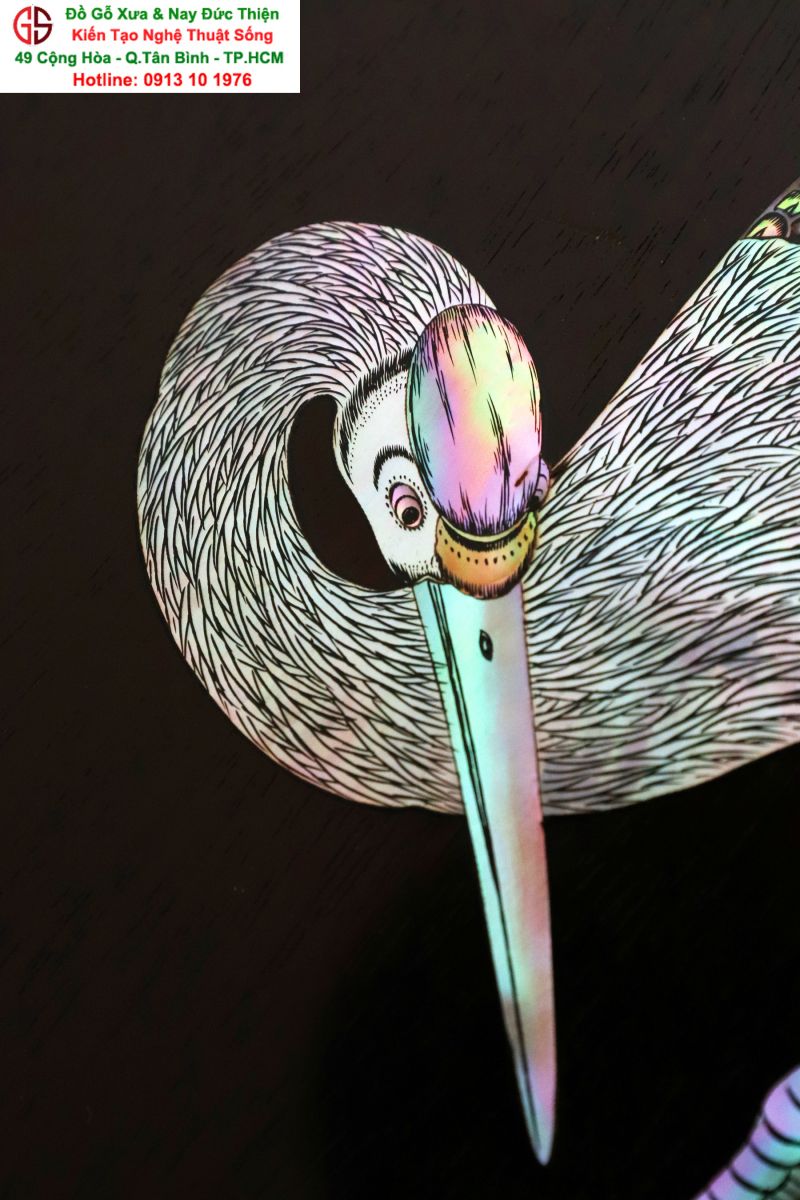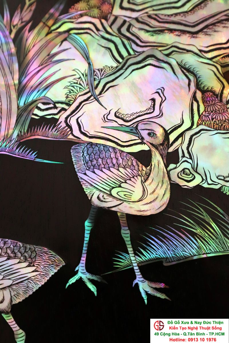 Tuyệt phẩm tranh gỗ khảm ốc, độc đáo, tinh tế và hiếm lạ, hoành hạc thanh cao là bức tranh đẹp thích hợp trang trí phòng khách, phòng làm việc, là quà biếu sang trọng