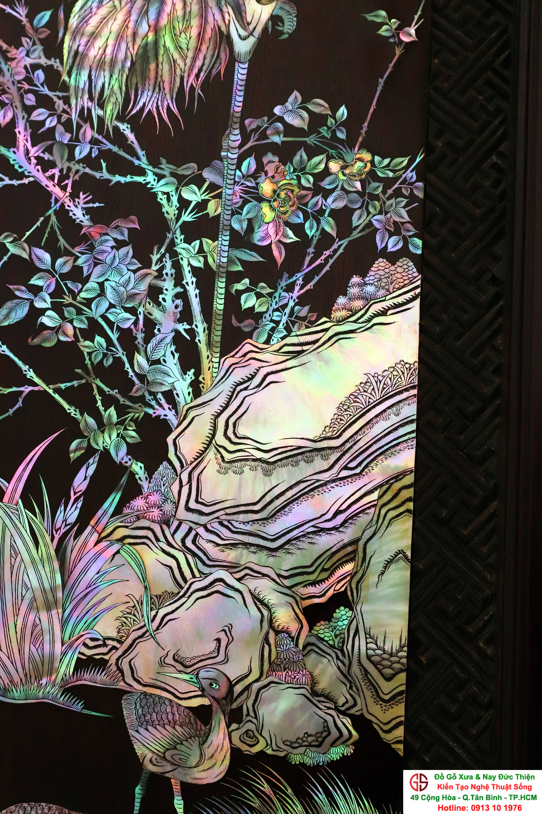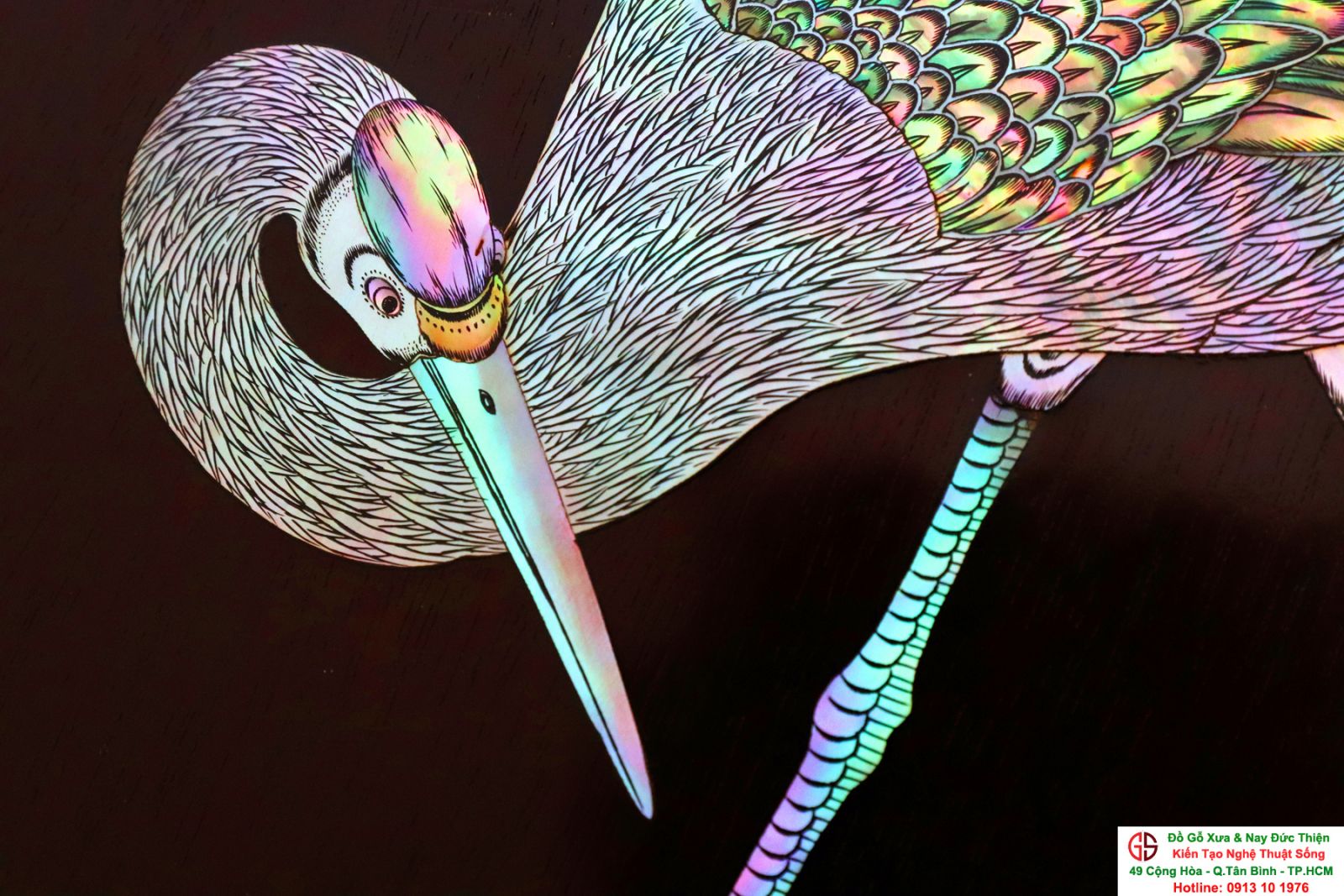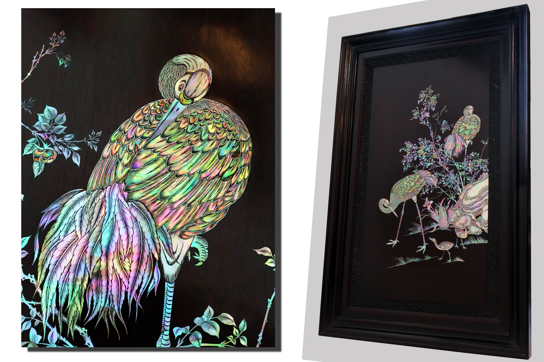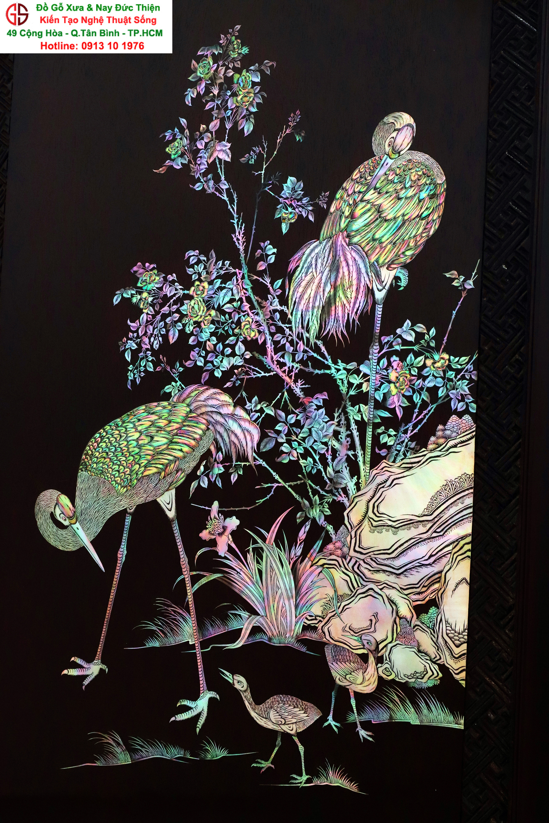 Tuyệt phẩm tranh gỗ khảm ốc, độc đáo, tinh tế và hiếm lạ, hoành hạc thanh cao là bức tranh đẹp thích hợp trang trí phòng khách, phòng làm việc, là quà biếu sang trọng