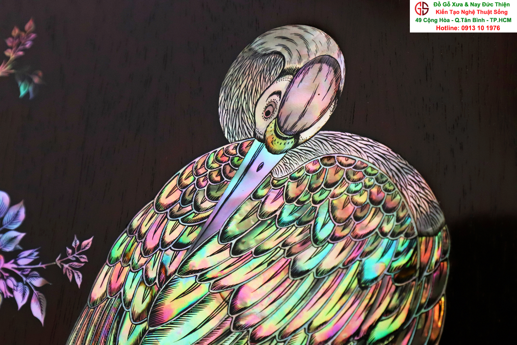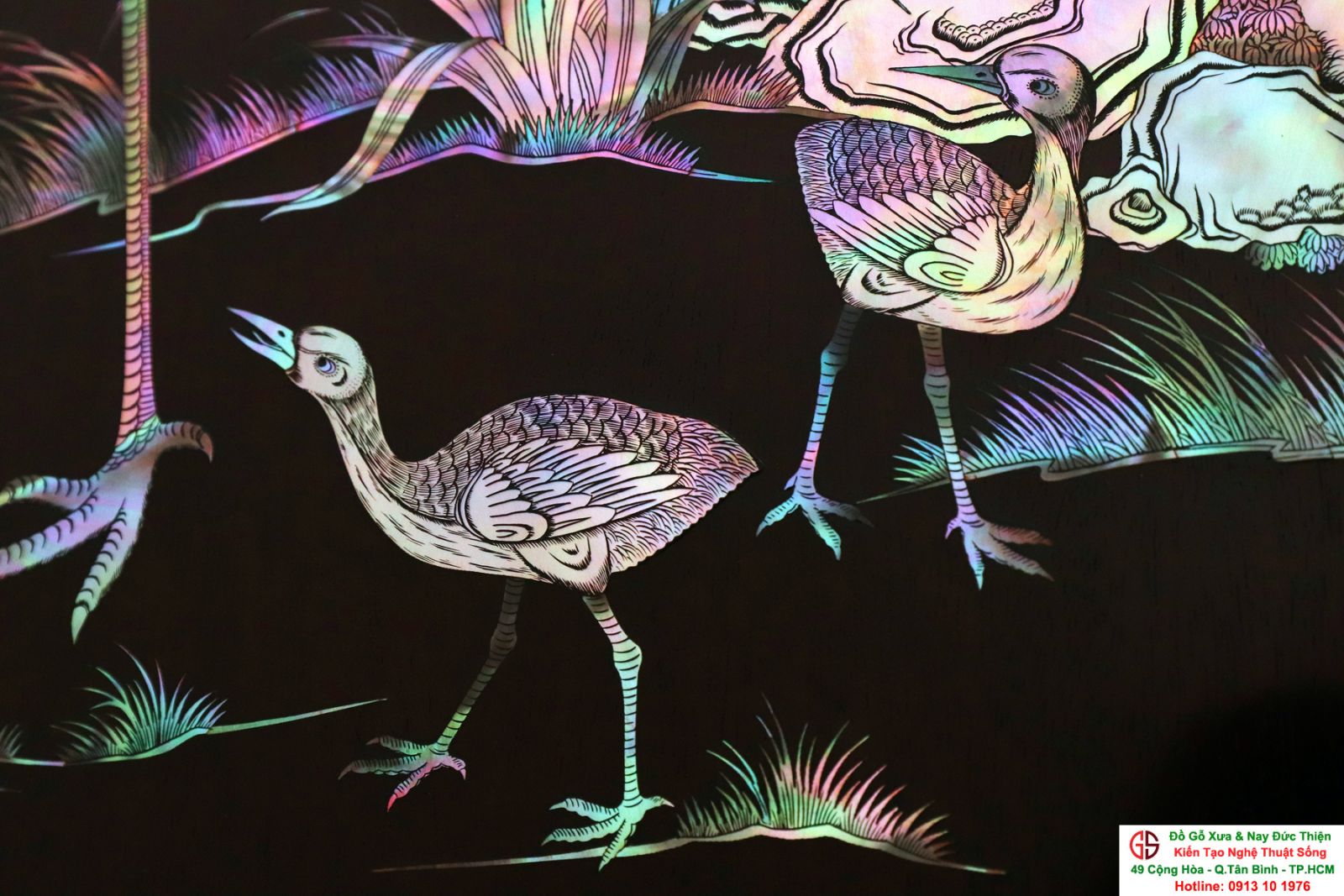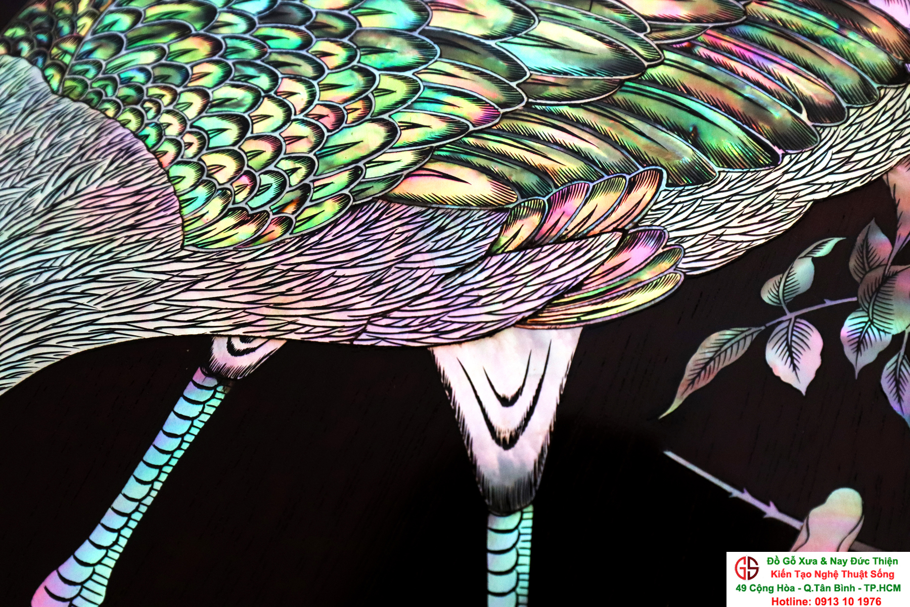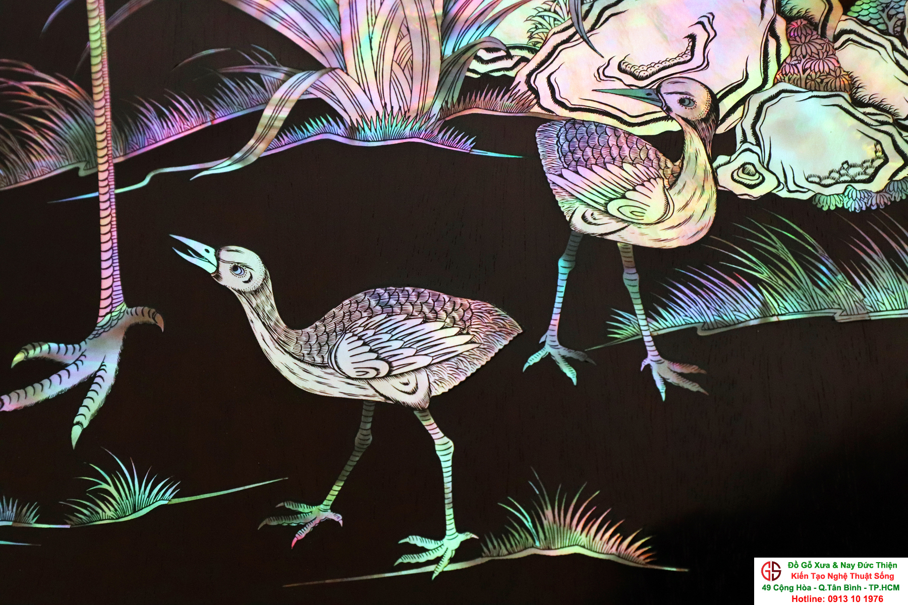 Tuyệt phẩm tranh gỗ khảm ốc, độc đáo, tinh tế và hiếm lạ, hoành hạc thanh cao là bức tranh đẹp thích hợp trang trí phòng khách, phòng làm việc, là quà biếu sang trọng