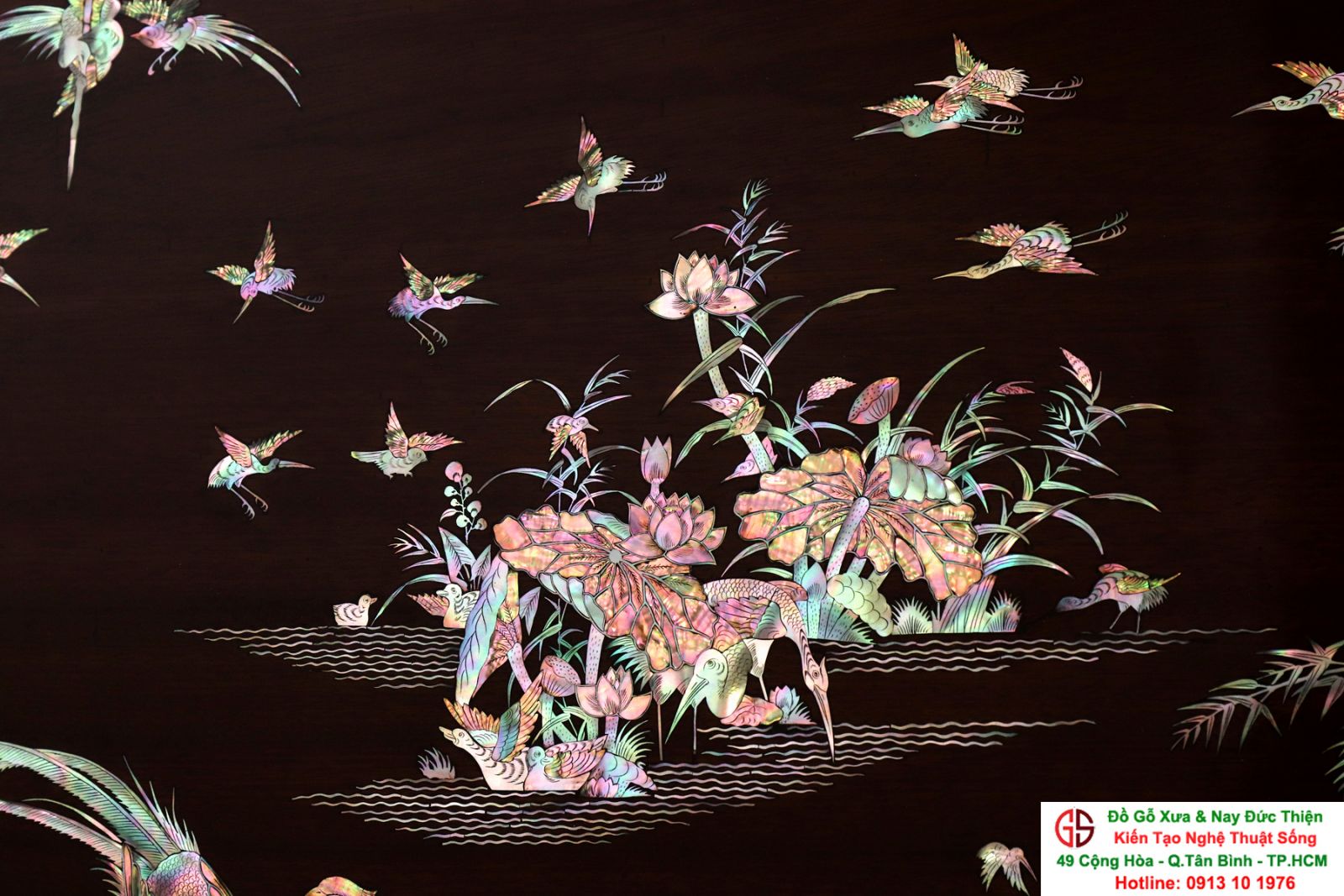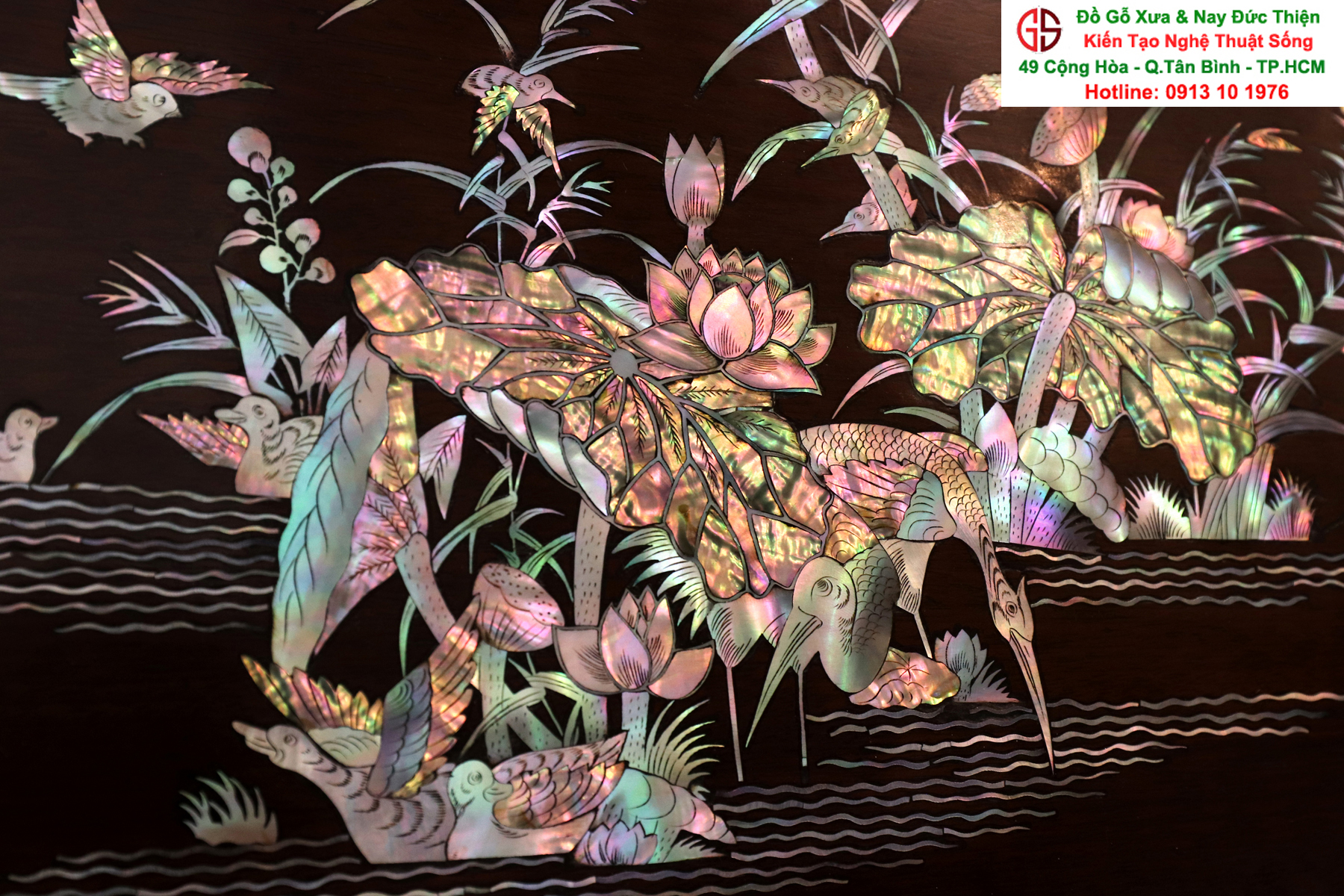 - Sập cẩn ốc xà cừ: sập cẩn ốc sen vịt, sập sen vịt tùng hạc.