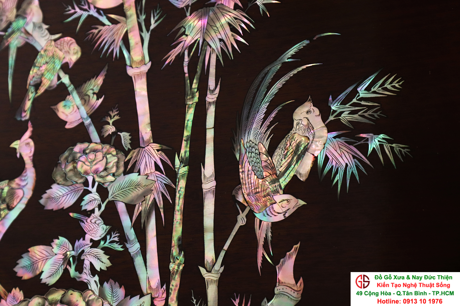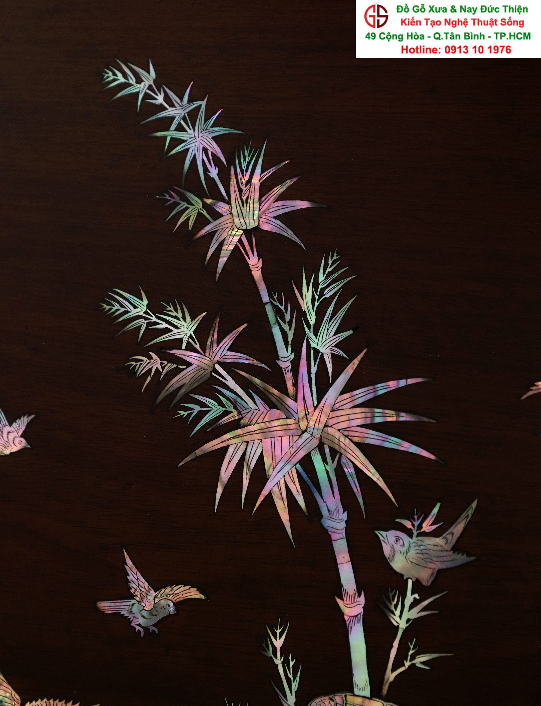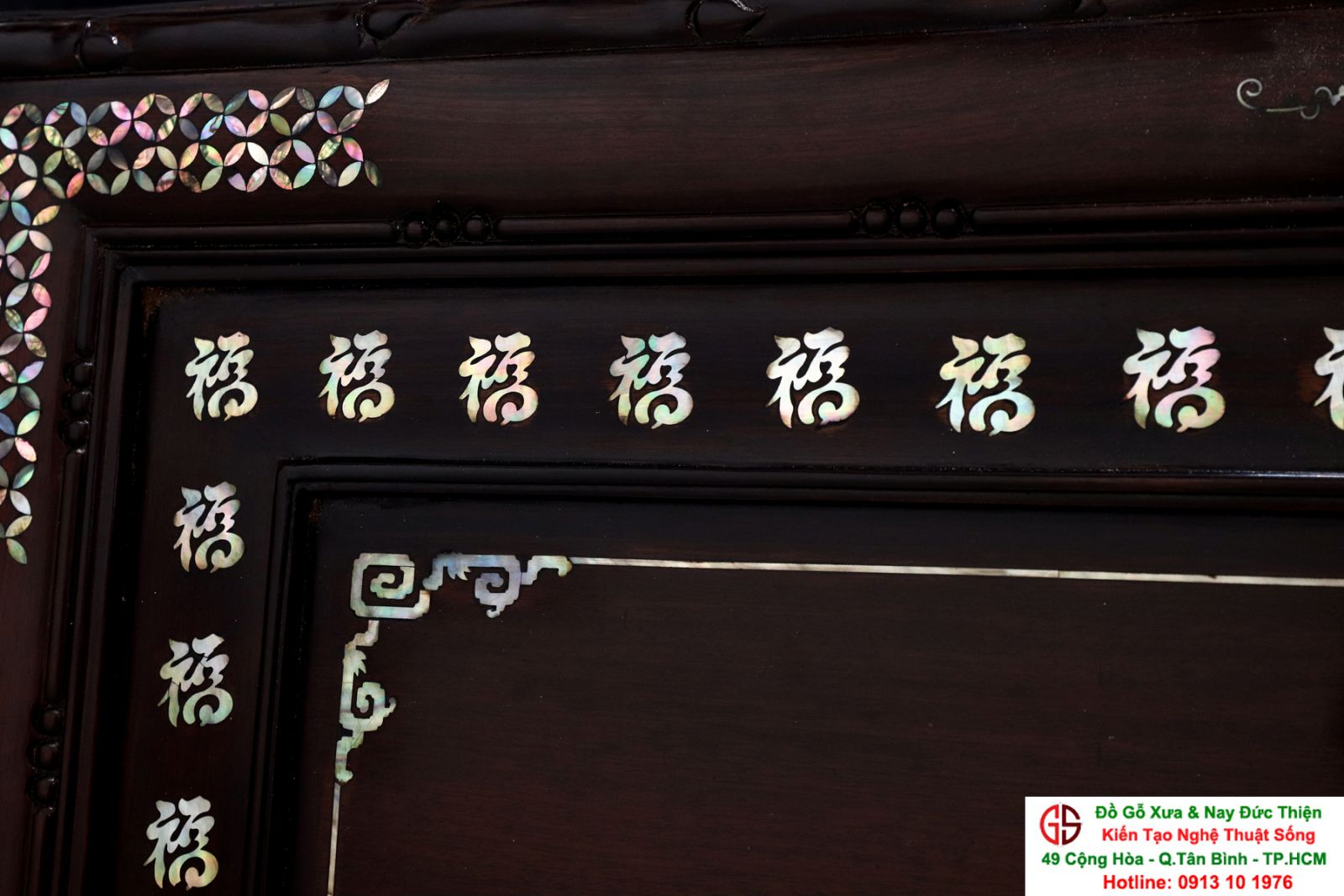 + Chất liệu: Gỗ gụ + Khảm Ốc xà cừ