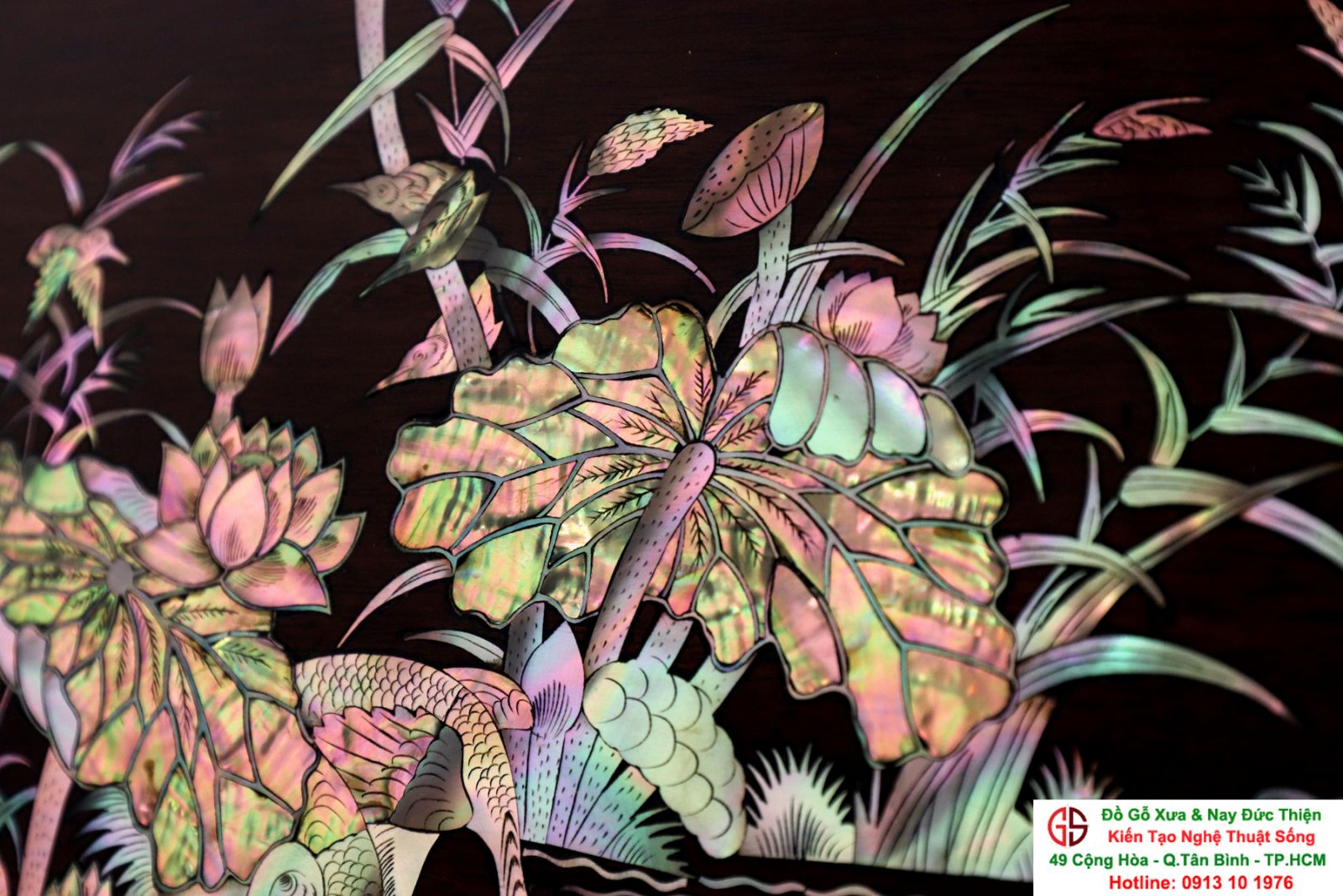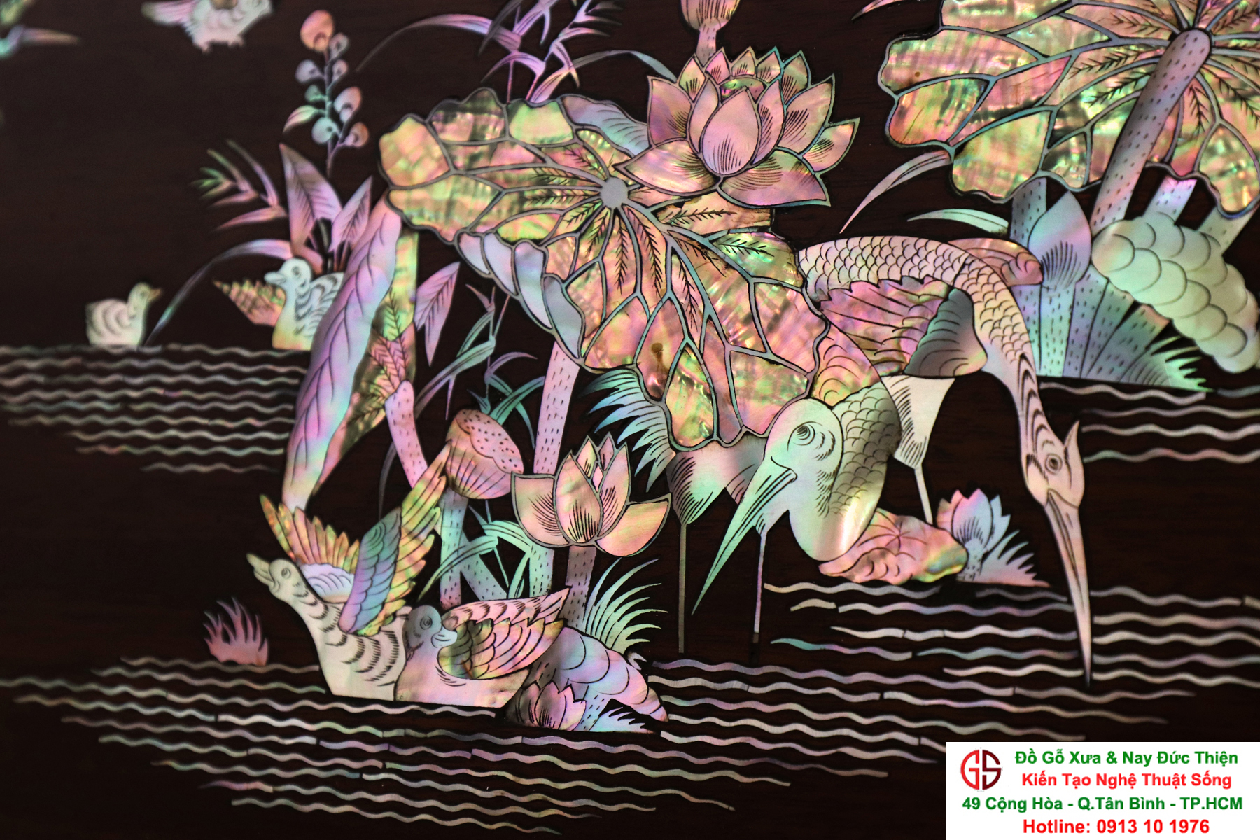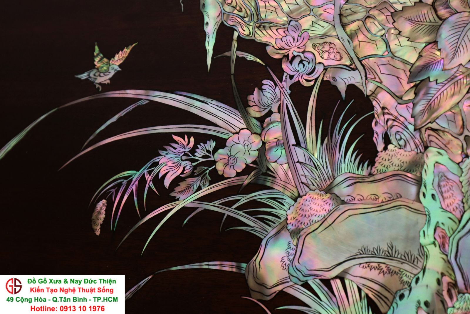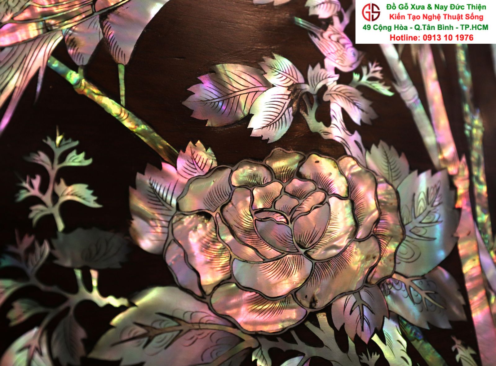 + Chất liệu: Gỗ gụ + Khảm Ốc xà cừ