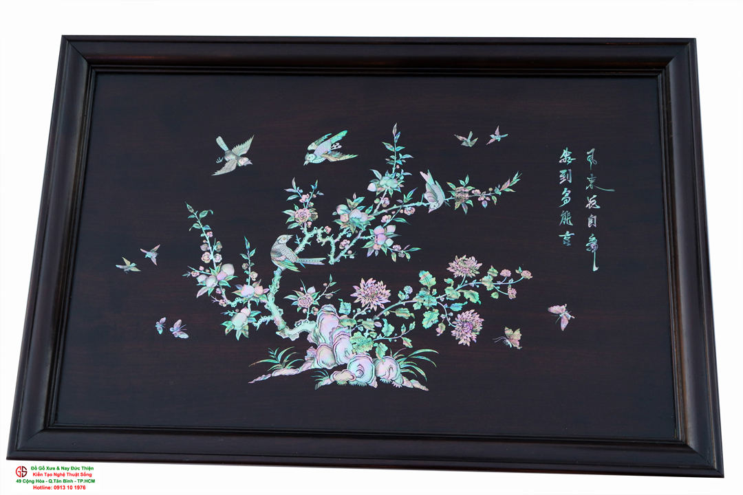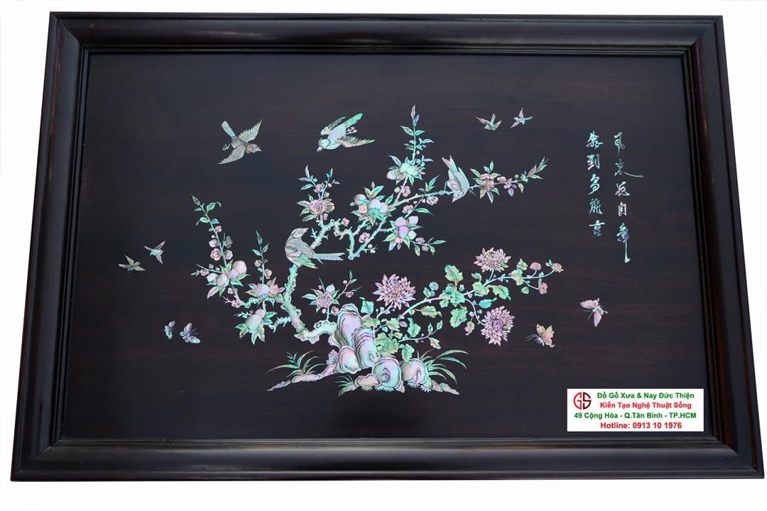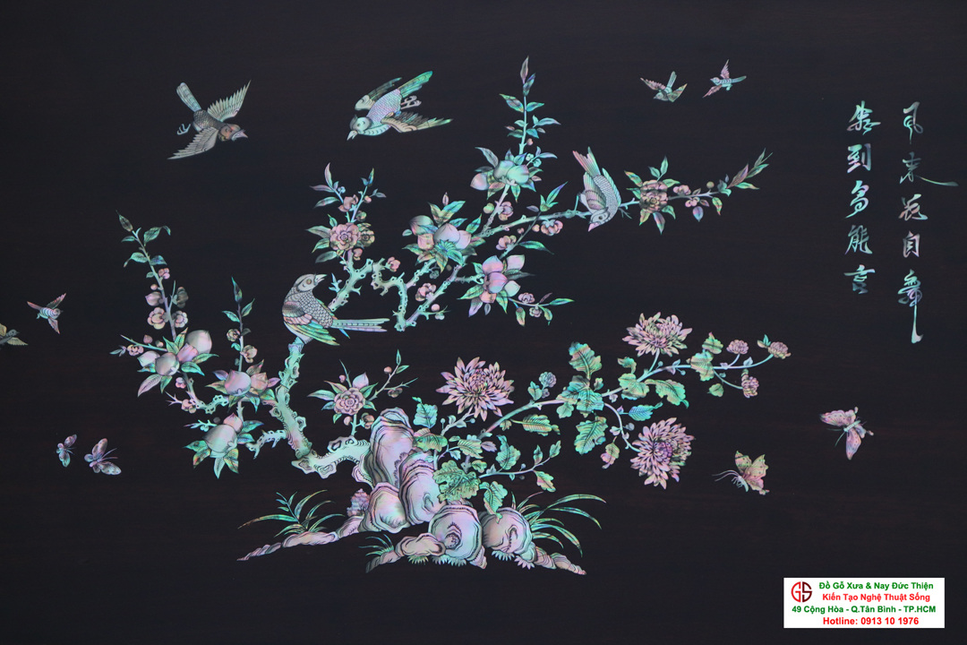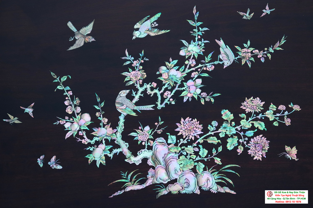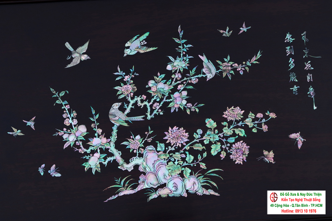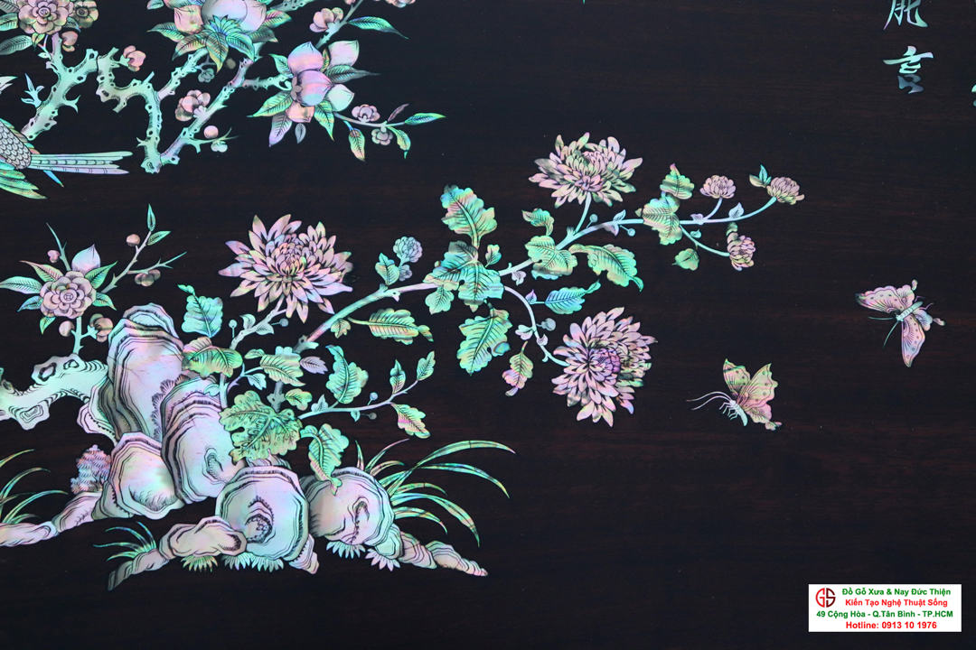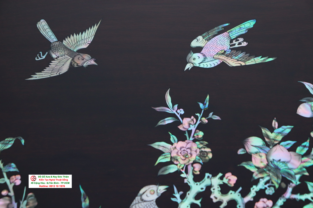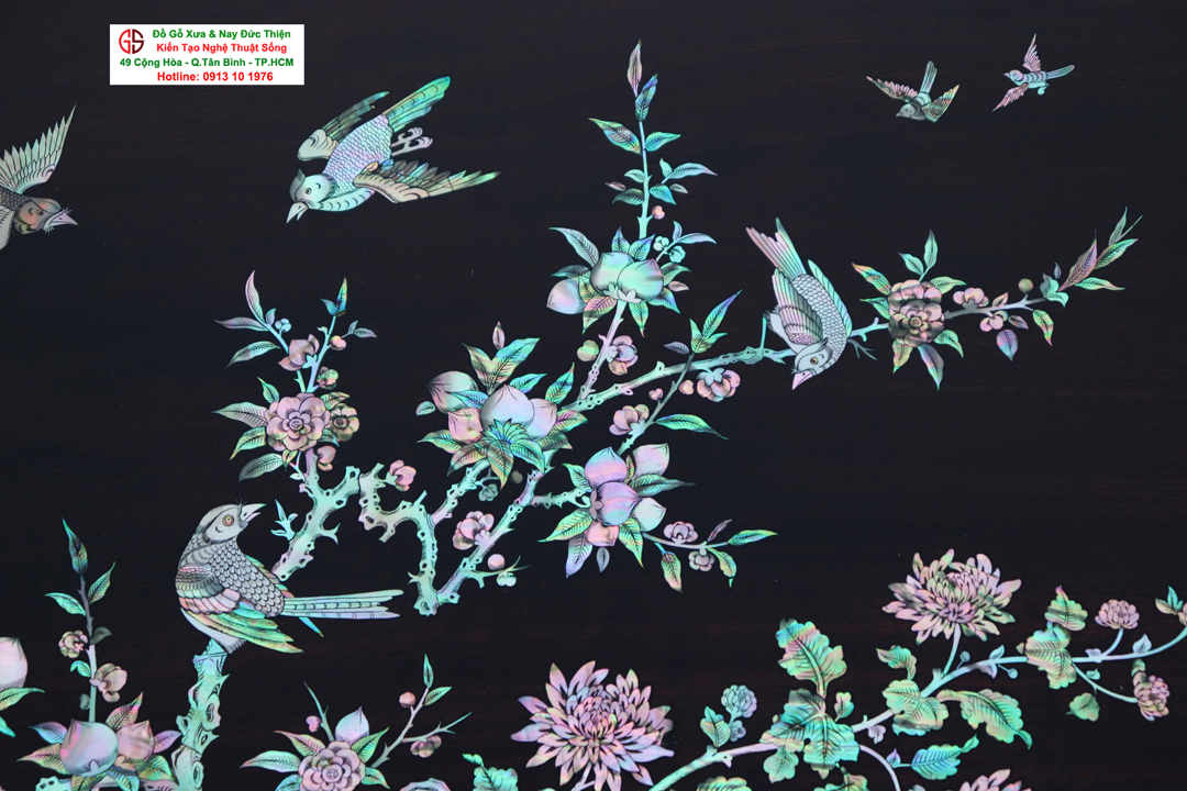 + Chất Liệu : Gỗ gụ, khảm ốc đỏ lửa vàng chanh.