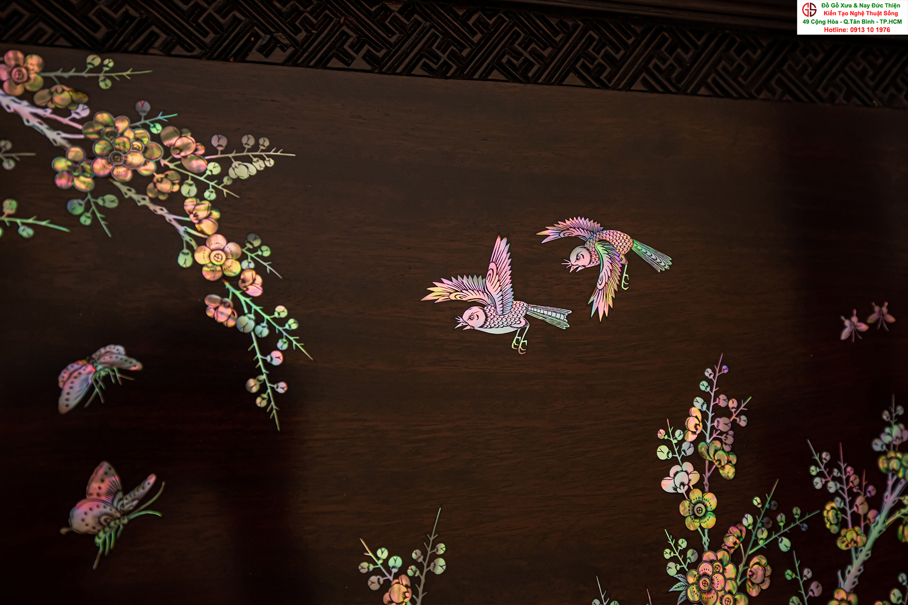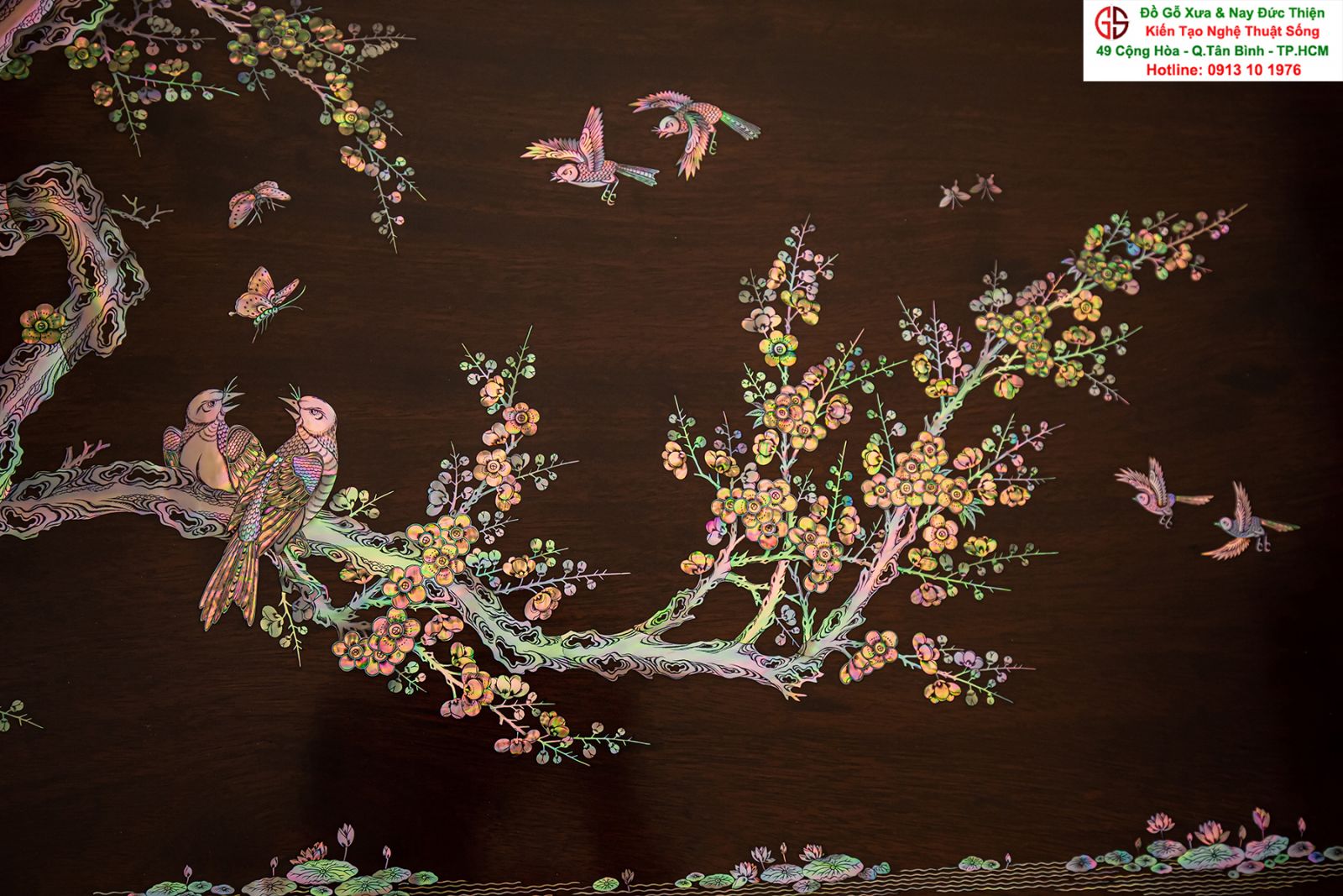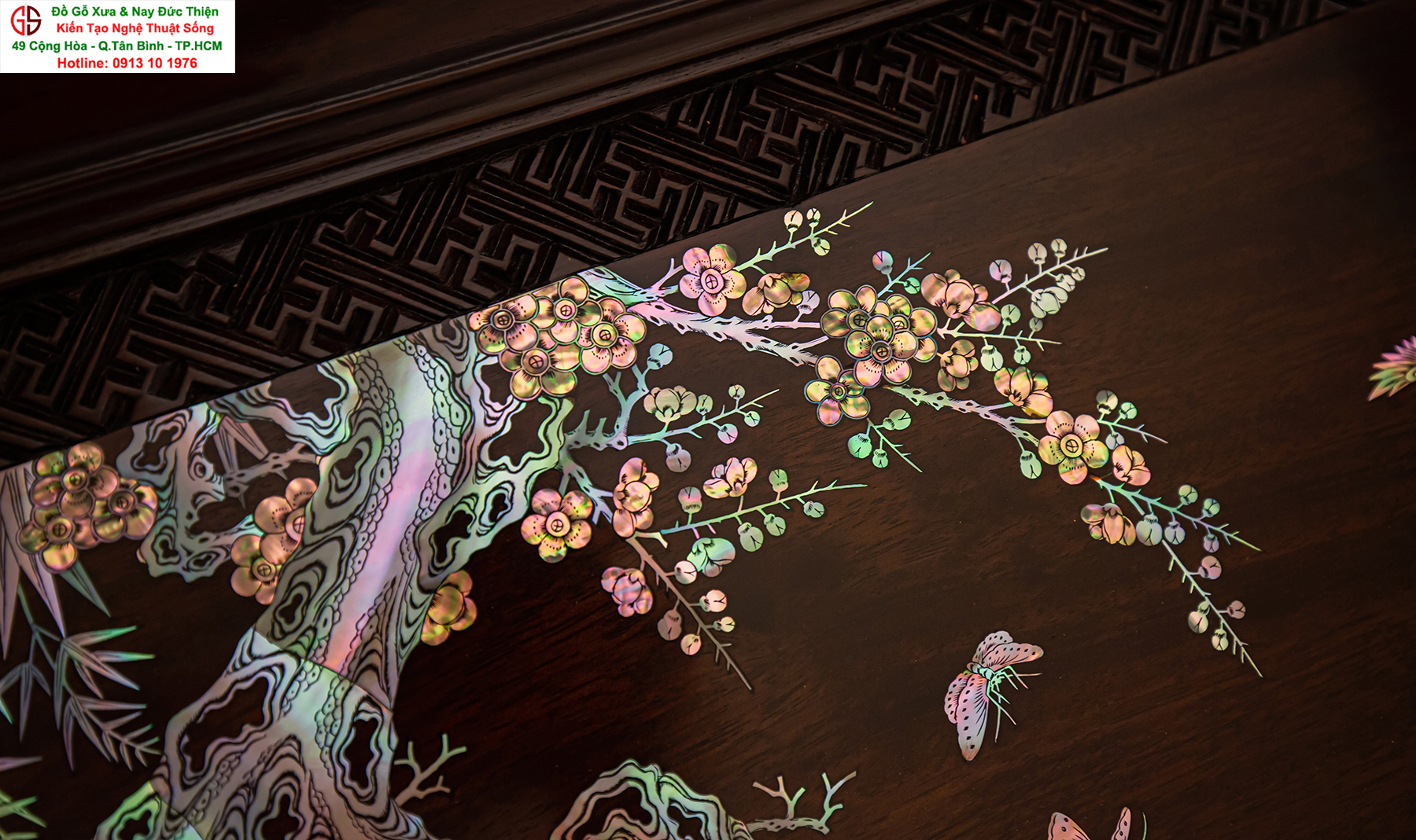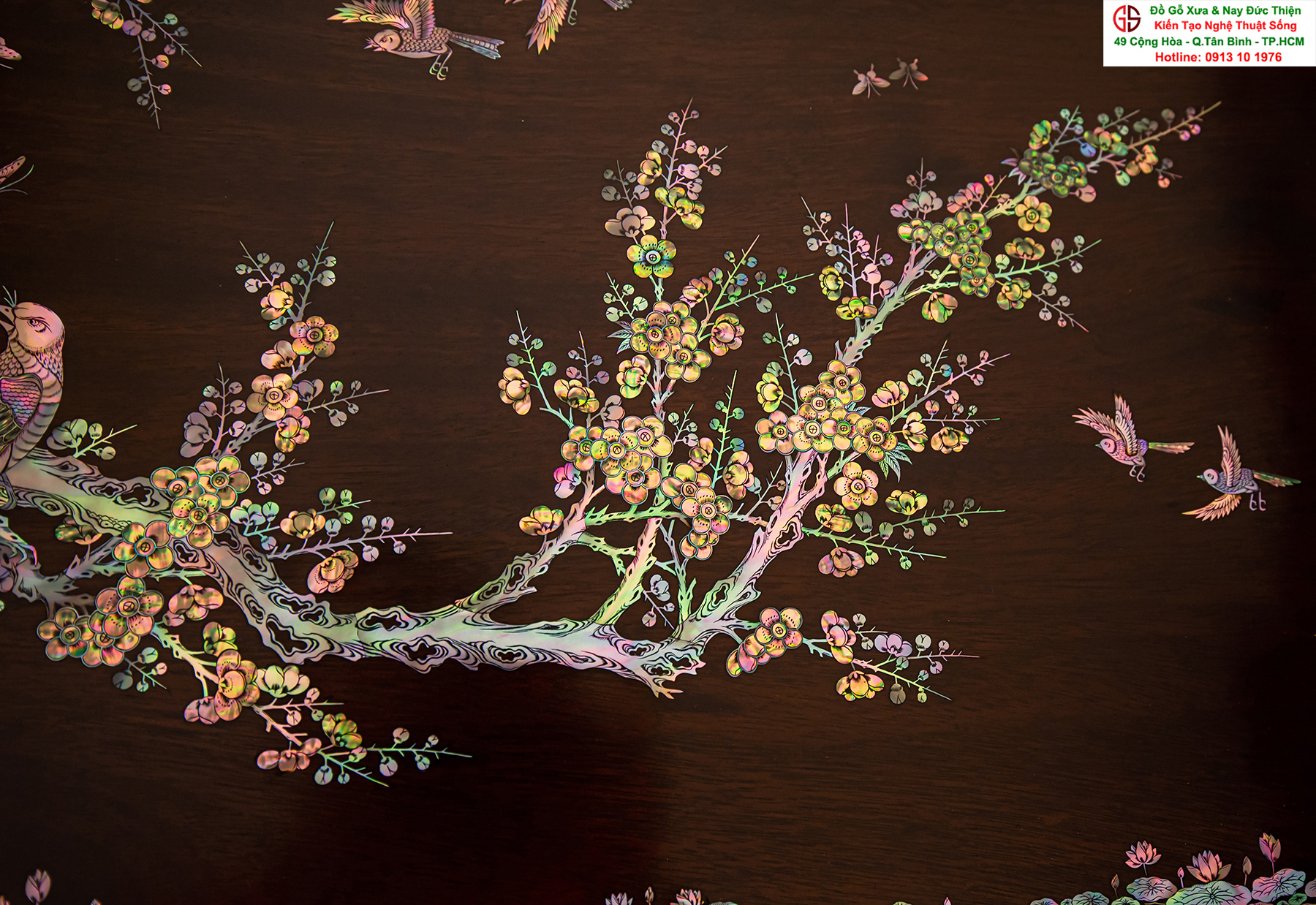 + Chất liệu: Gỗ Gụ + Khảm Ốc xà cừ