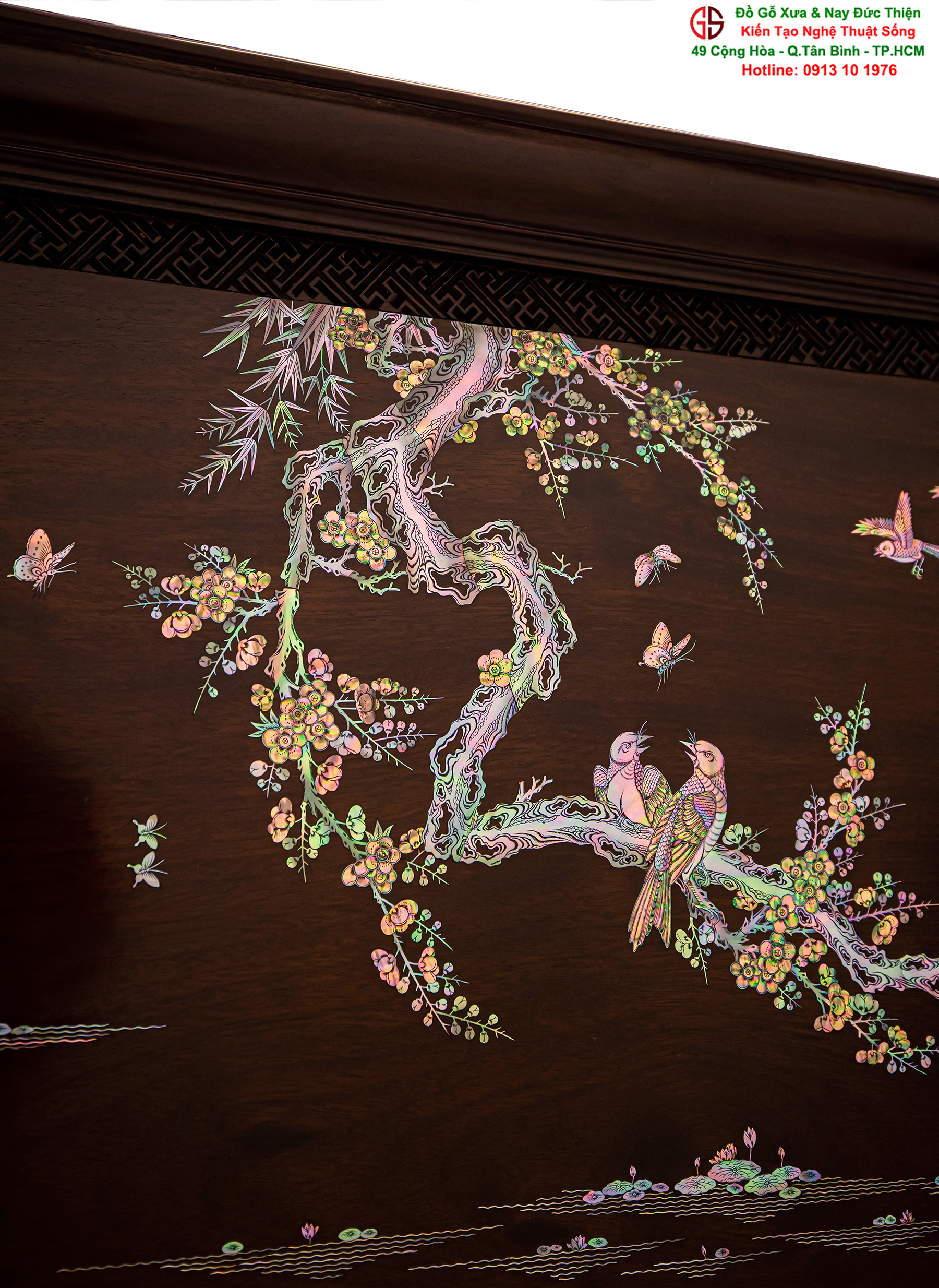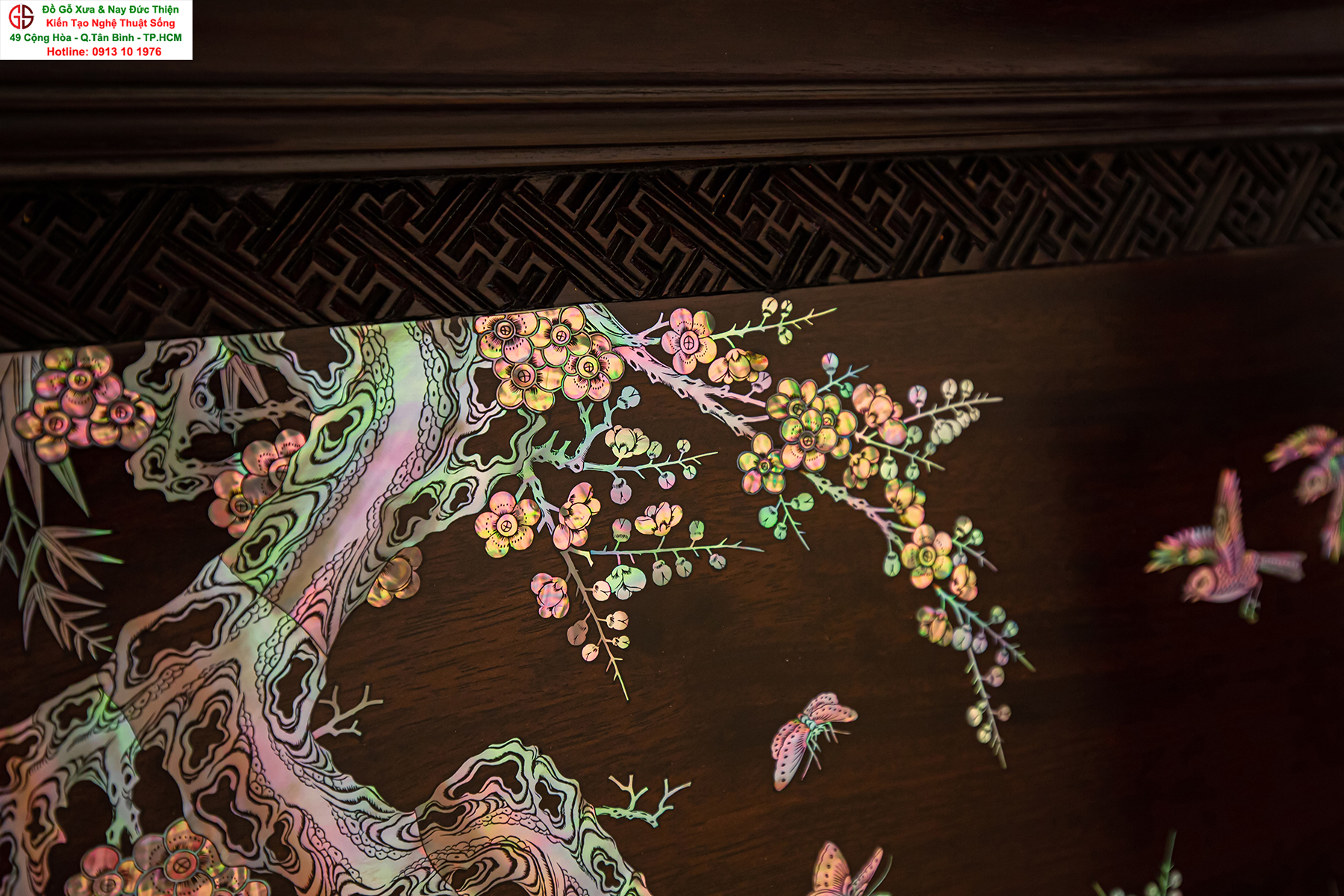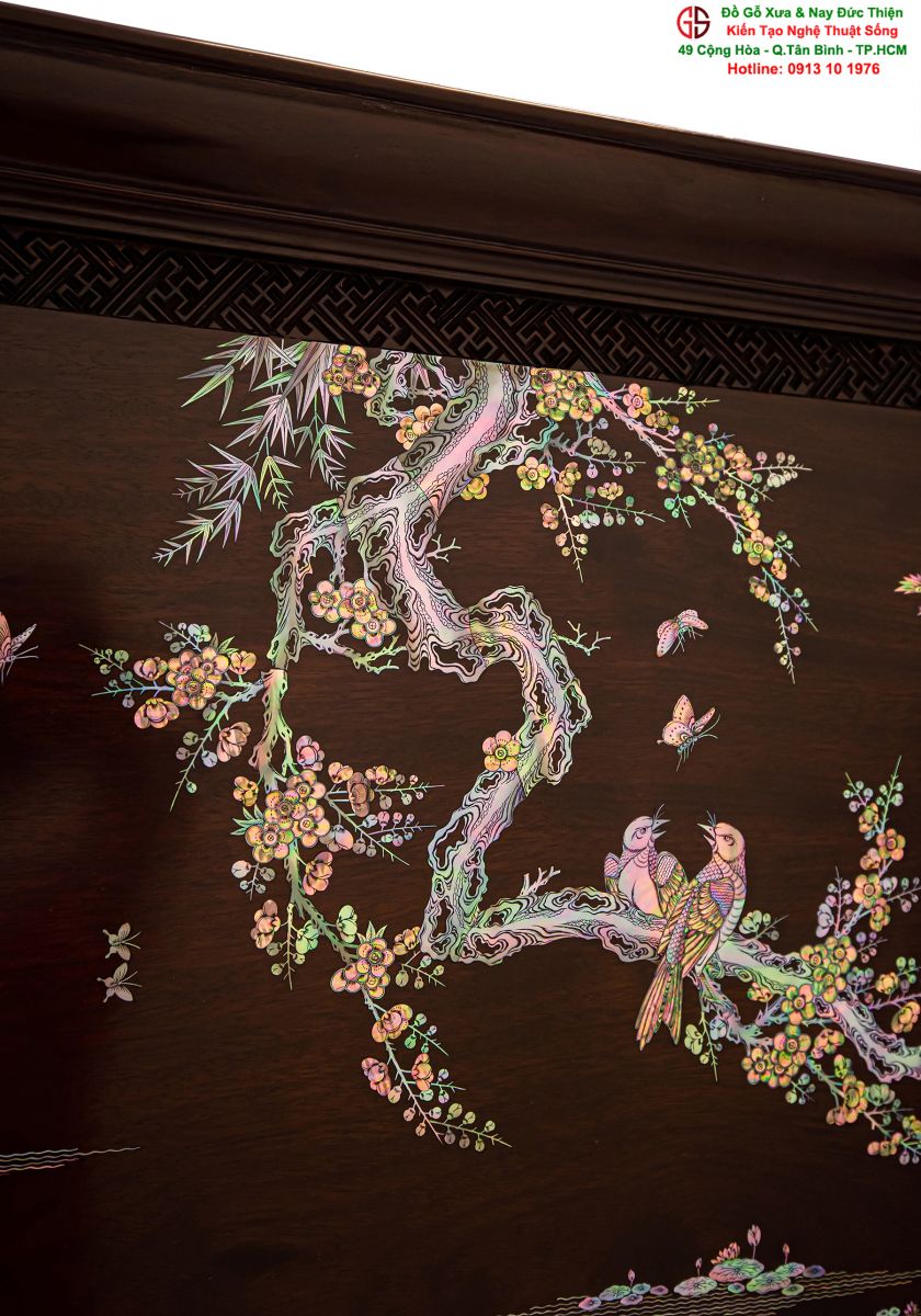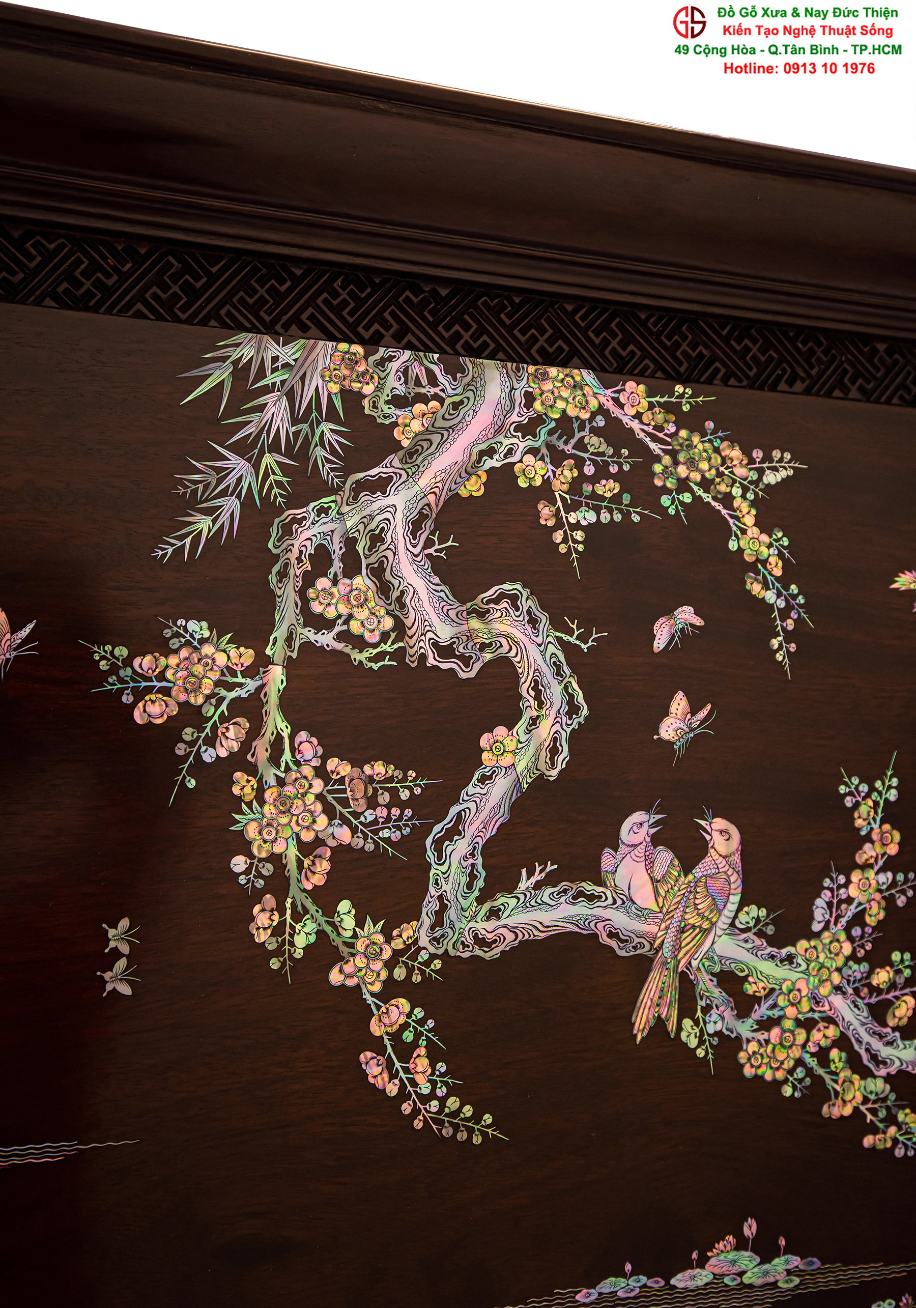 + Chất liệu: Gỗ Gụ + Khảm Ốc xà cừ