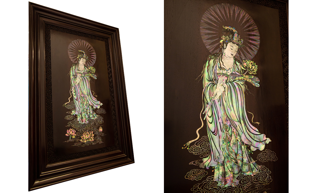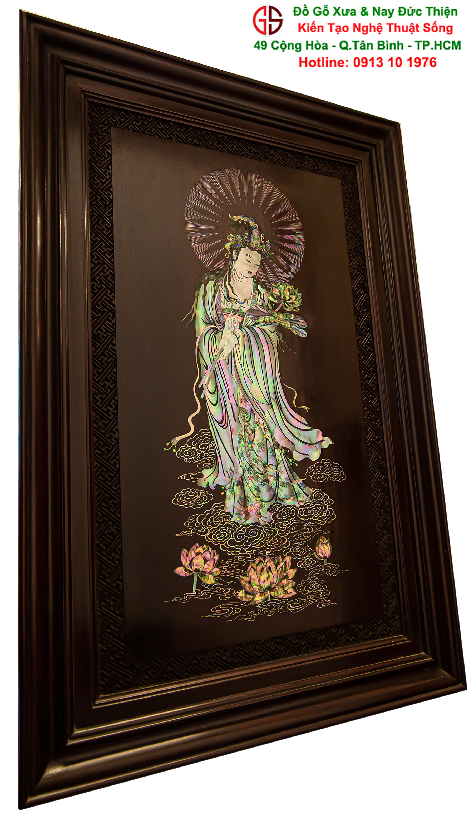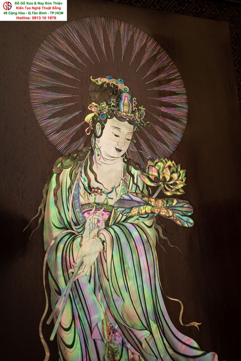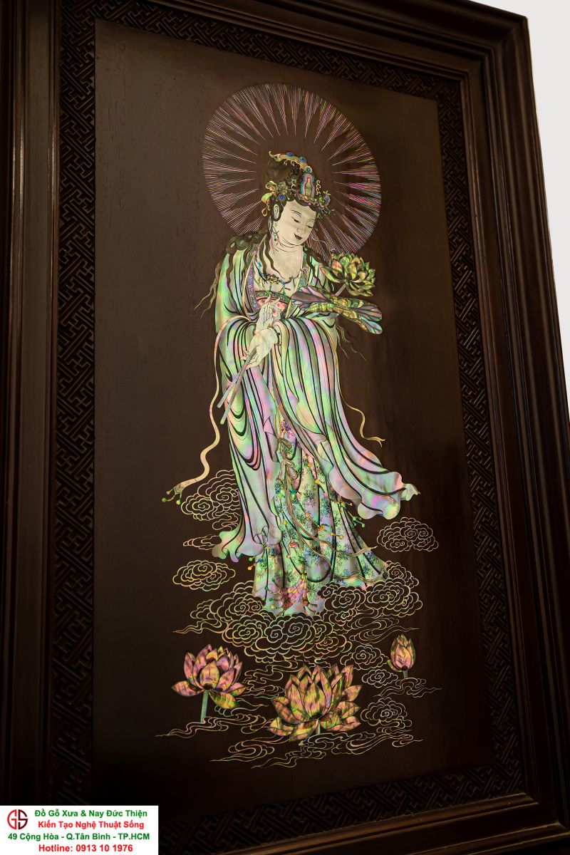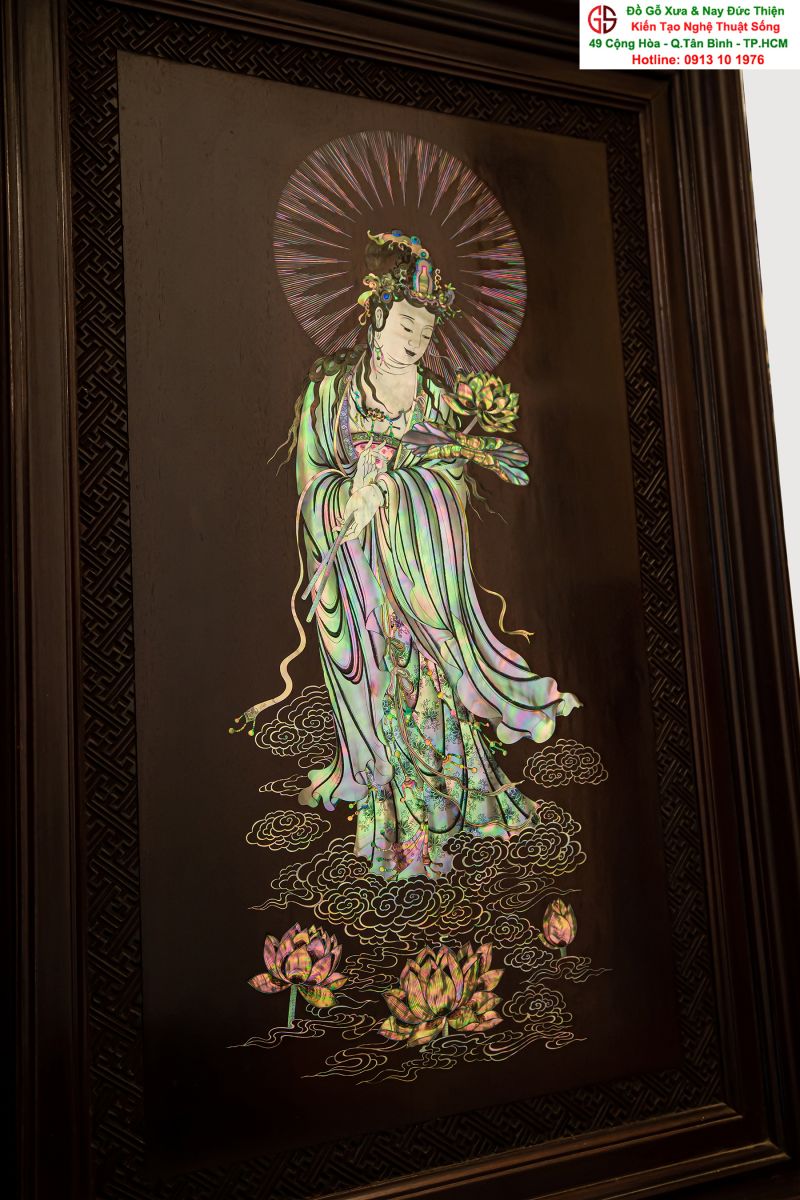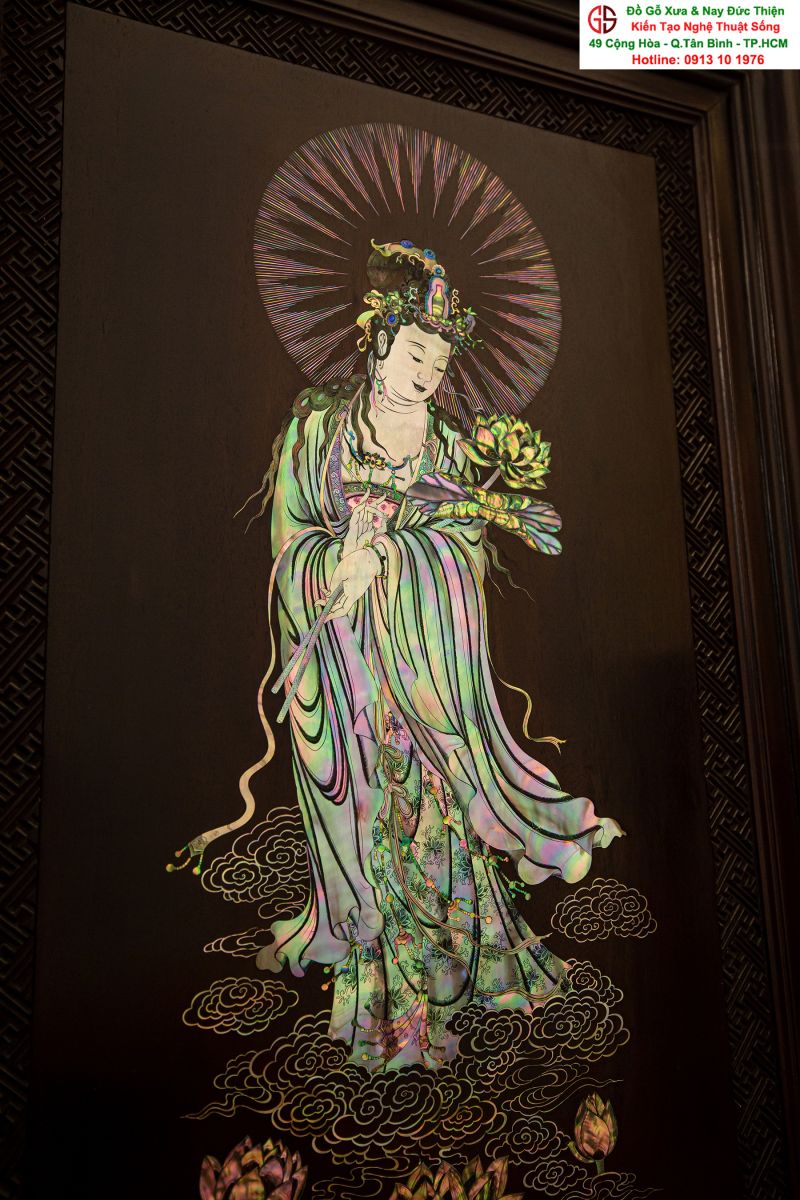 Nơi mua bán trao đổ tranh gỗ phật Quan Âm khảm ốc uy tín tại Sài Gòn, Tranh PHẬT BÀ QUAN ÂM khảm ốc đẹp tại quân Tân Bình
